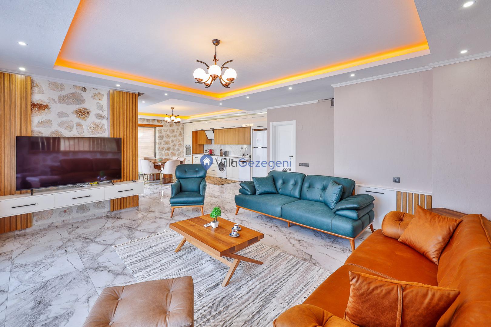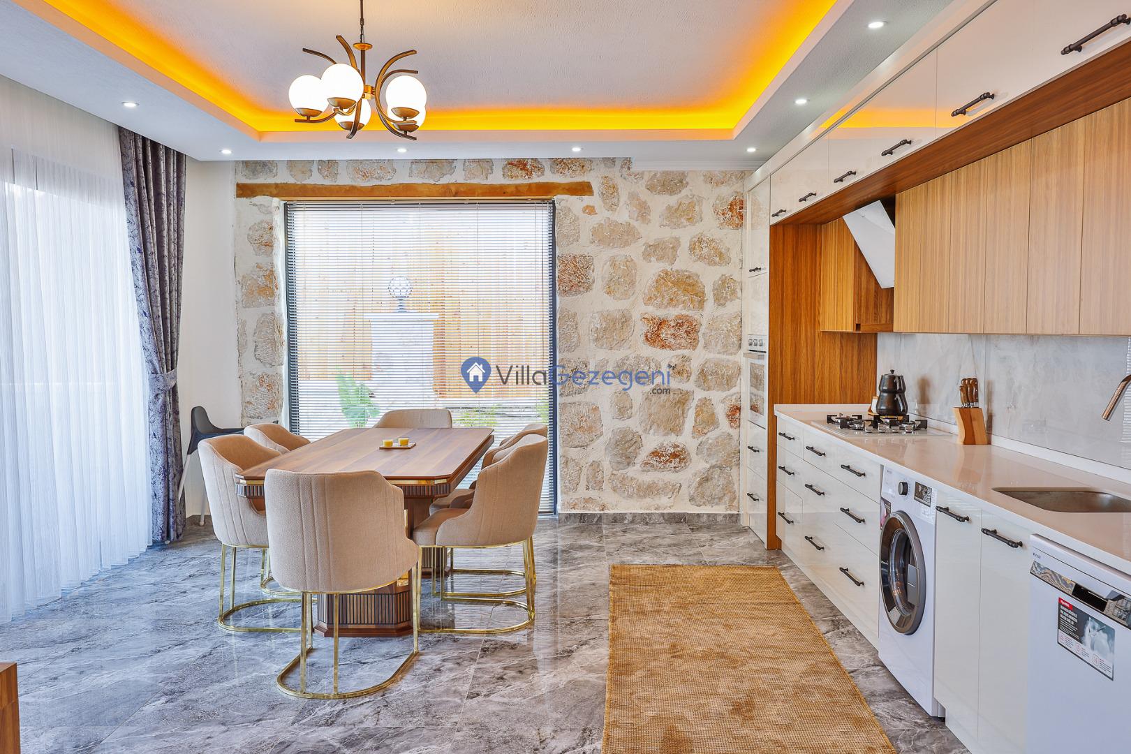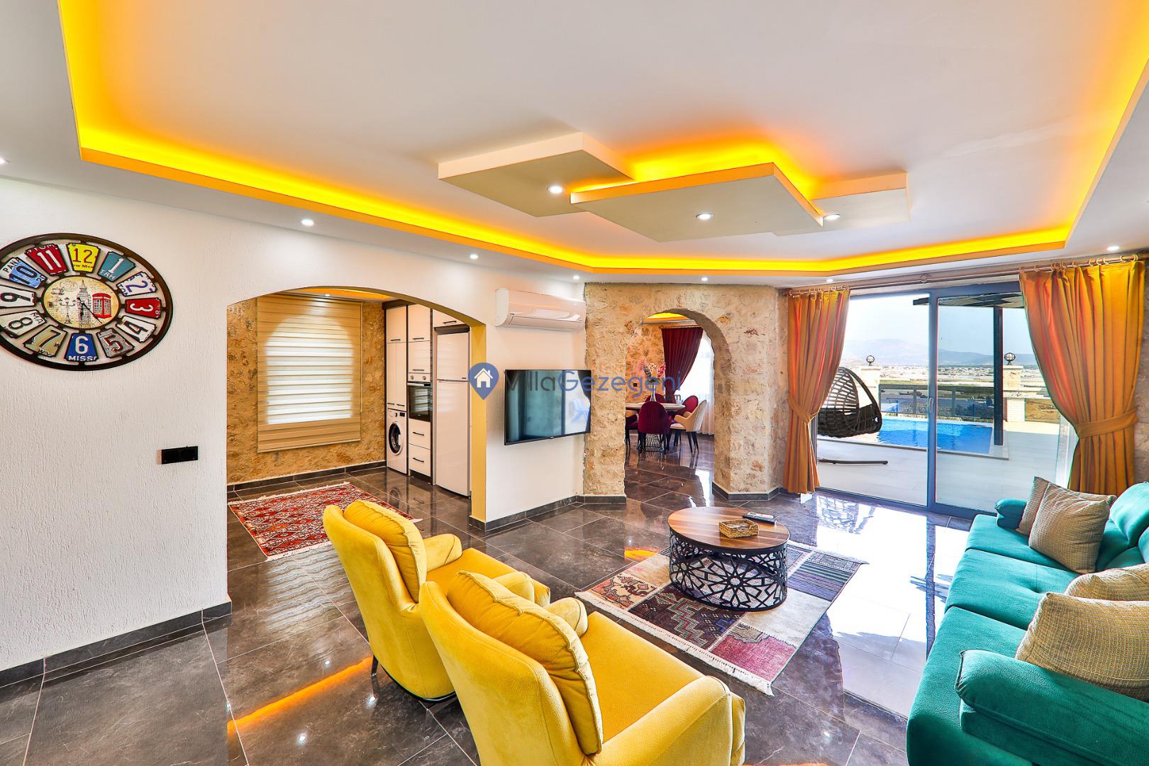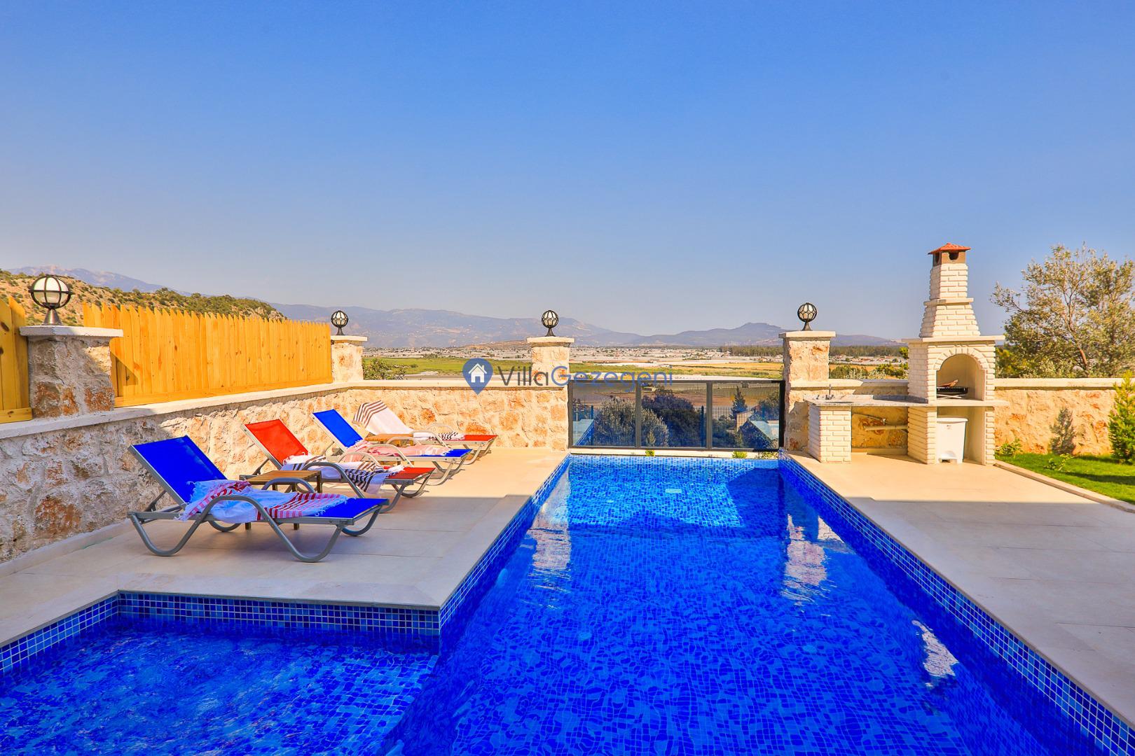 Kalkan Karadere' de bulunan, 3 yatak odalı, lüks tasarıma sahip, muhafazakar kiralık villa