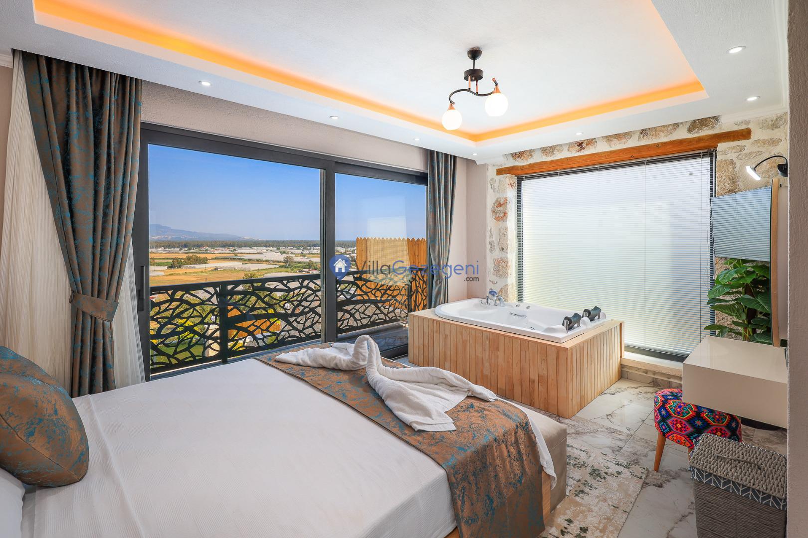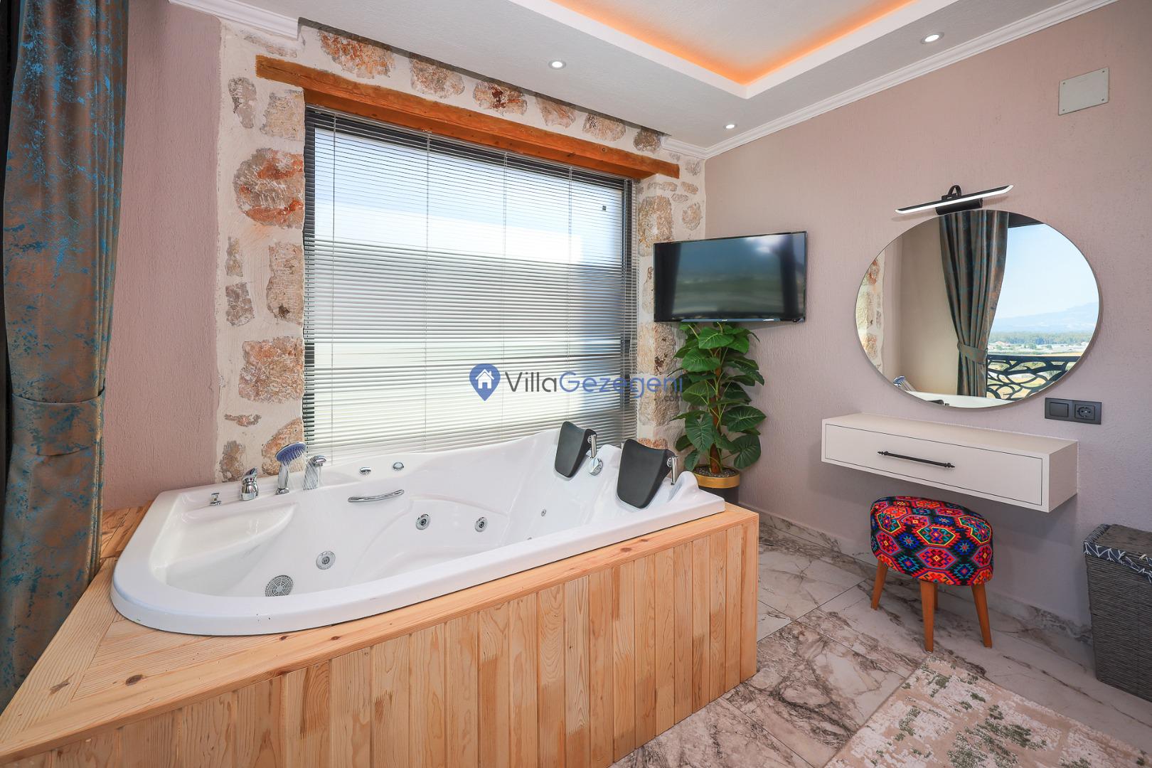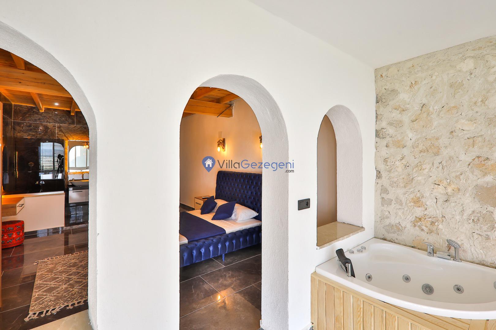 Villa Sandak 4, Kalkan Karadere'de 4 kişilik, doğa içerisinde, jakuzili, salıncaklı, lüks tasarımlı, muhafazakar, balayı çiftlerine uygun kiralık villa.