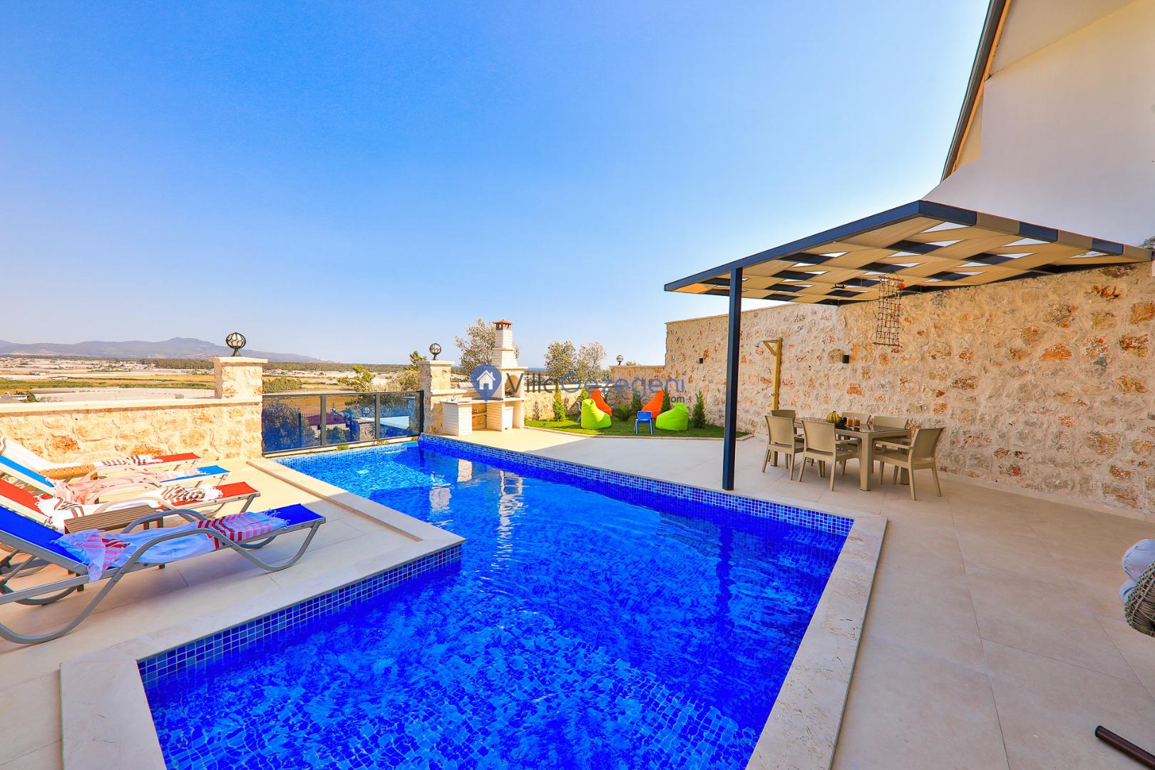 Kalkan Karadere 'de bulunan, 3 yatak odalı, lüks tasarıma sahip, muhafazakar kiralık villa