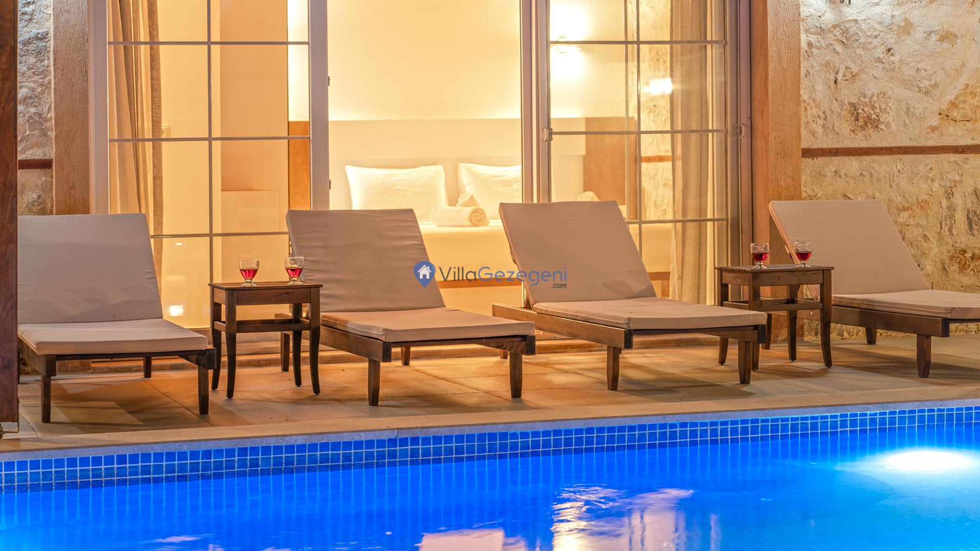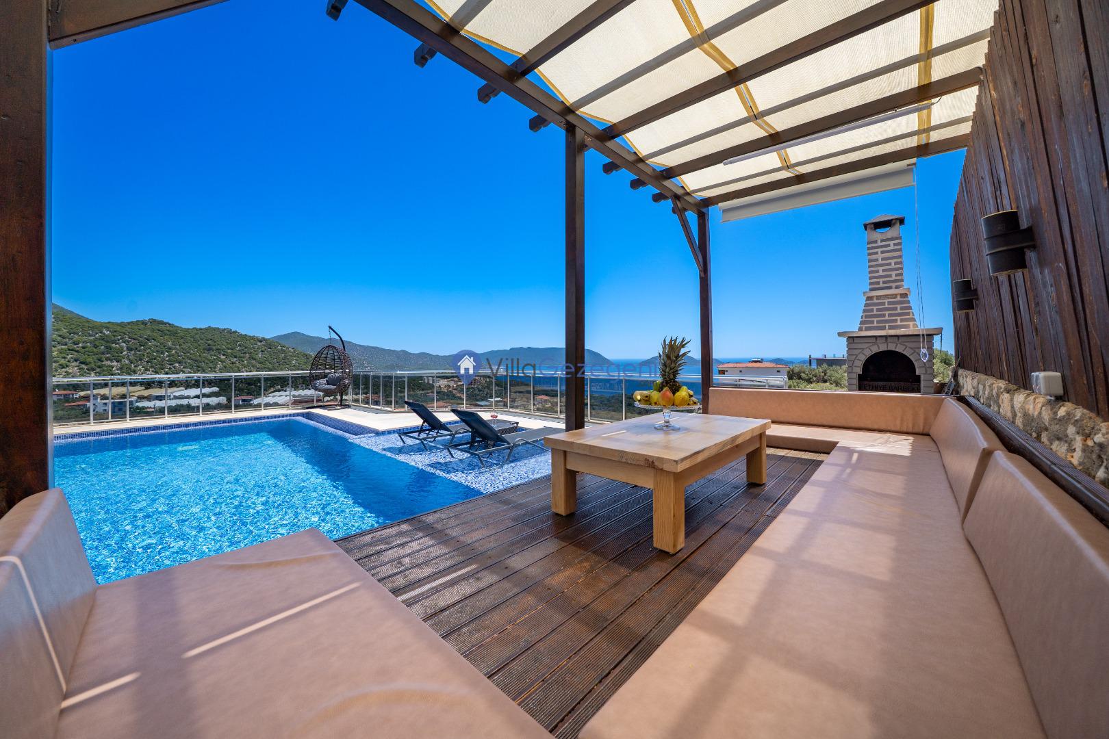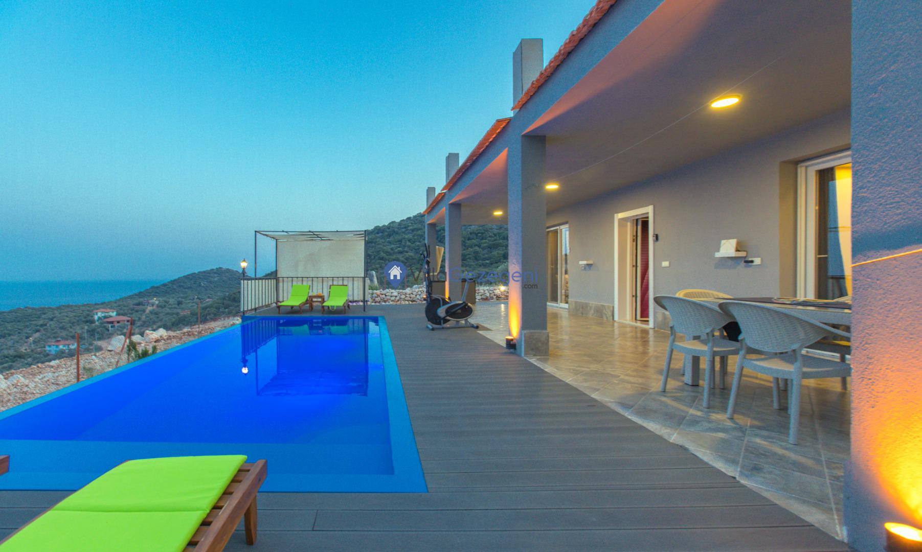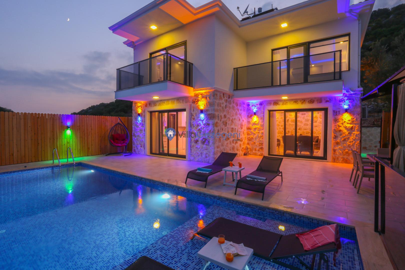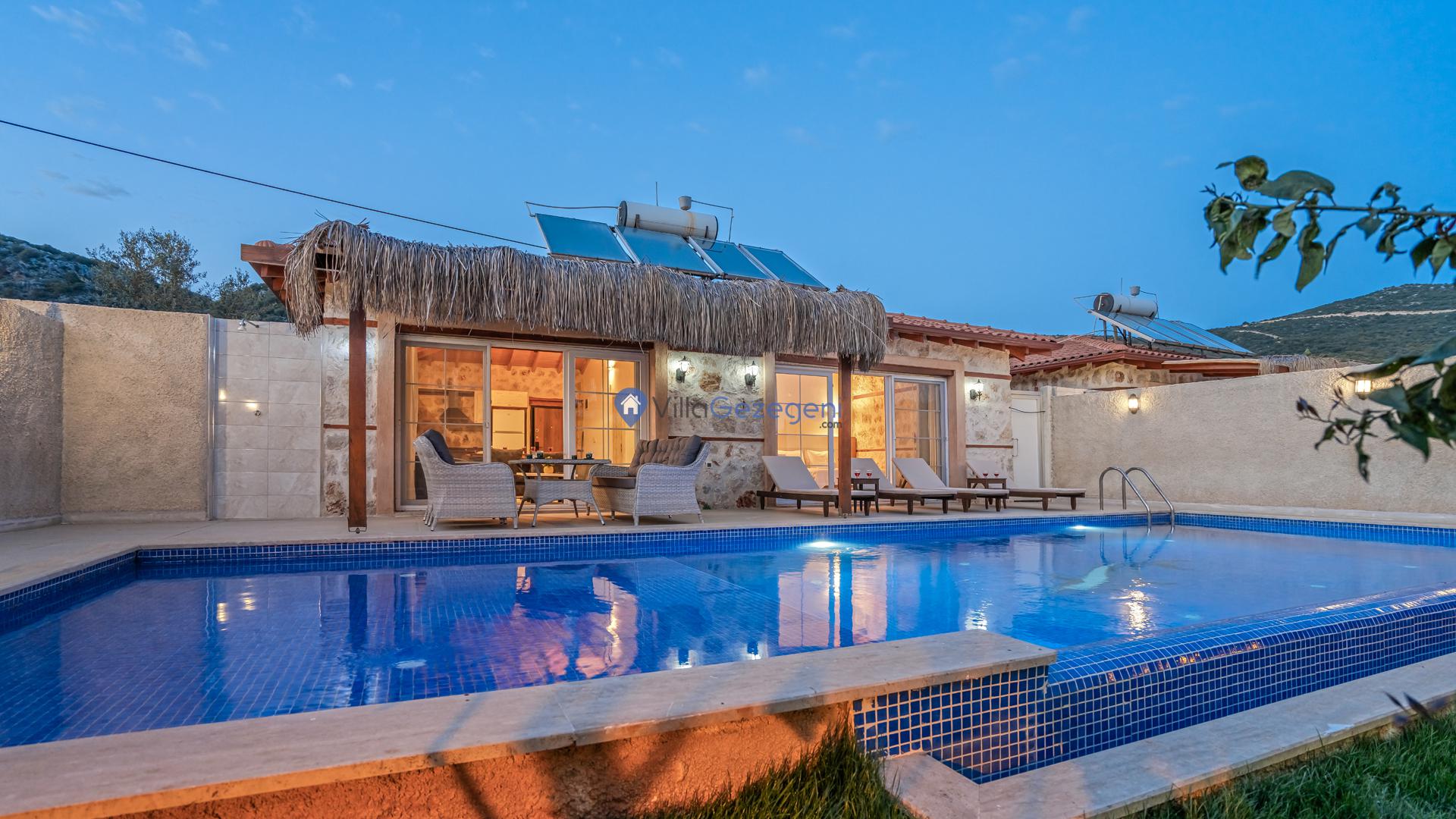 Kaş Ağullu' da bulunan, 3 yatak odalı, lüks tasarıma sahip, muhafazakar kiralık villa