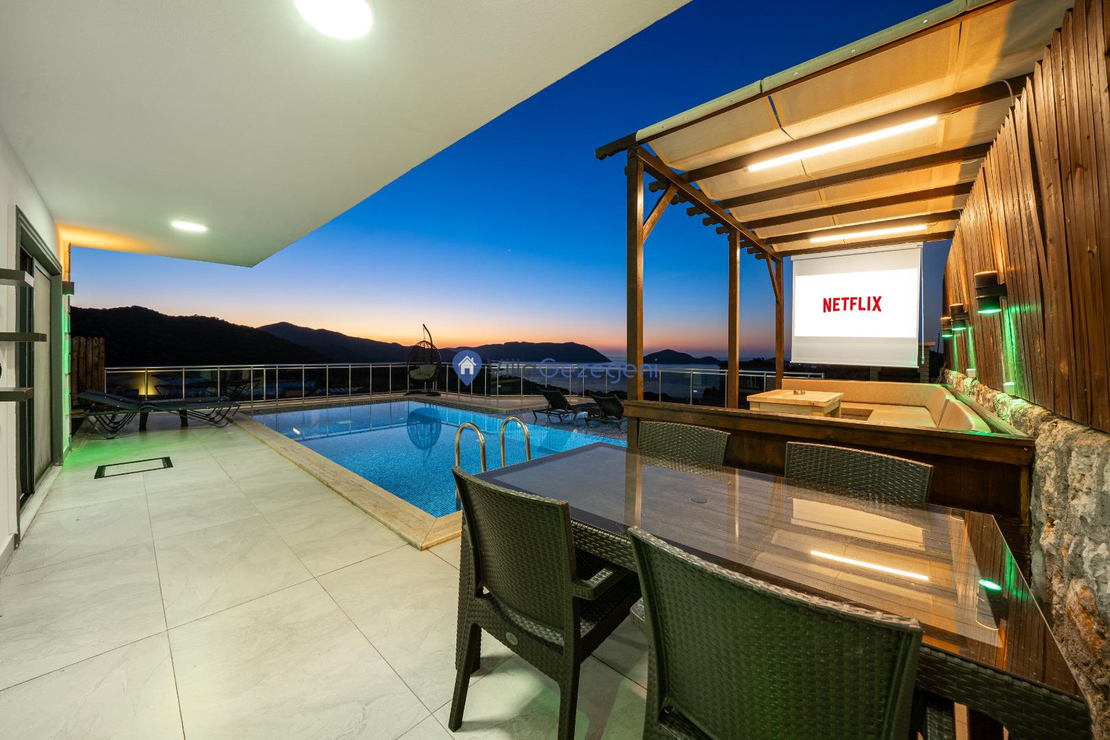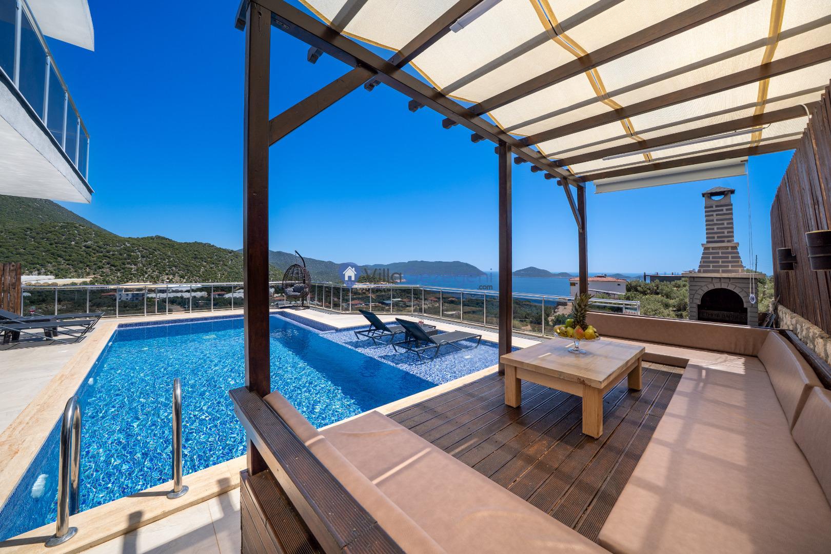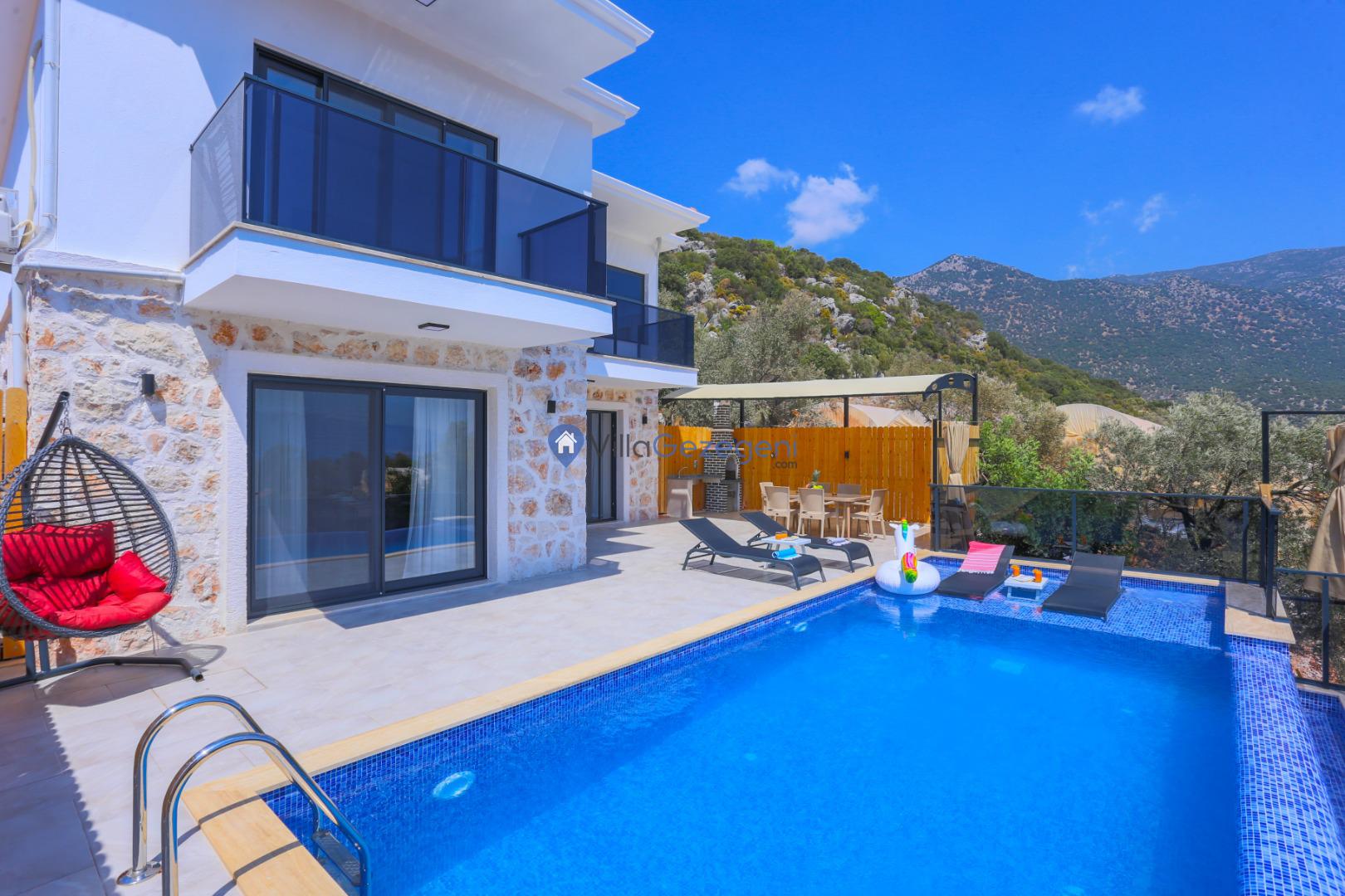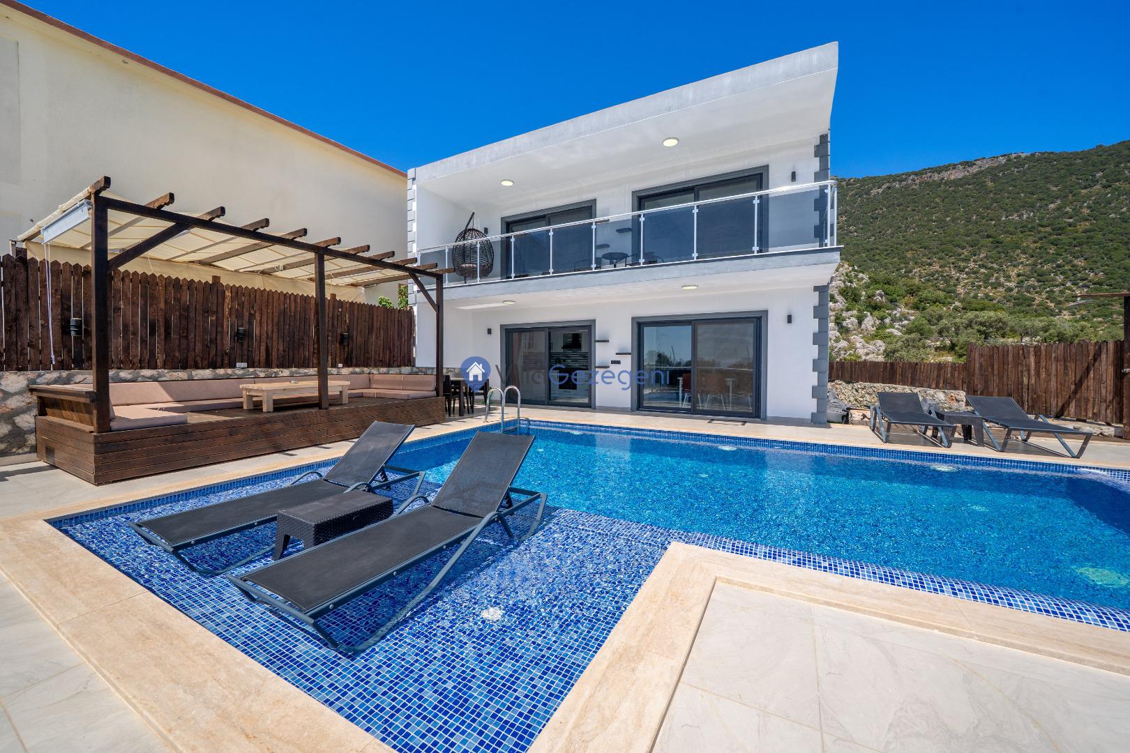 Kaş Ağullu' da bulunan, 3 yatak odalı, lüks tasarıma sahip, muhafazakar kiralık villa