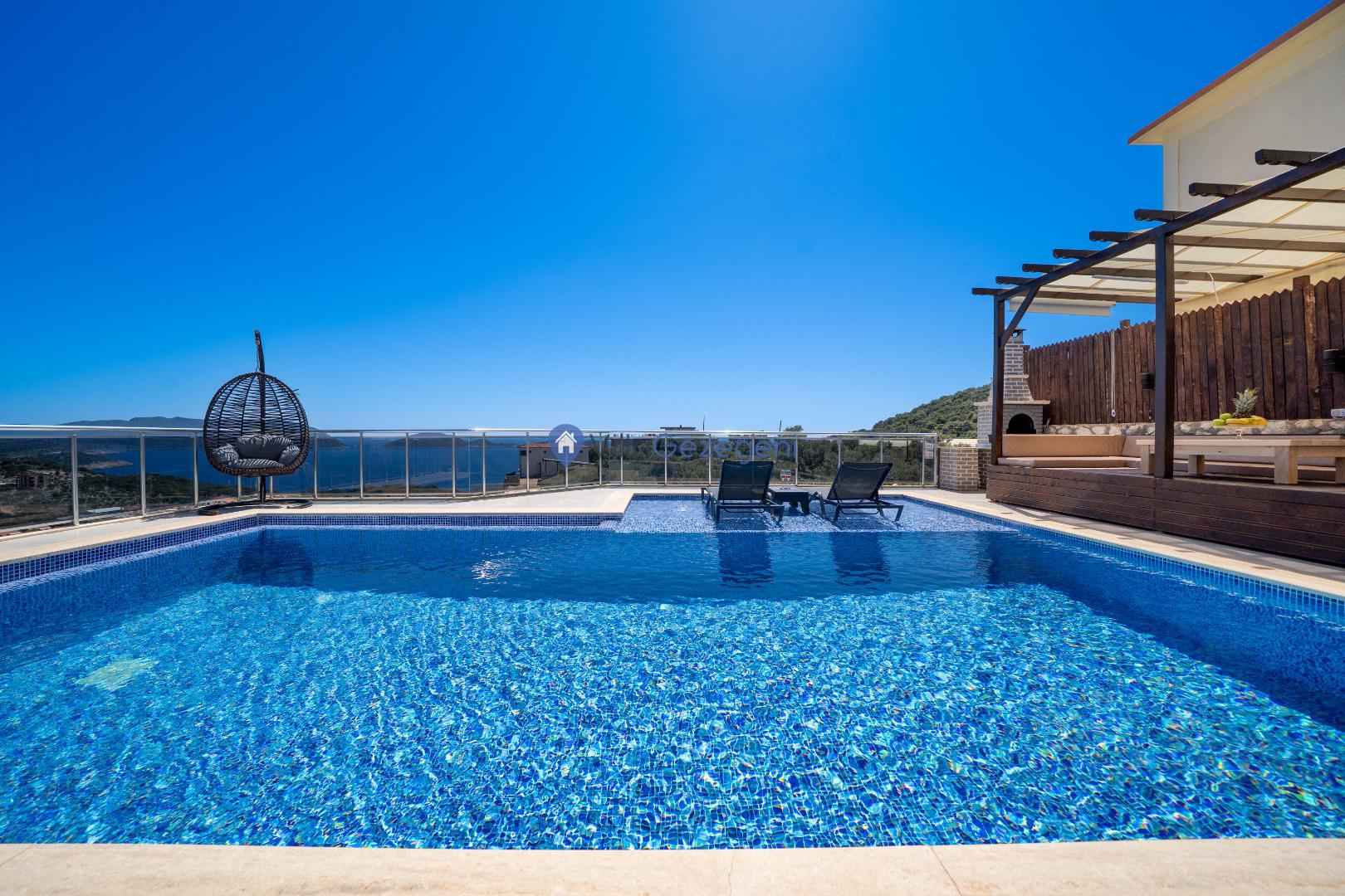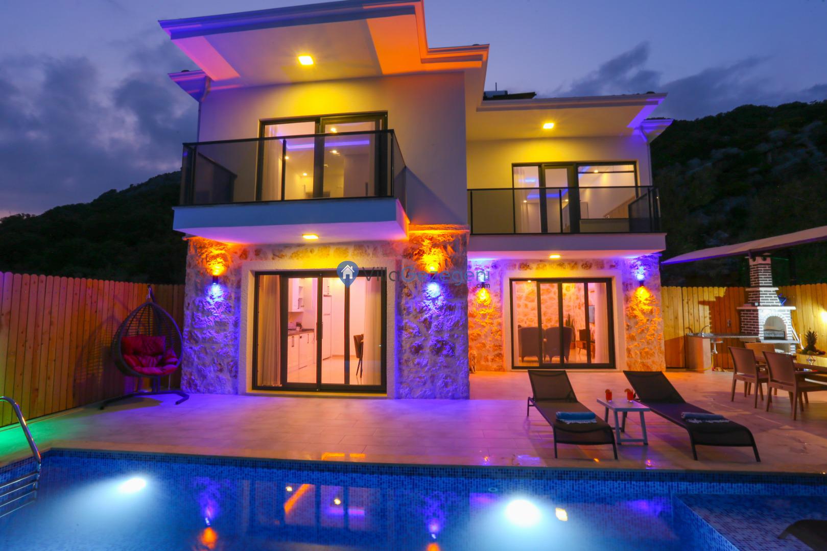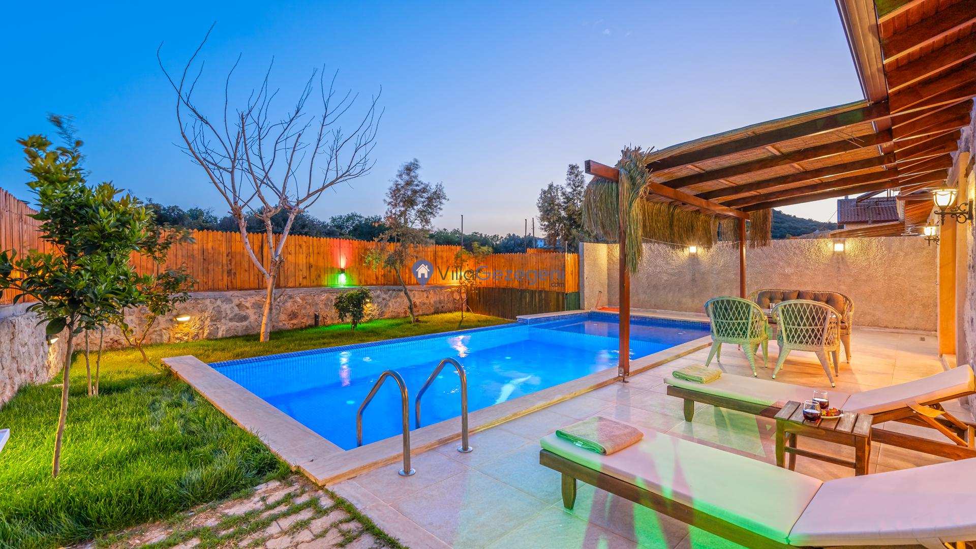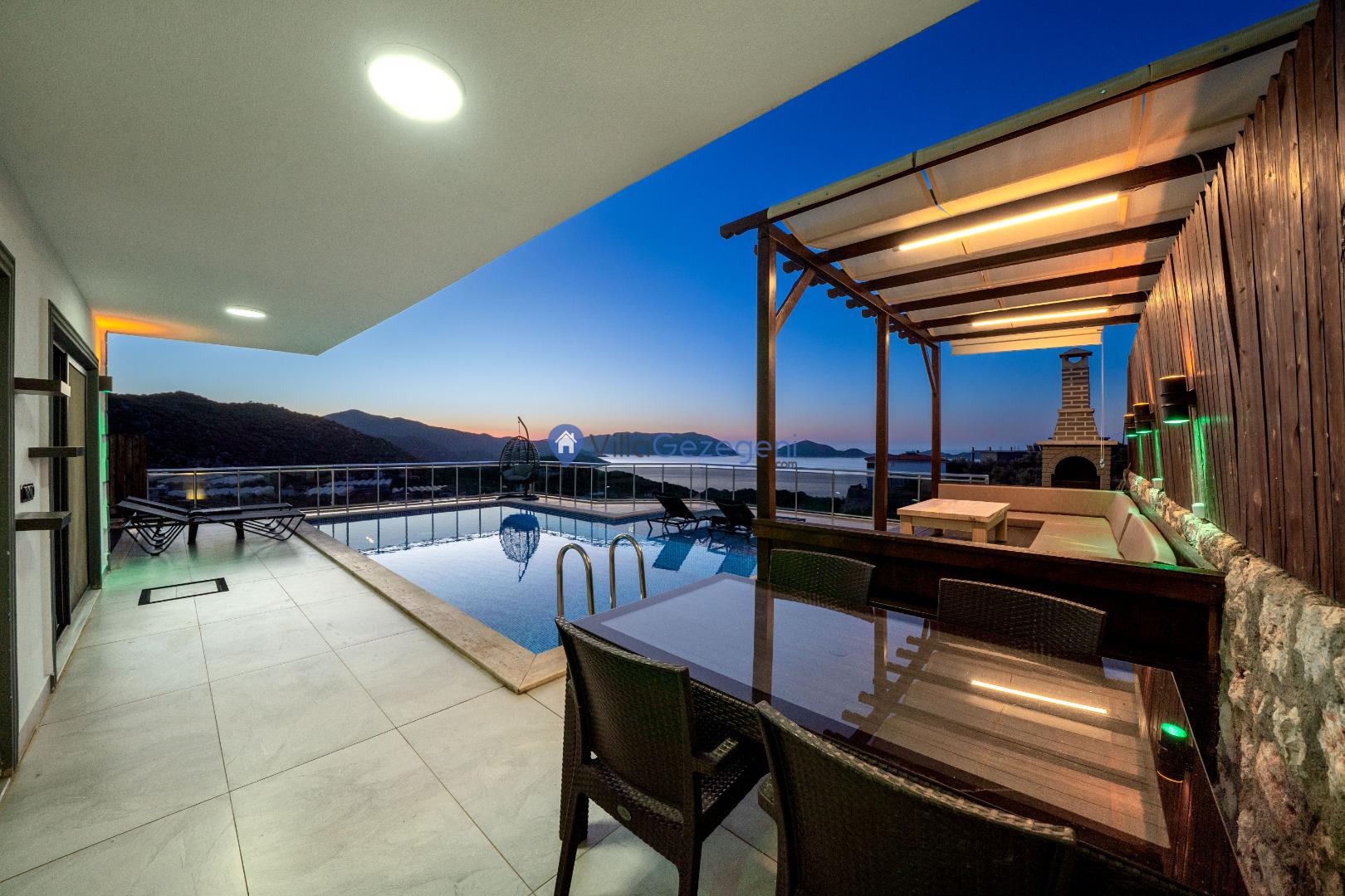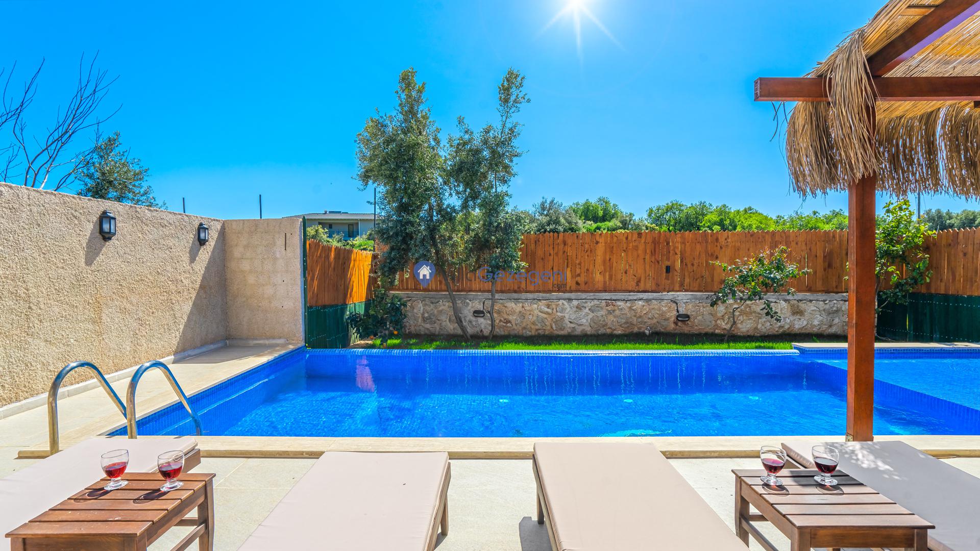 Kaş Ağullu' da bulunan, 3 yatak odalı, lüks tasarıma sahip, muhafazakar kiralık villa