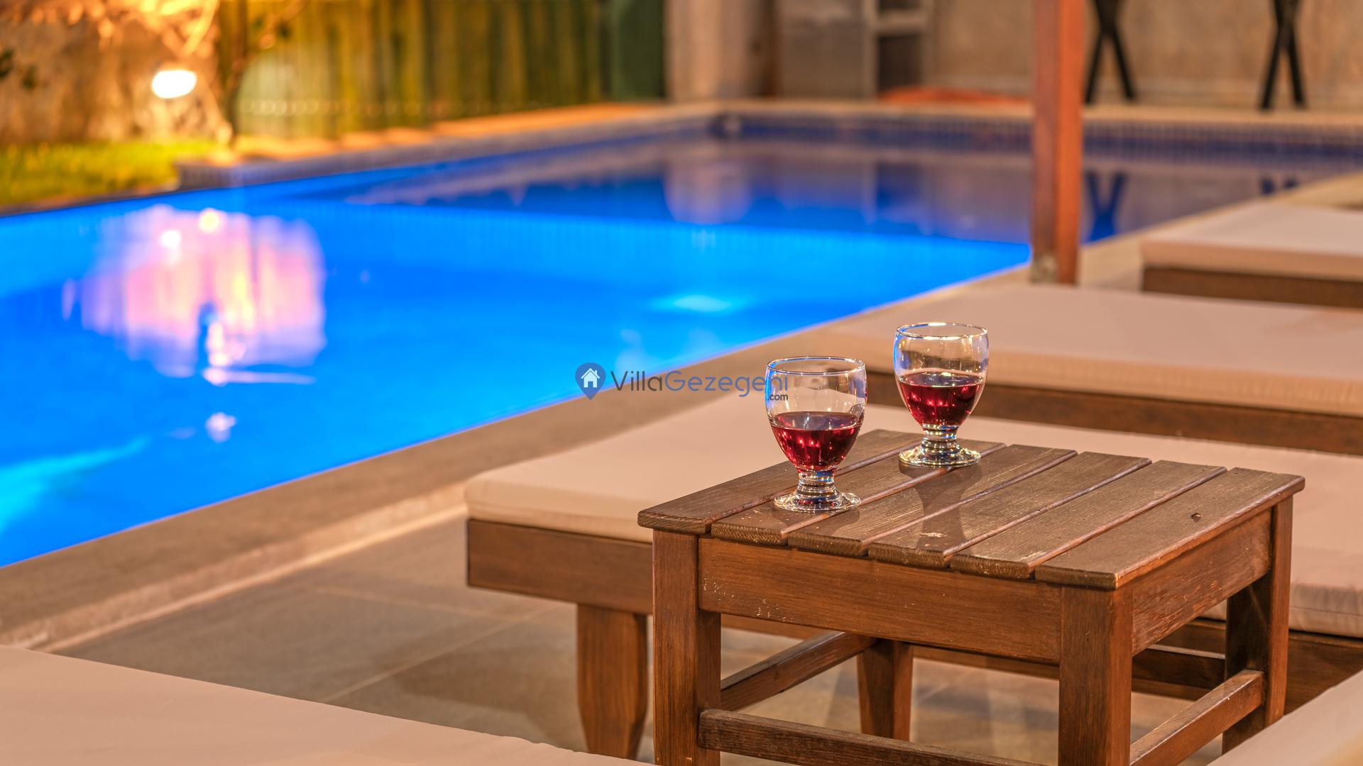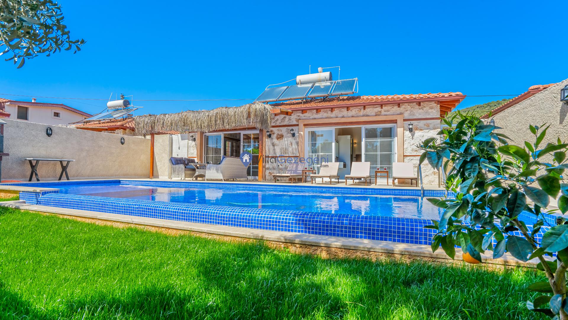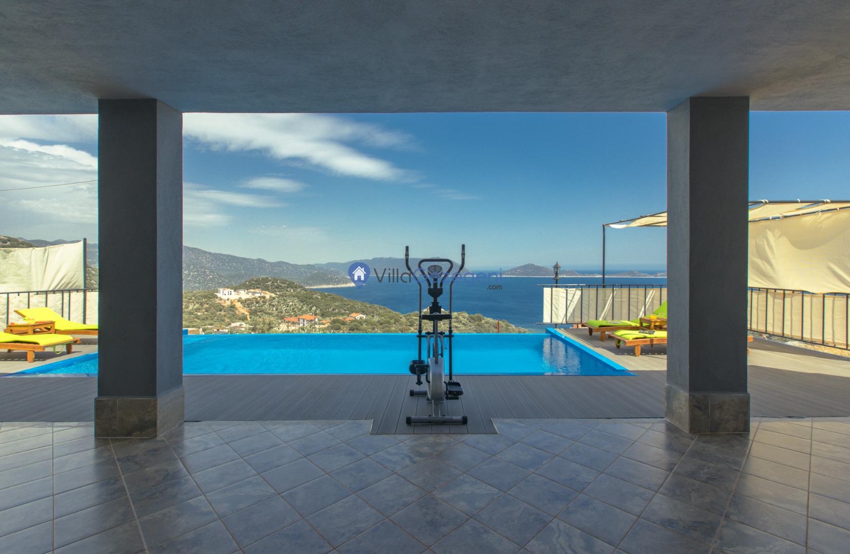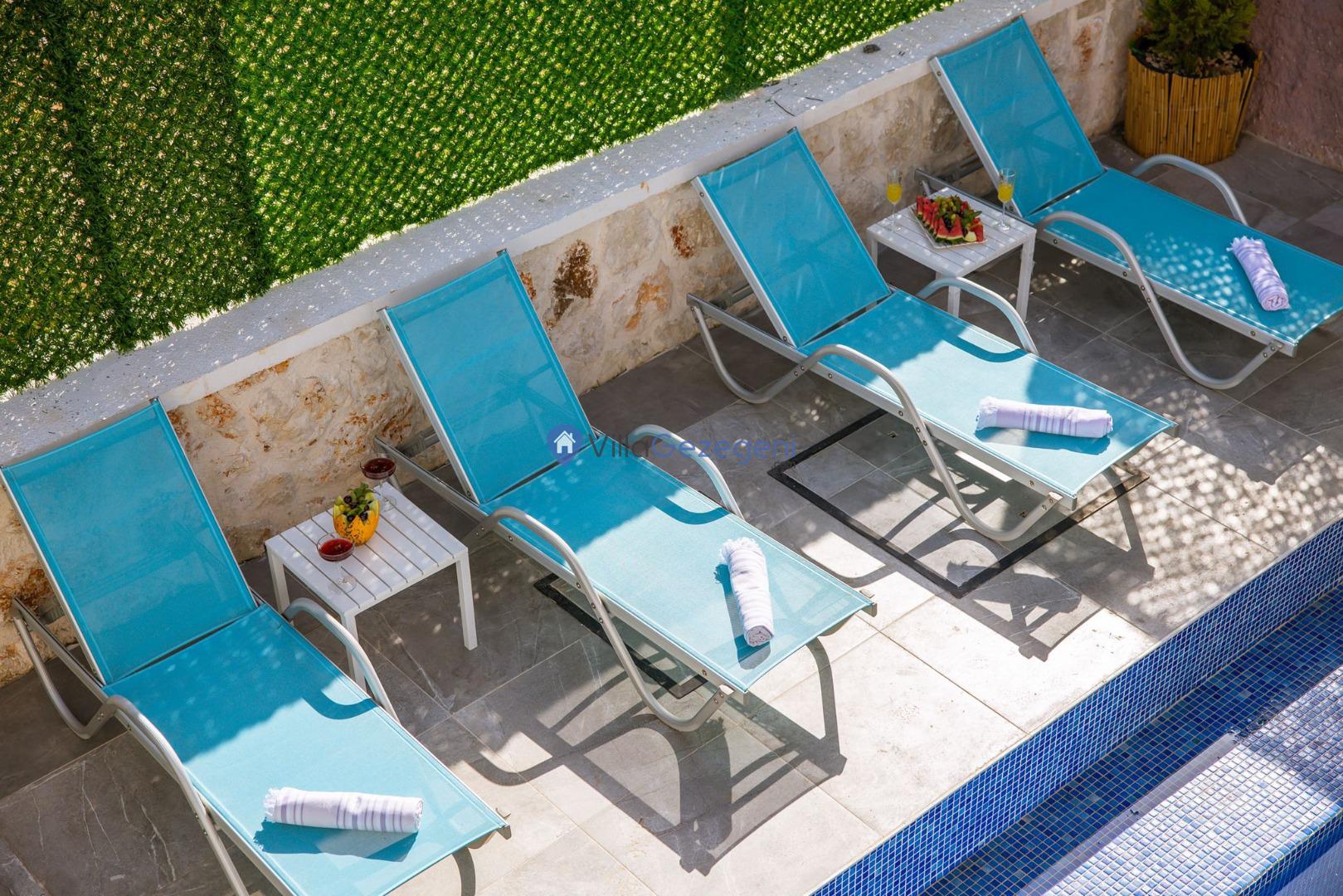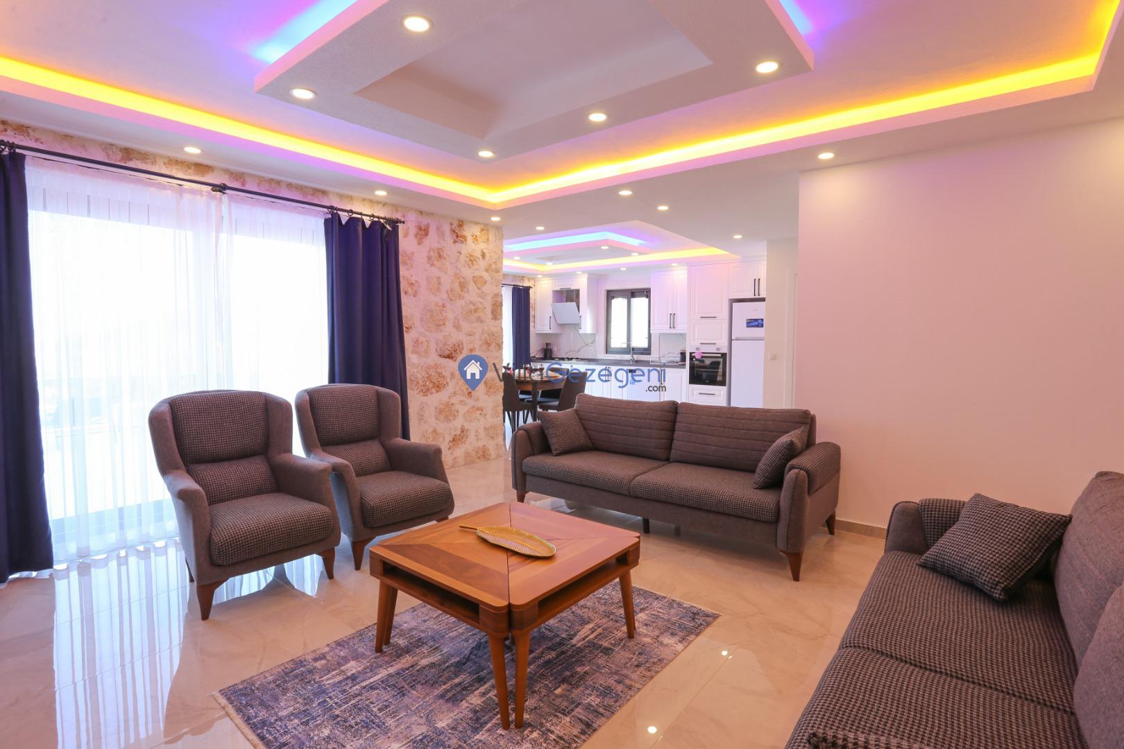 Kaş Ağullu' da bulunan, 3 yatak odalı, lüks tasarıma sahip, muhafazakar kiralık villa