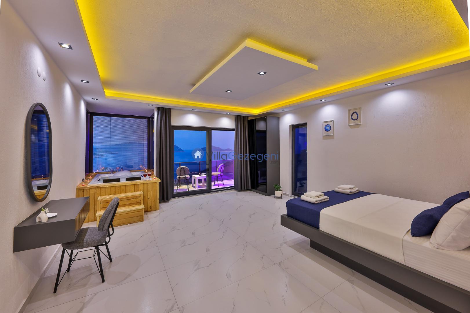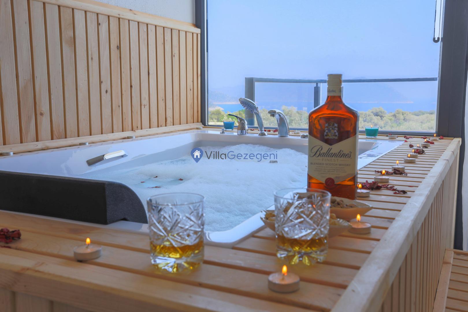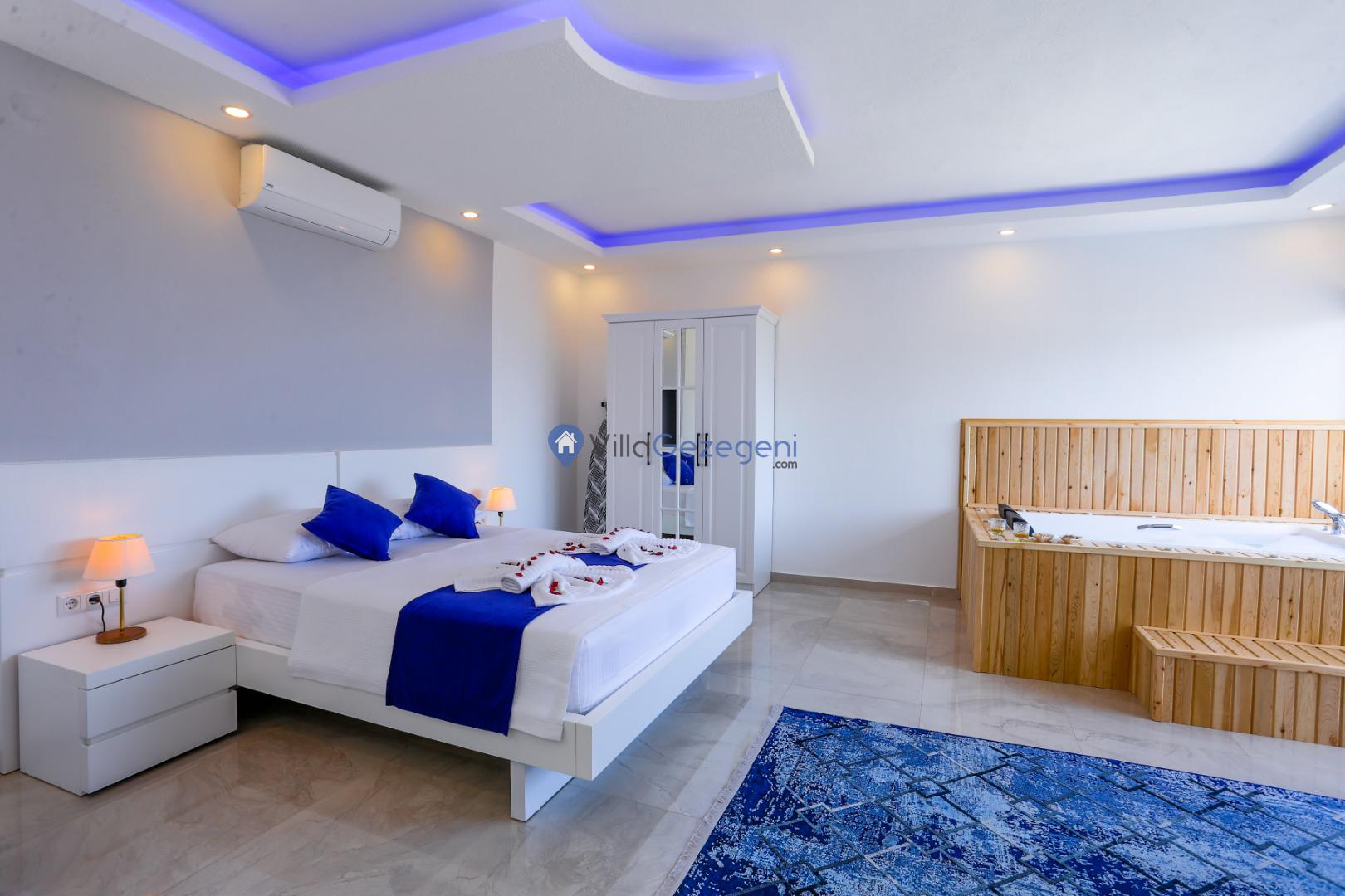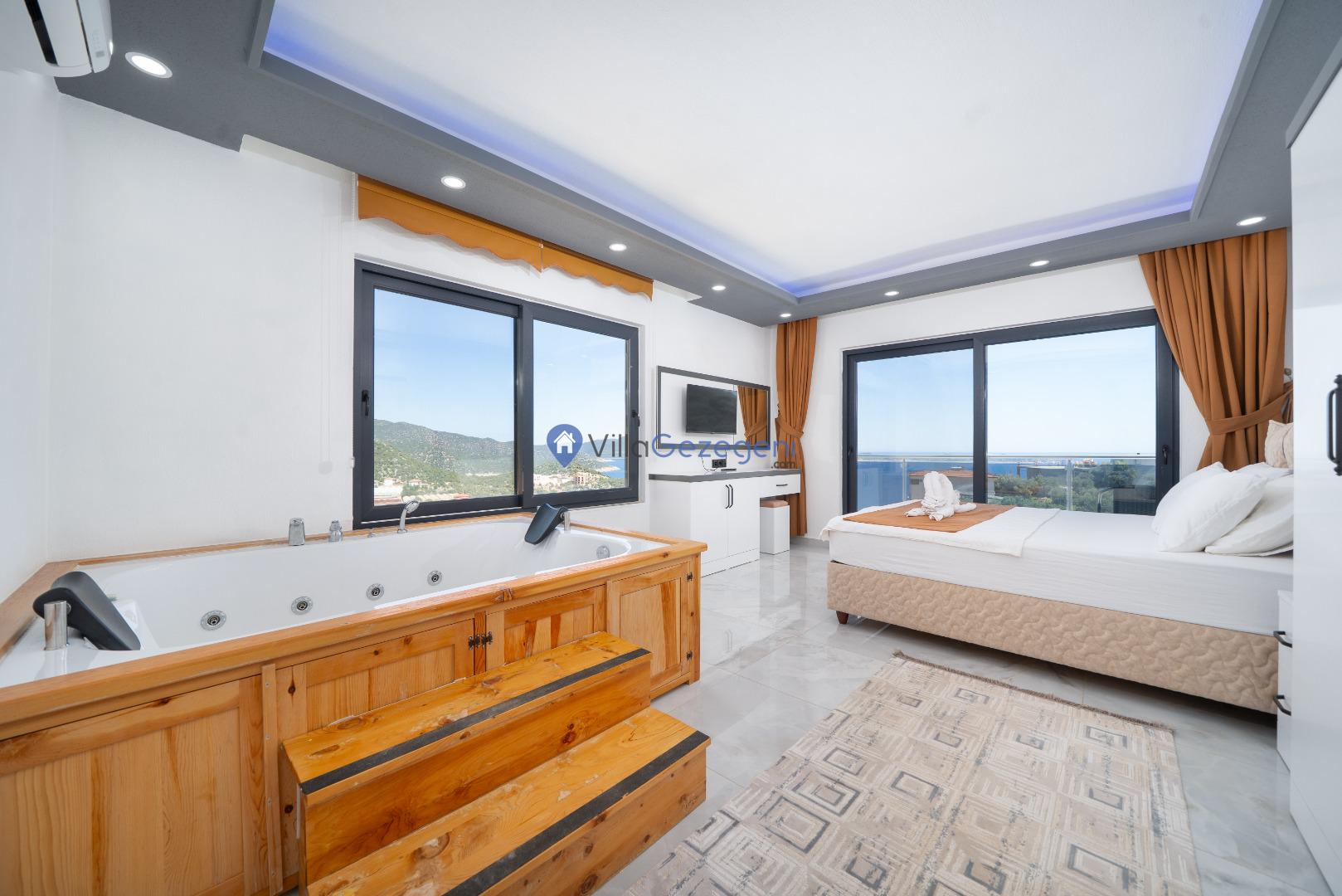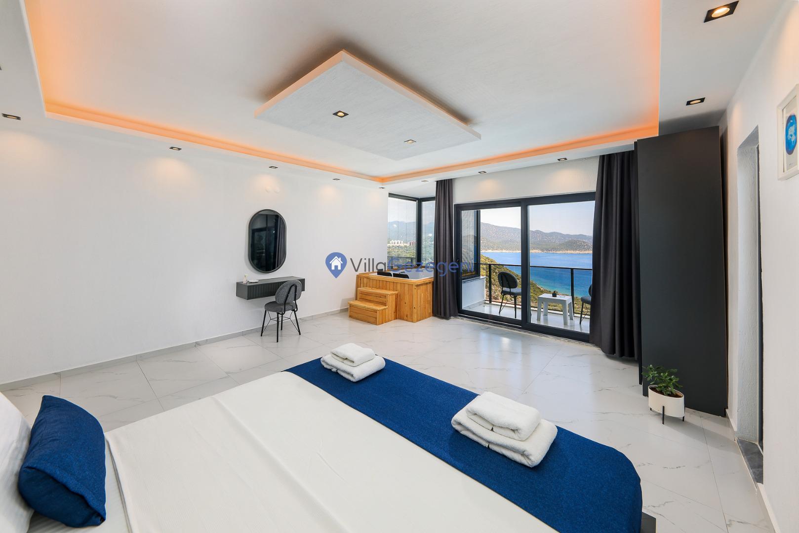 Kaş Bayındır'da bulunan 2 yatak odalı deniz manzaralı ve jakuzili kiralık balayı villası