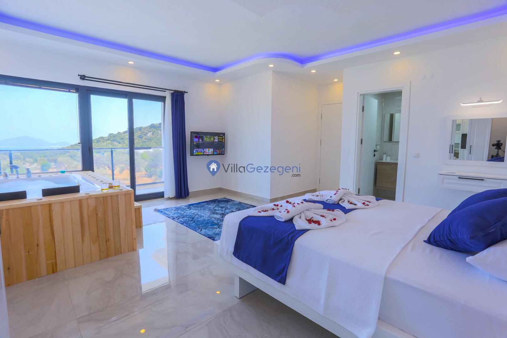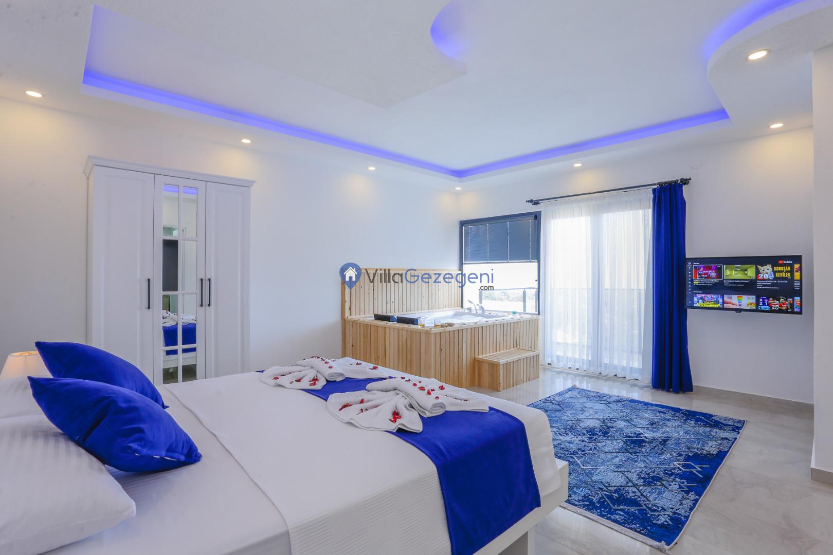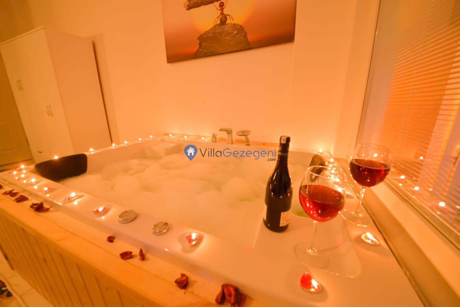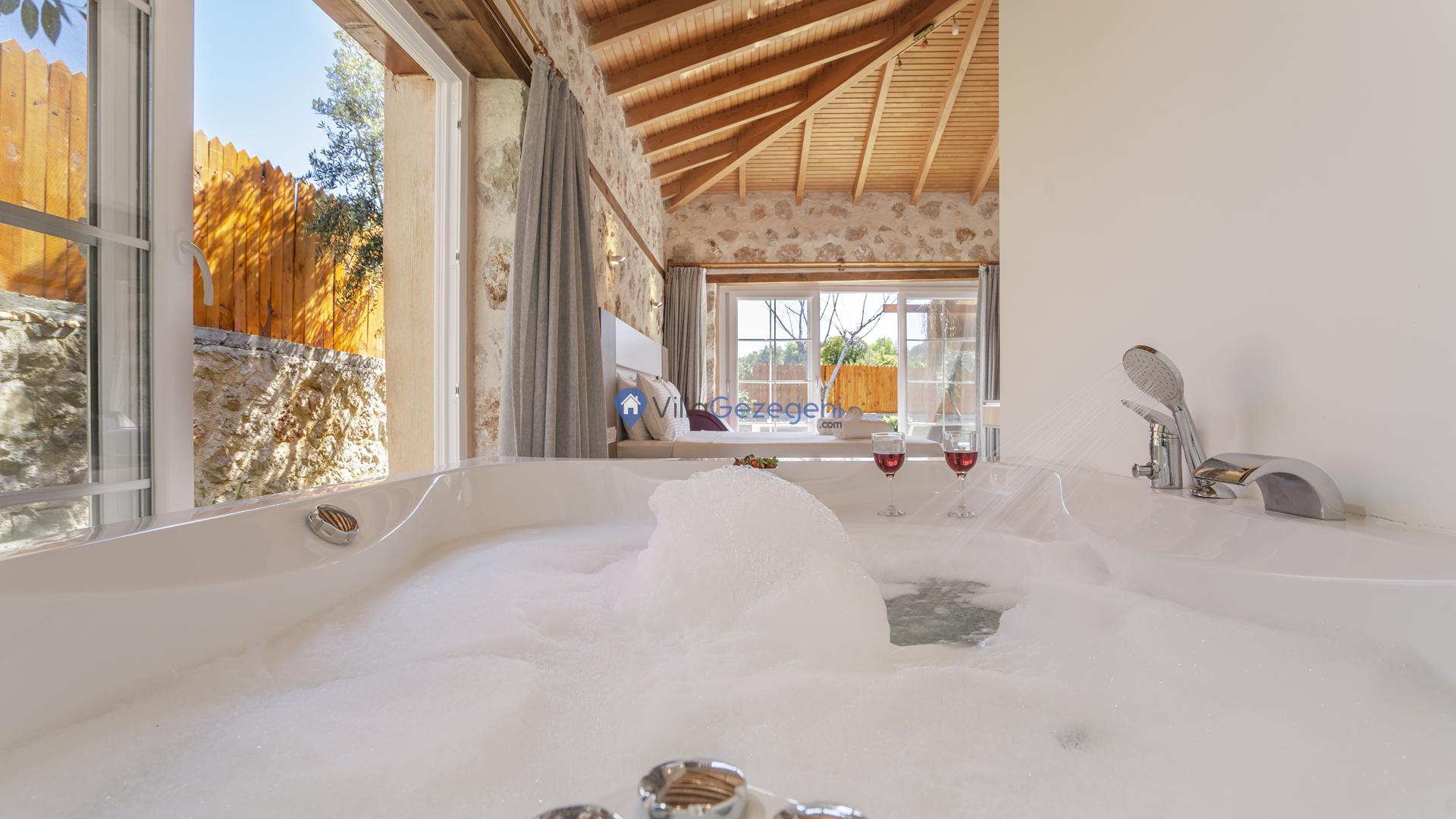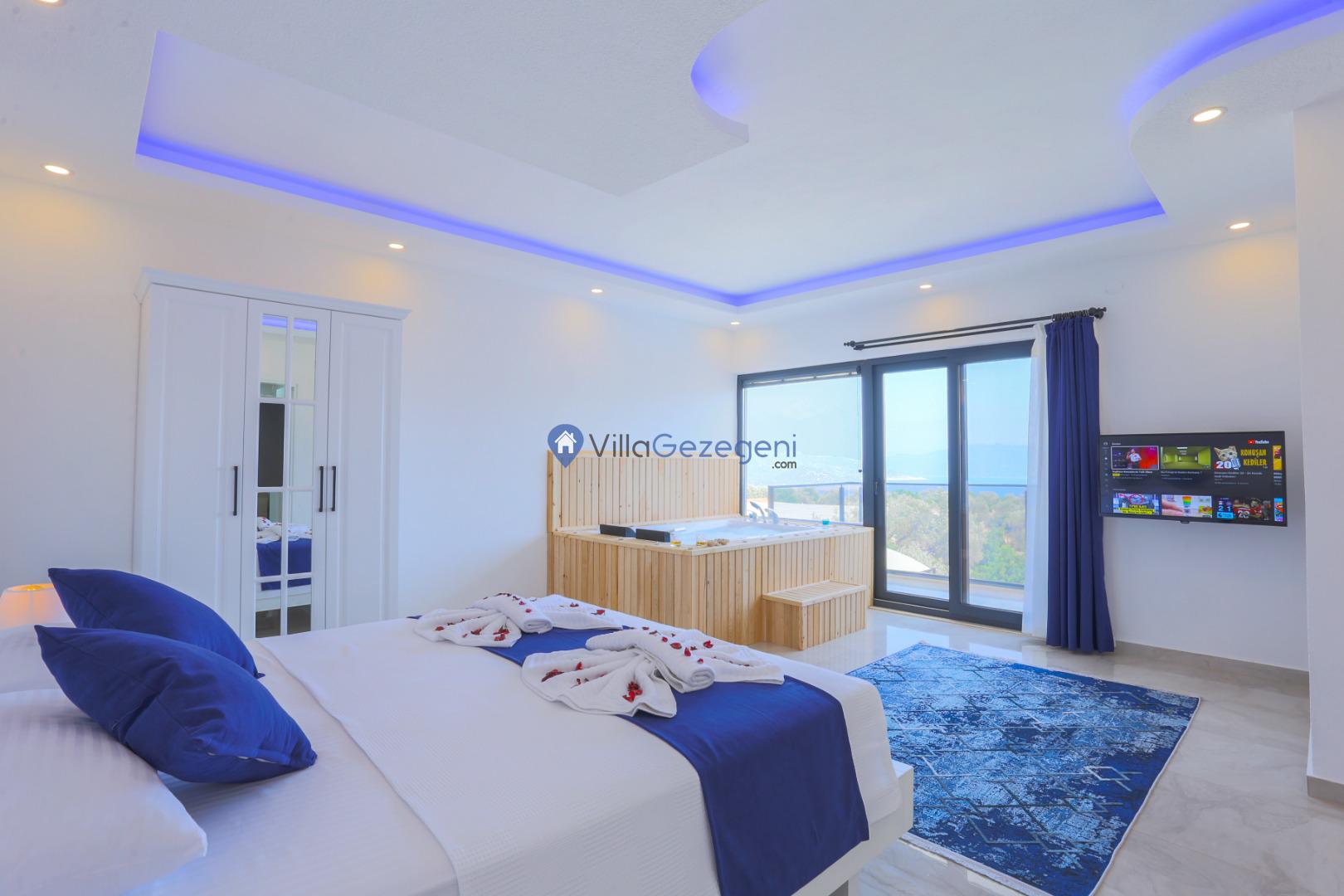 Kaş Bayındır'da bulunan 2 yatak odalı deniz manzaralı ve jakuzili kiralık balayı villası