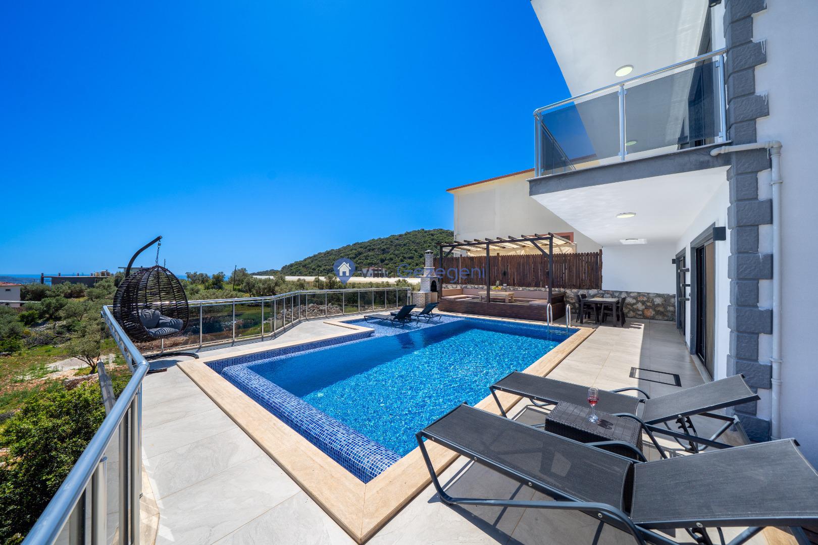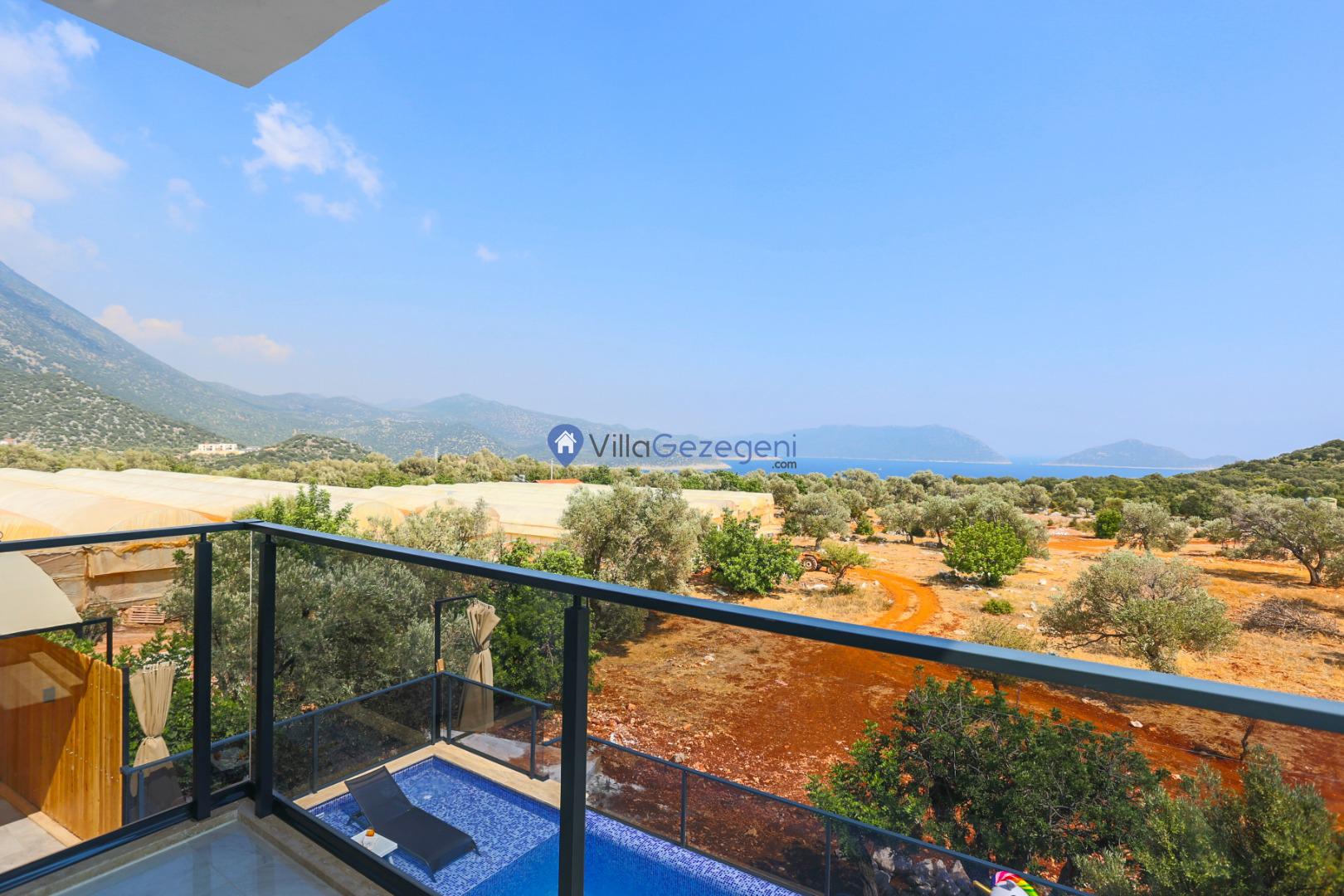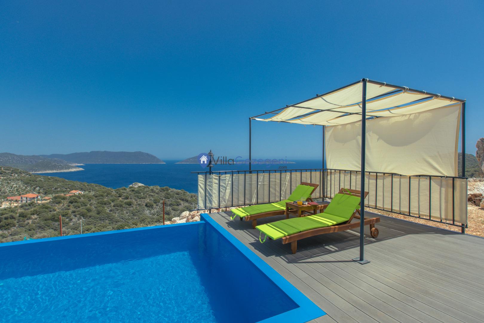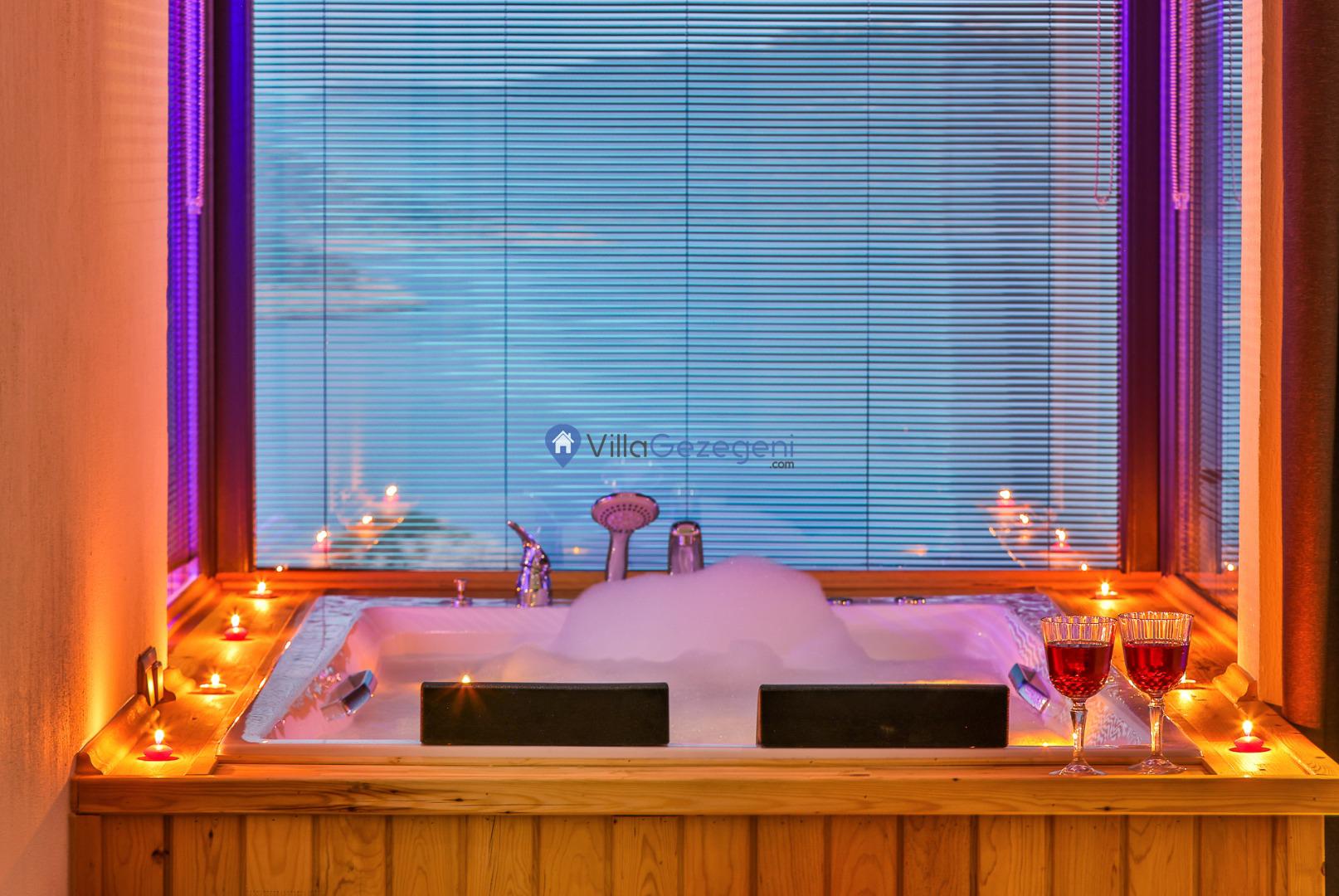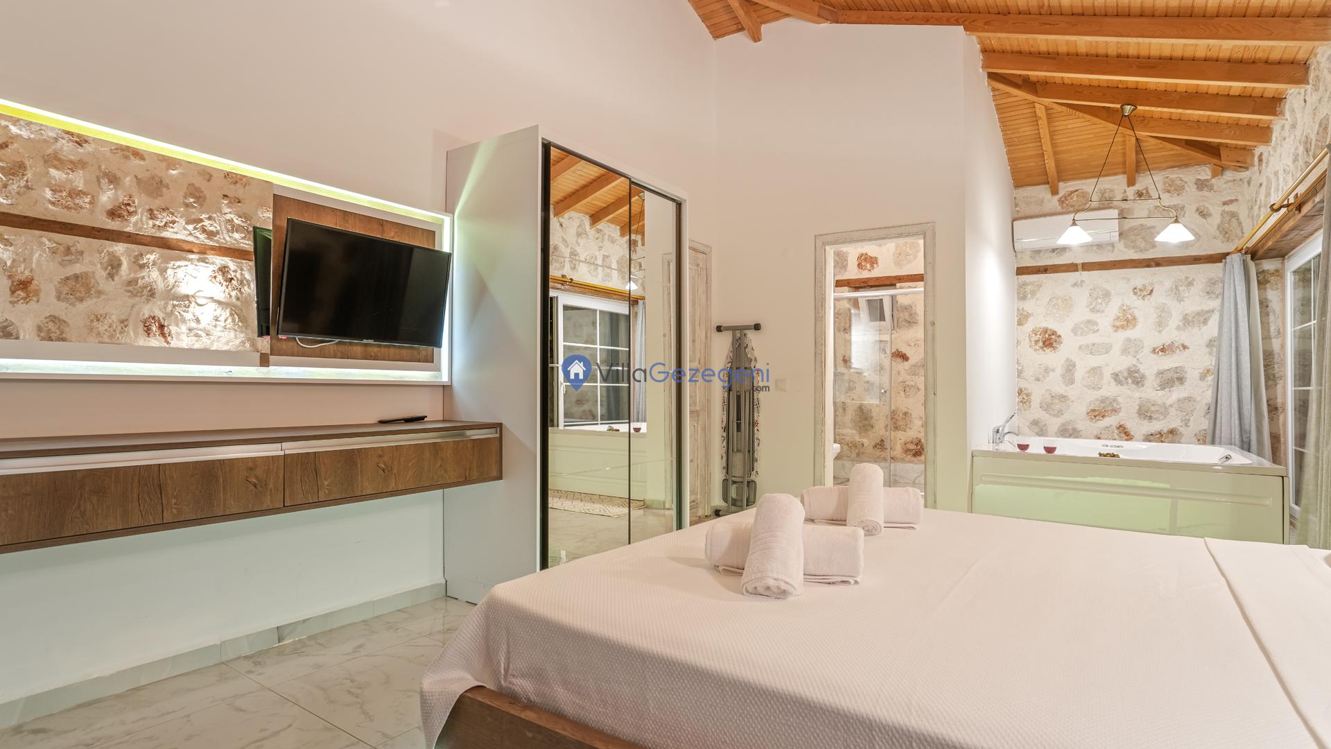 Kaş Bayındır'da bulunan 2 yatak odalı deniz manzaralı ve jakuzili kiralık balayı villası