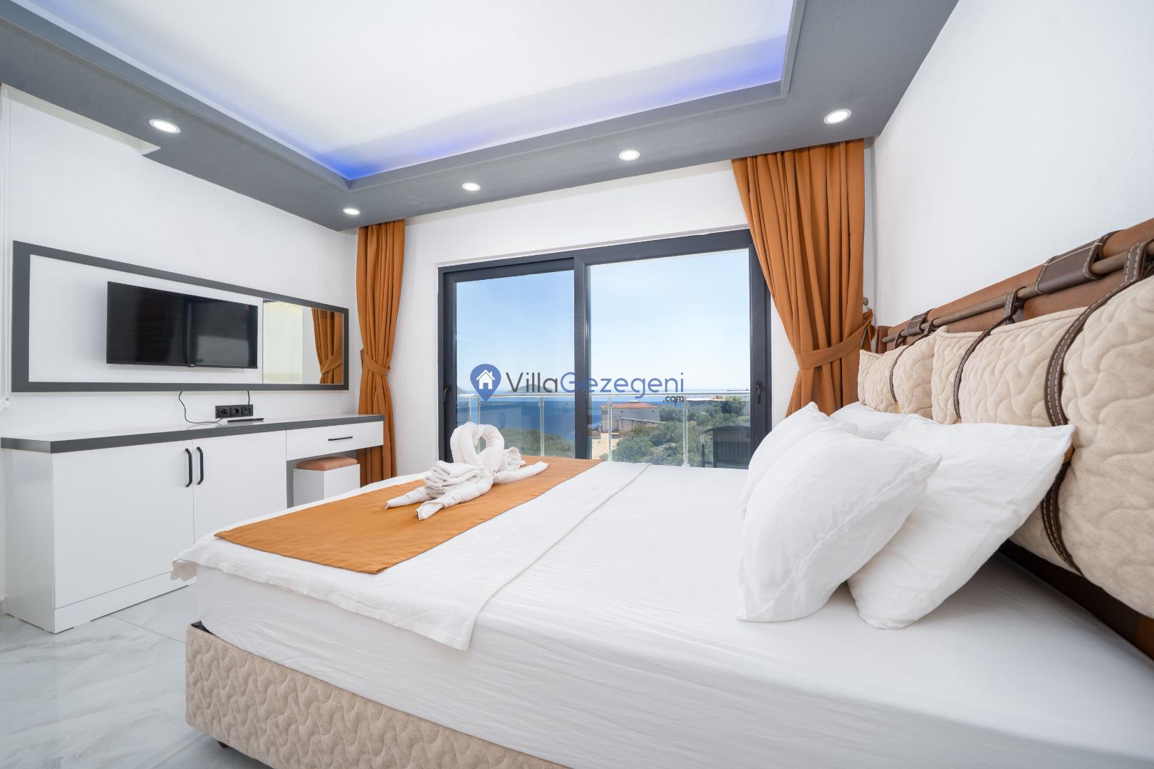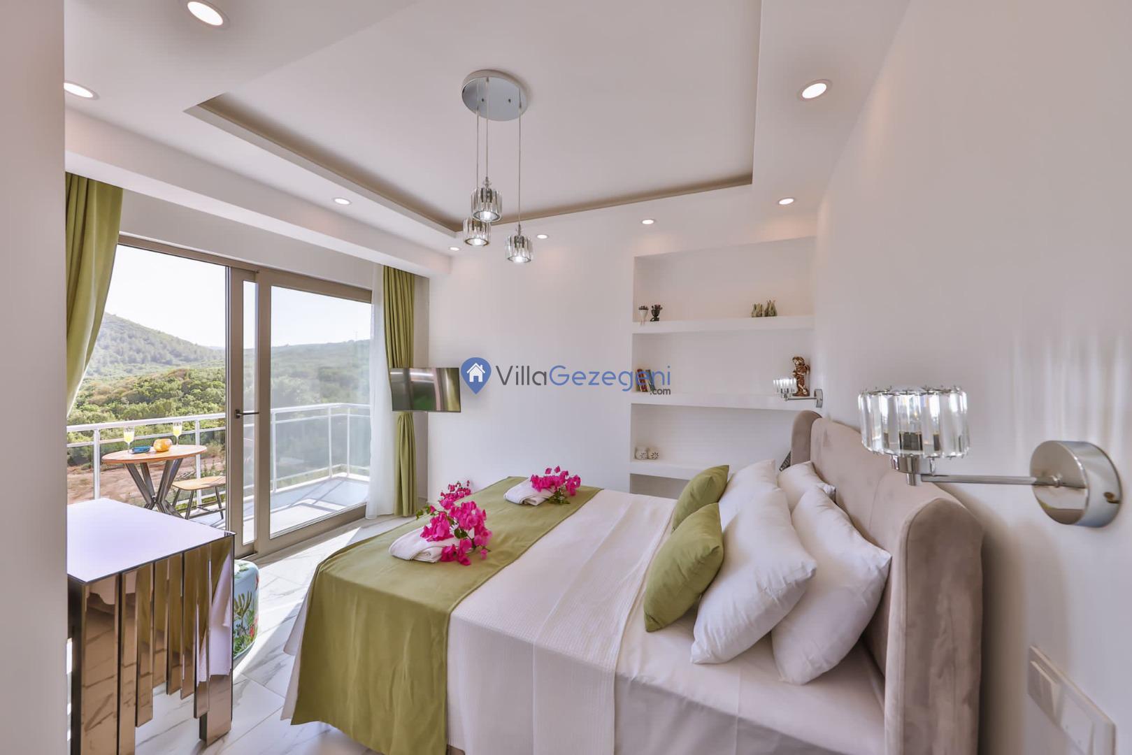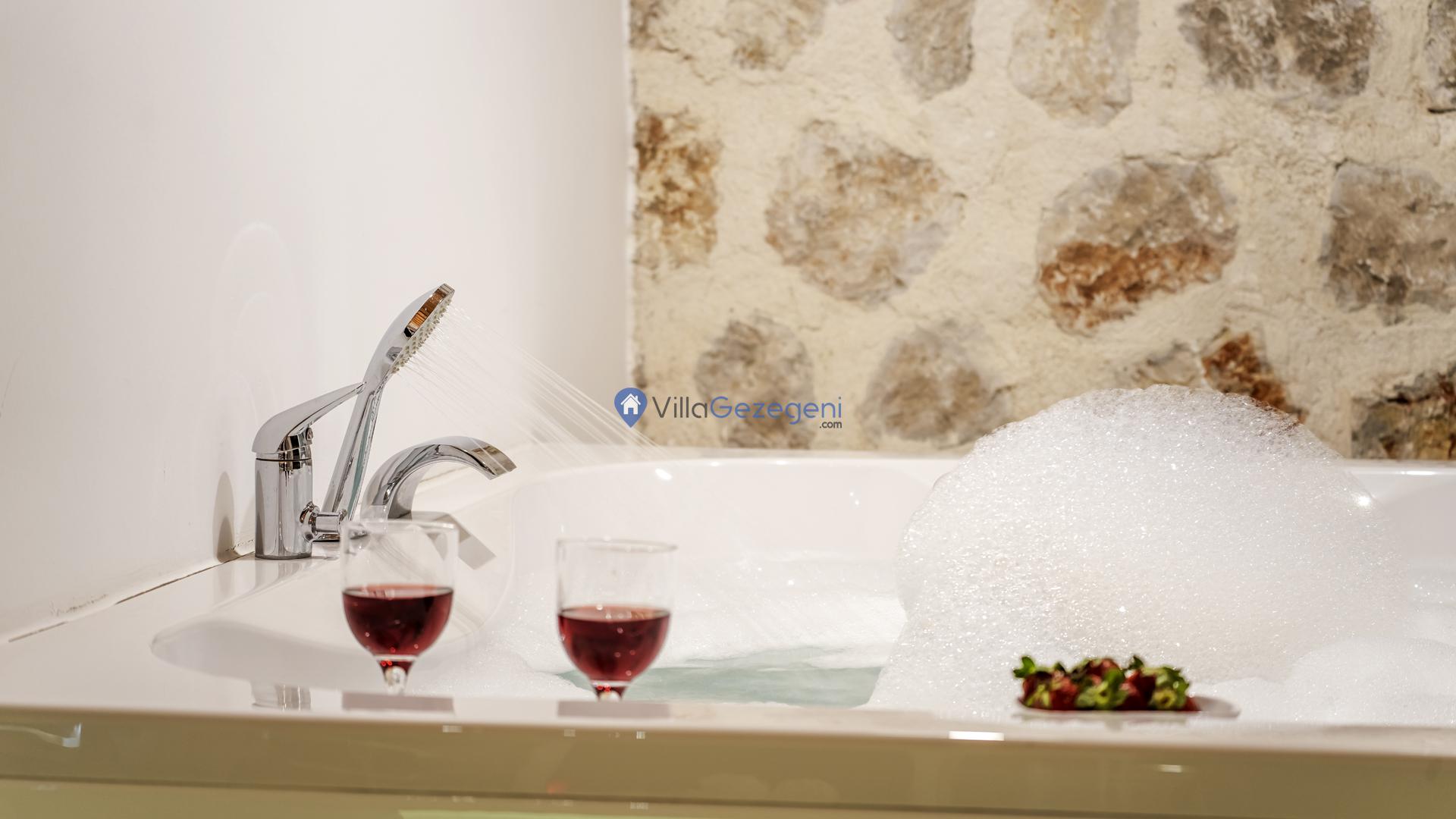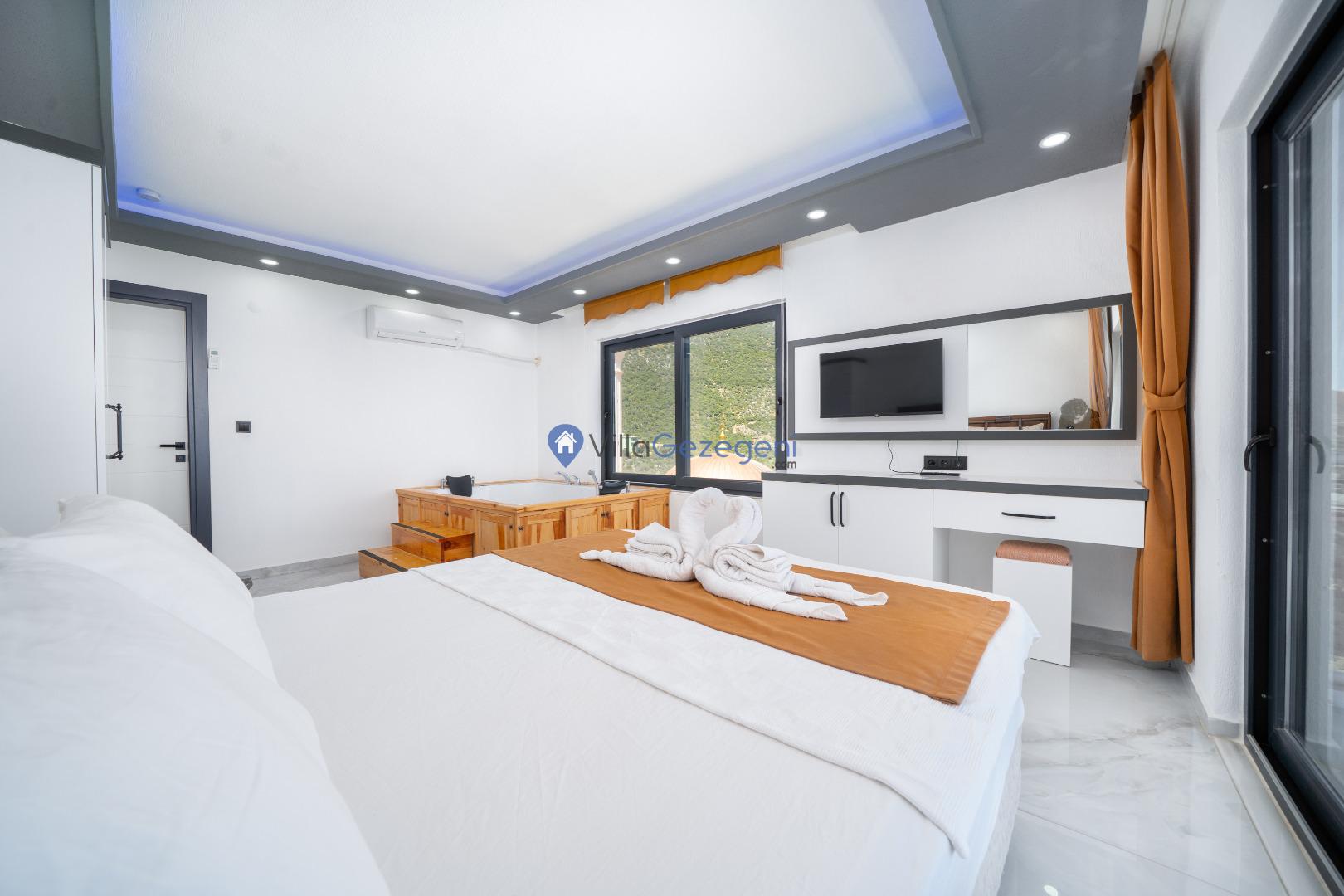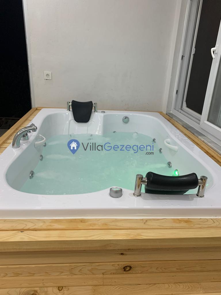 Kaş Bayındır'da bulunan 2 yatak odalı deniz manzaralı ve jakuzili kiralık balayı villası