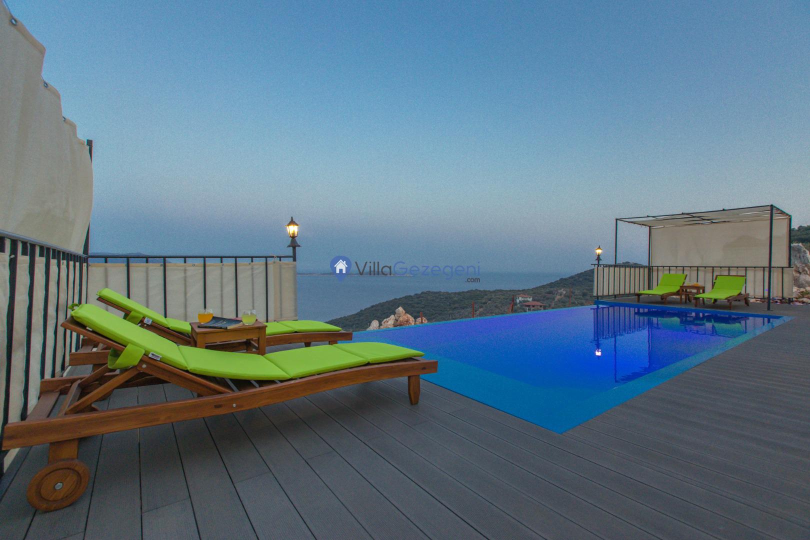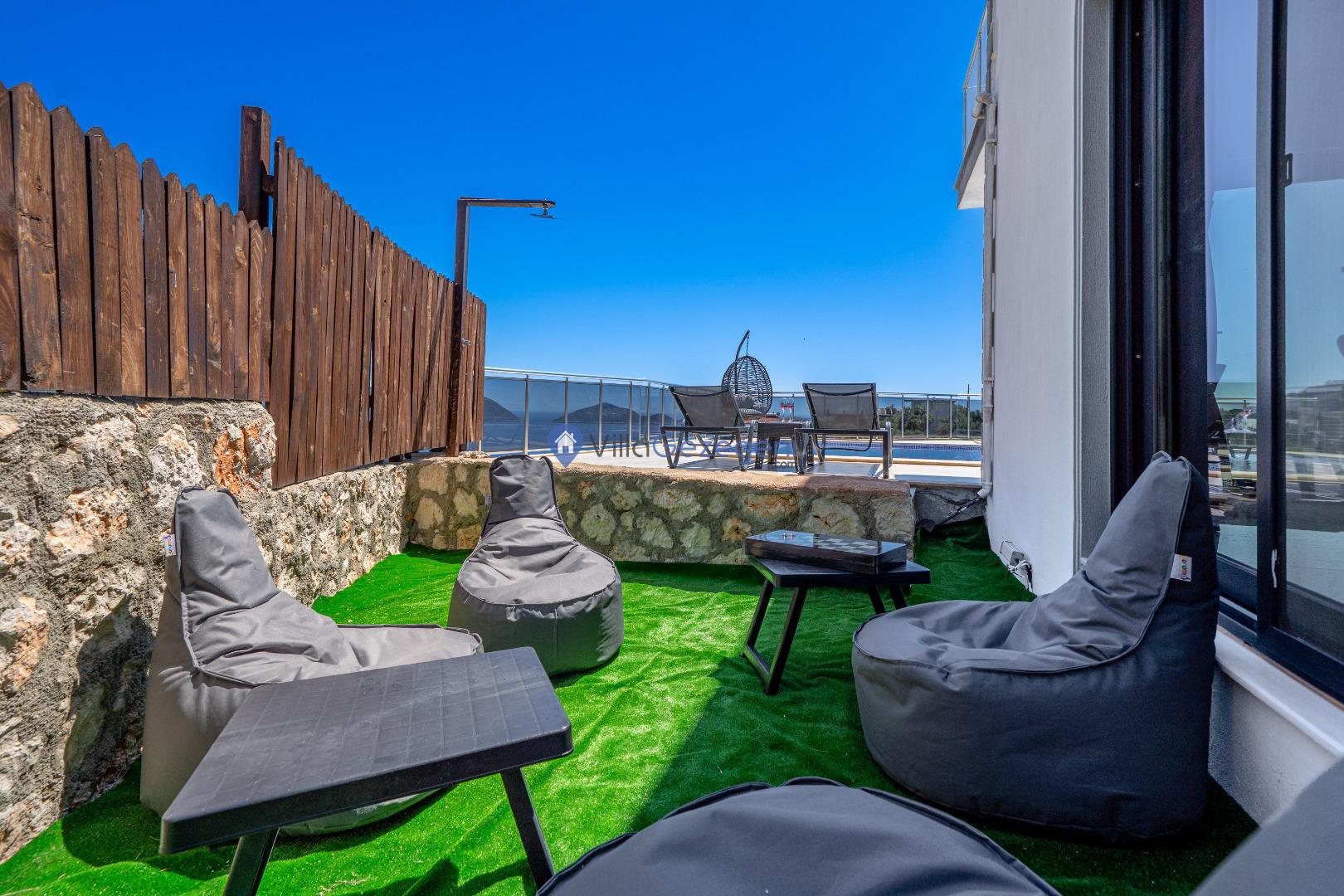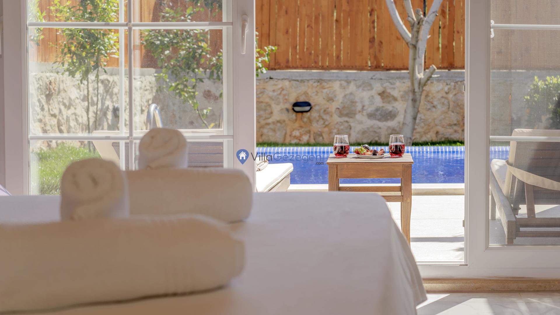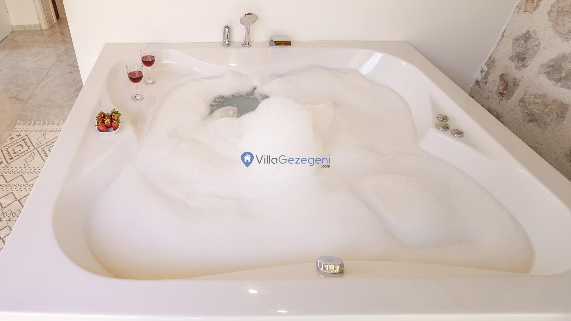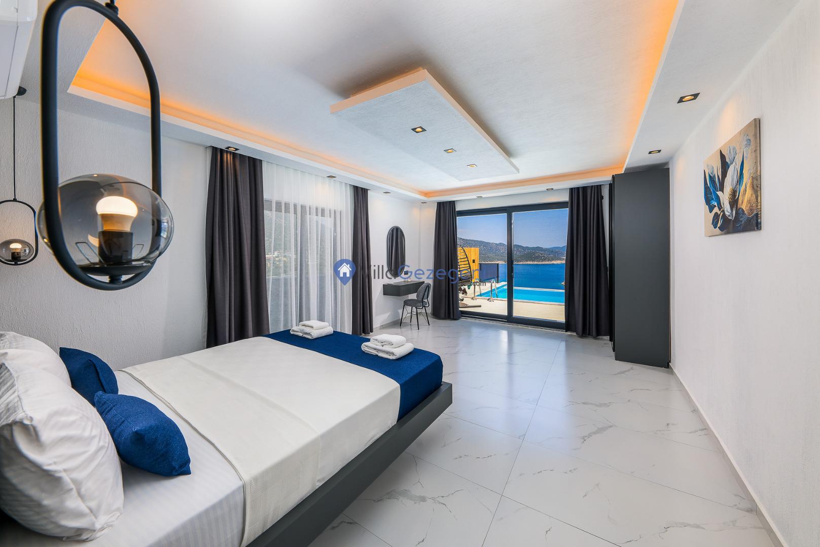 Kaş Bayındır'da bulunan 2 yatak odalı deniz manzaralı ve jakuzili kiralık balayı villası