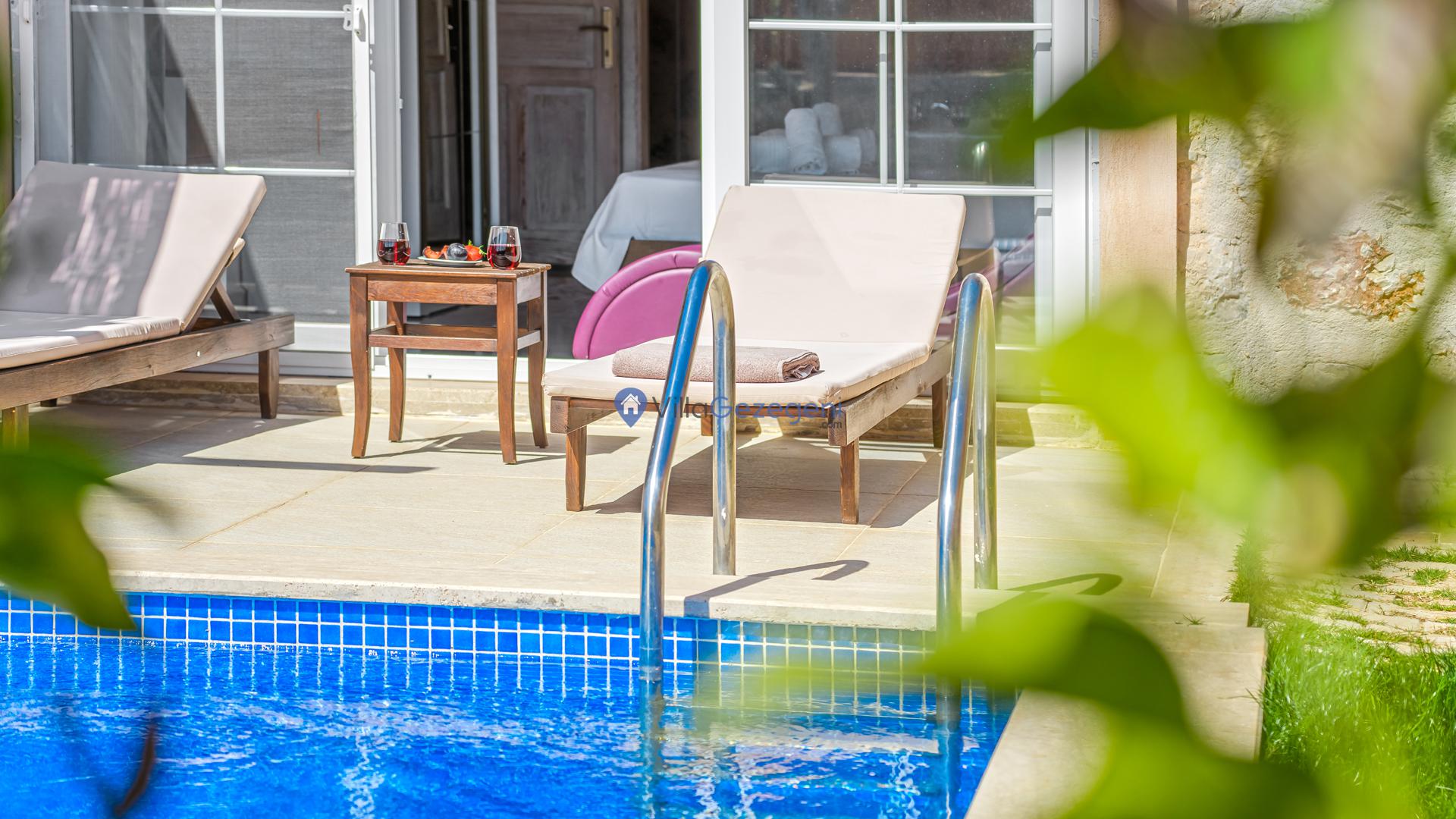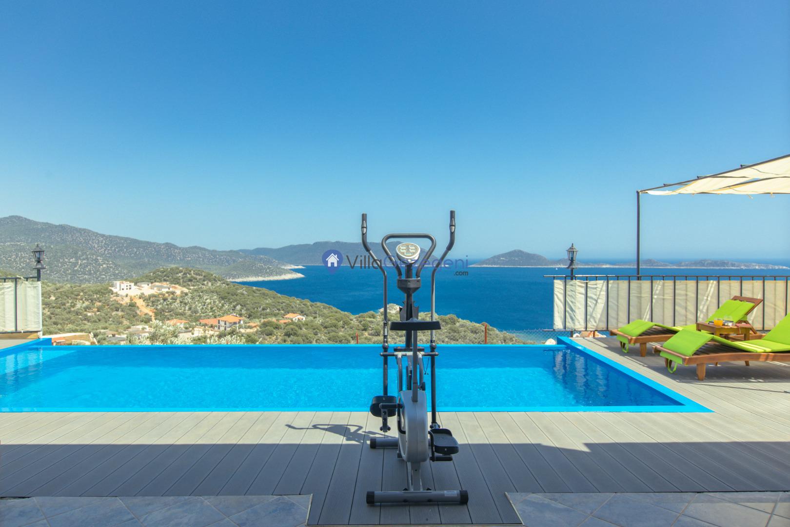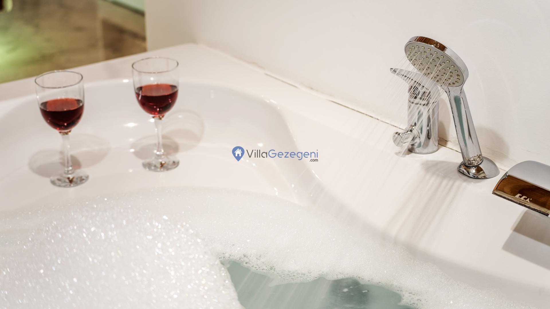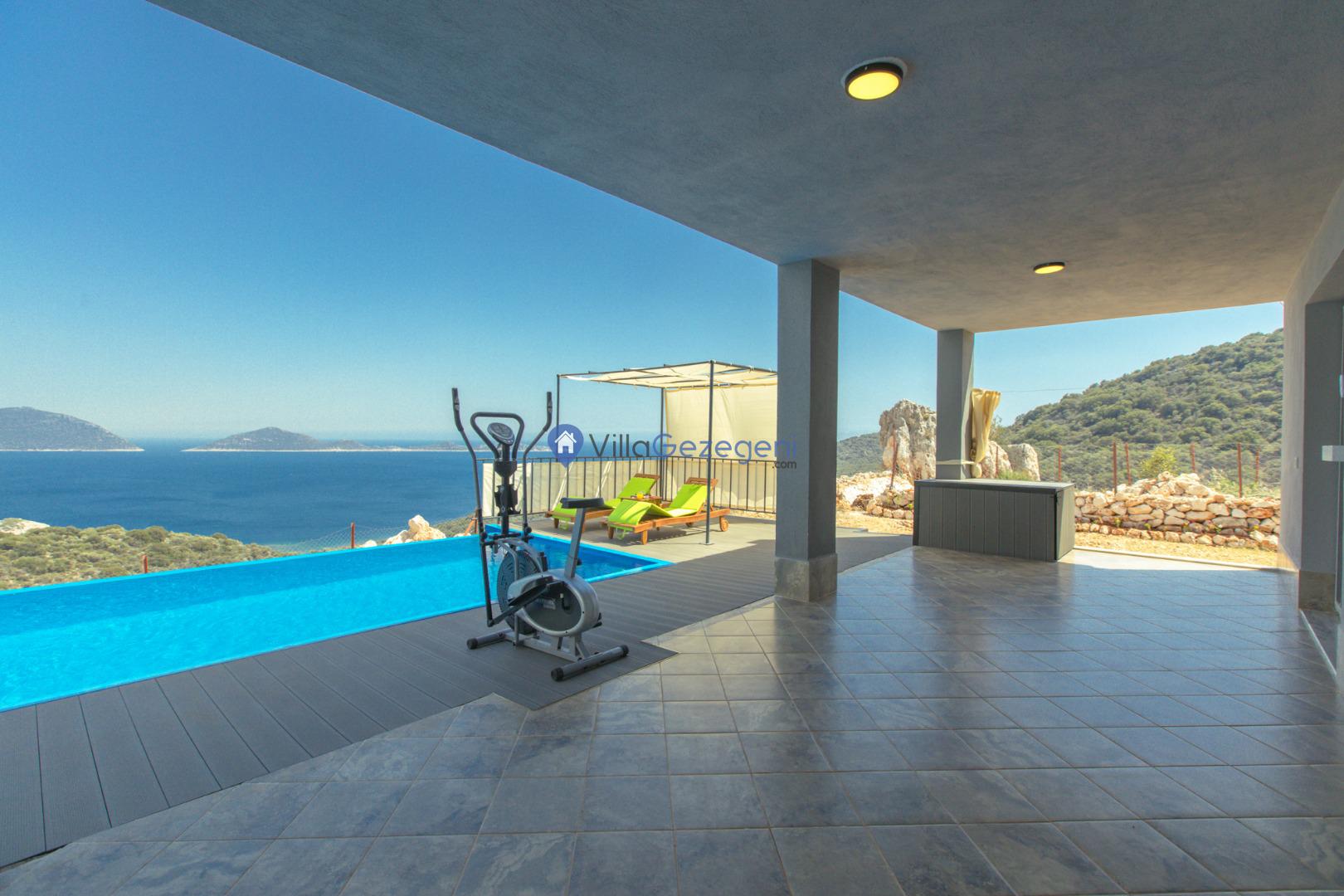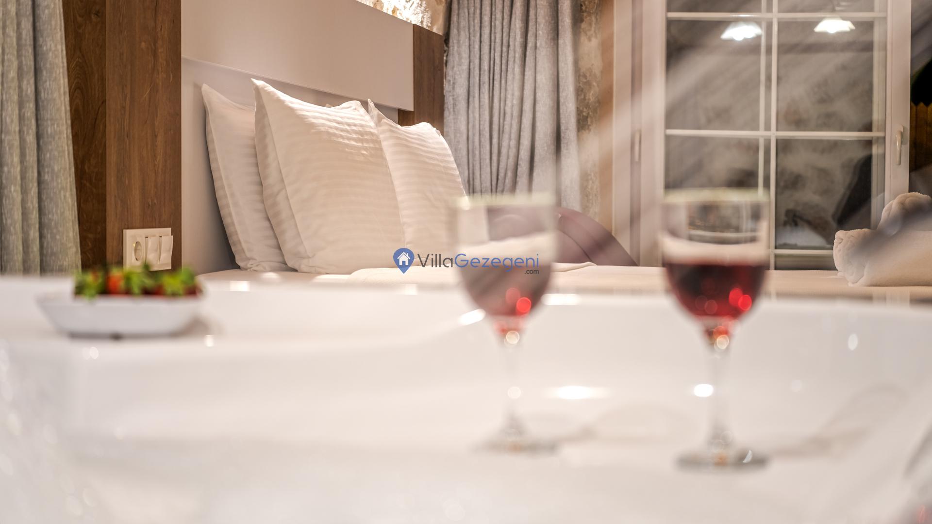Kaş Bayındır'da bulunan 2 yatak odalı deniz manzaralı ve jakuzili kiralık balayı villası
