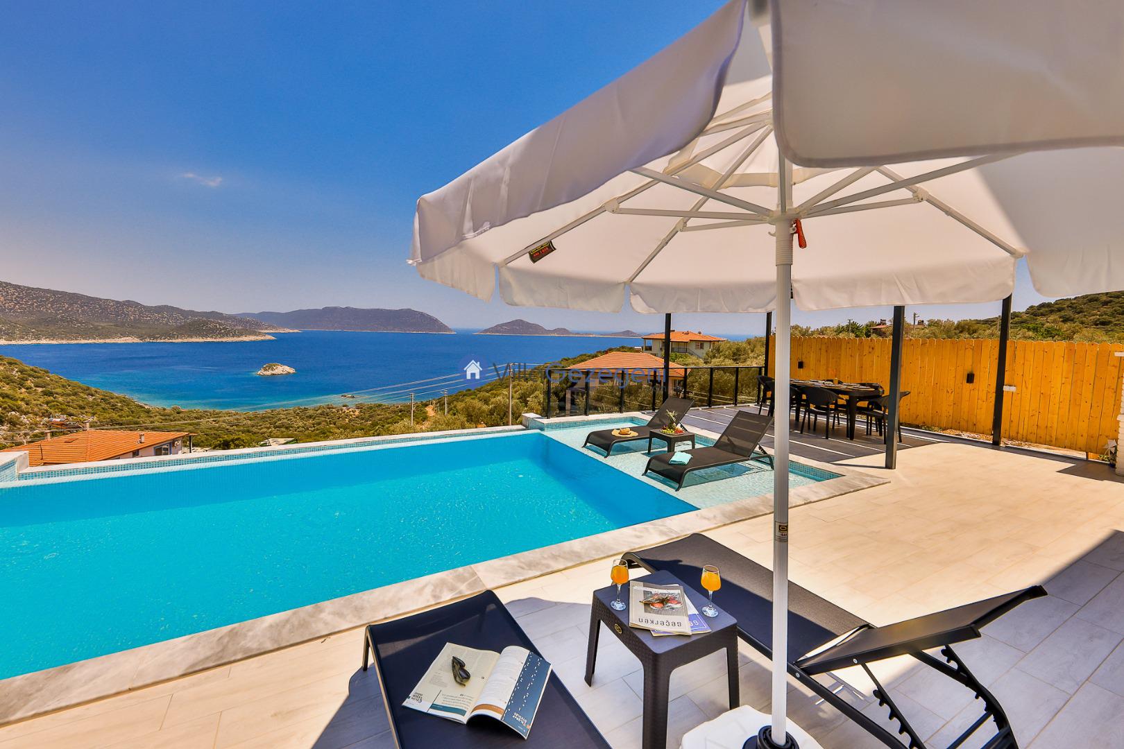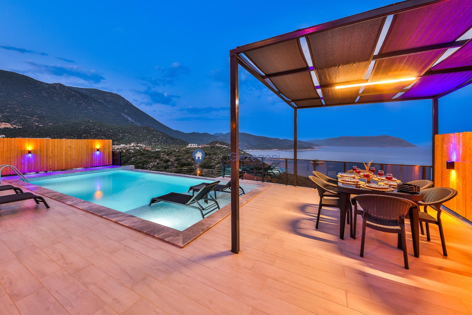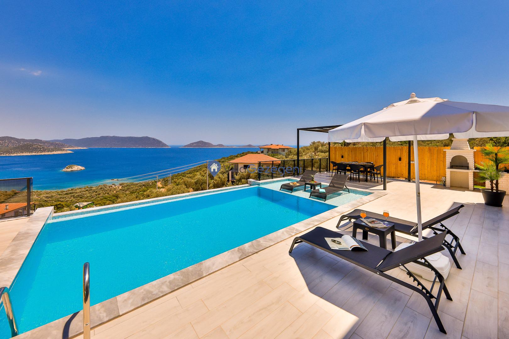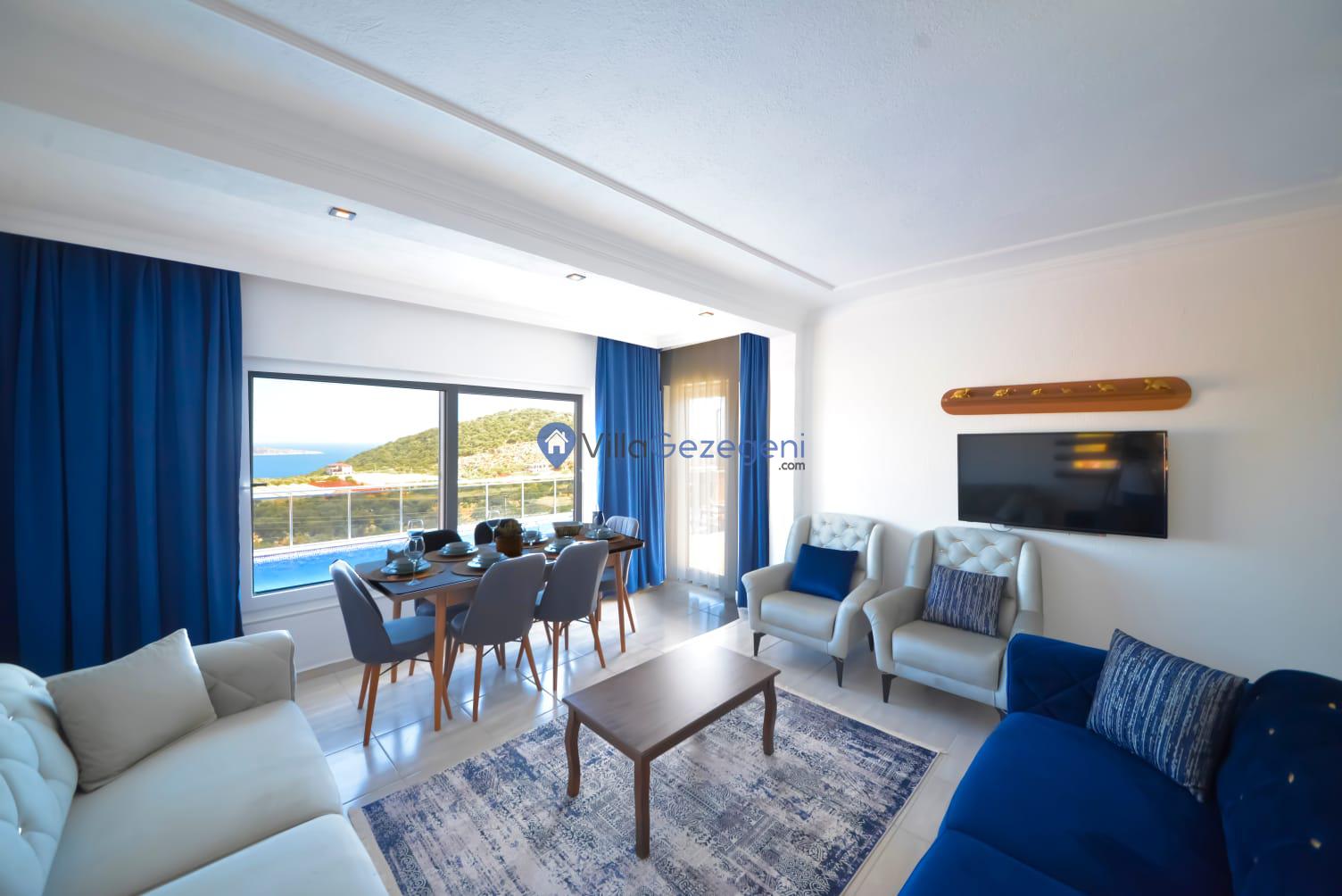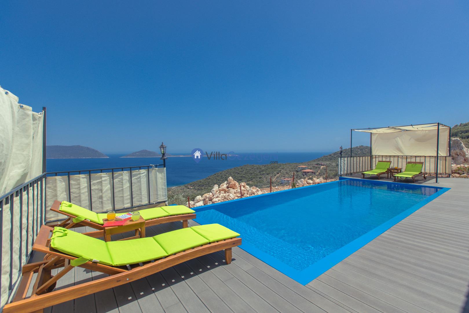 Kaş Bayındır Bölgesinde yer alan 3 yatak odalı 6 kişilik deniz manzaralı kiralık villa
