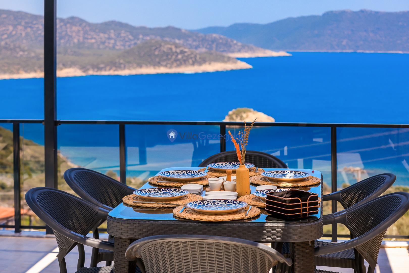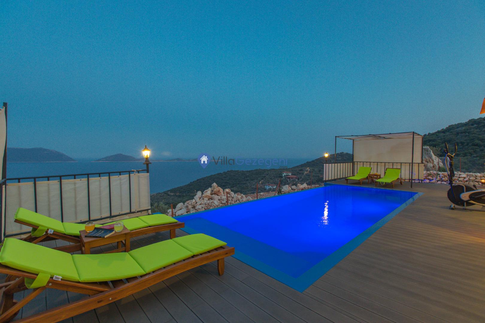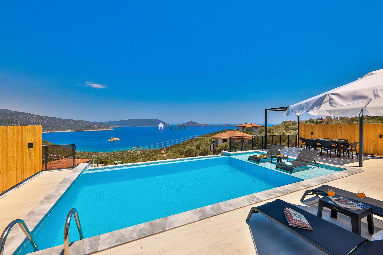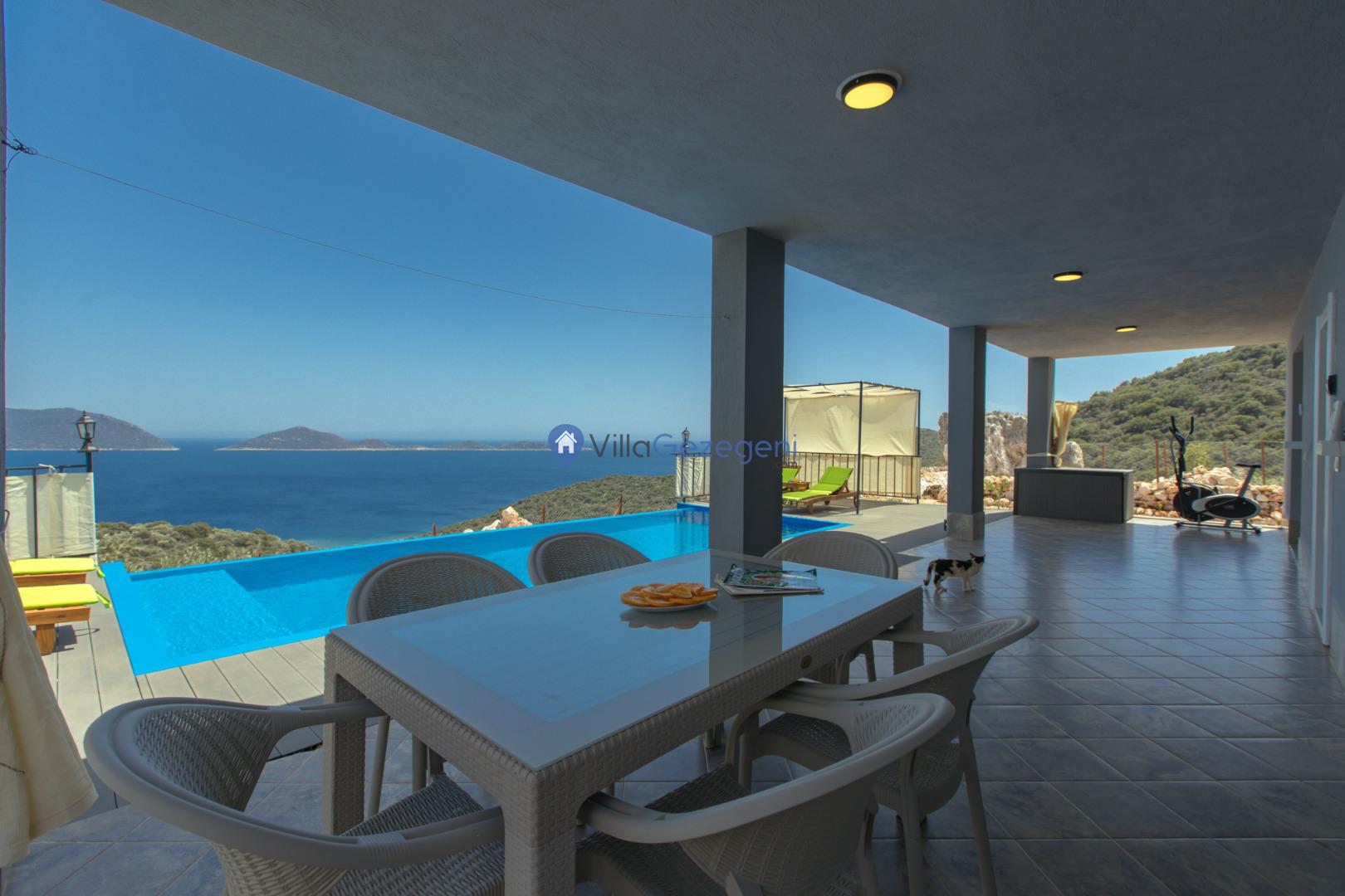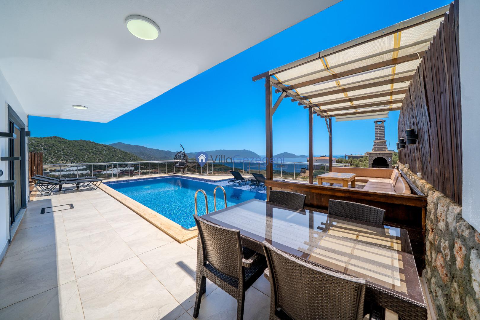 Kaş Bayındır Bölgesinde yer alan 3 yatak odalı 6 kişilik deniz manzaralı kiralık villa