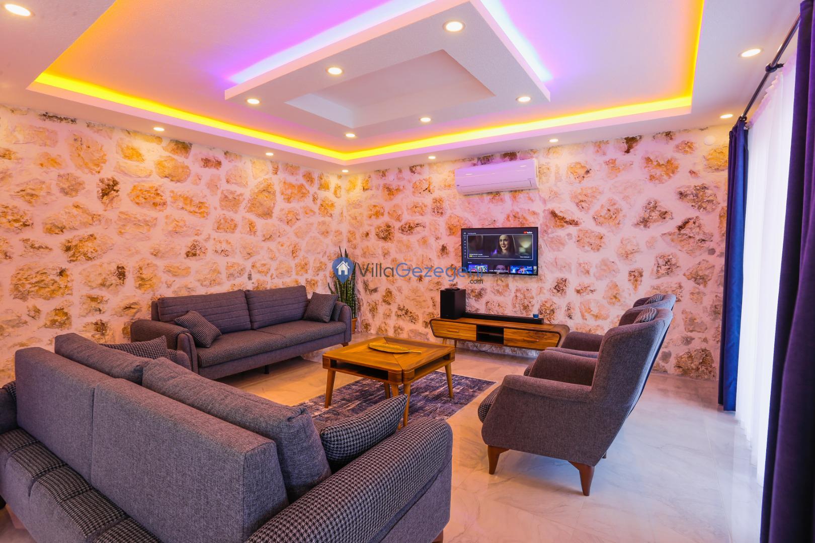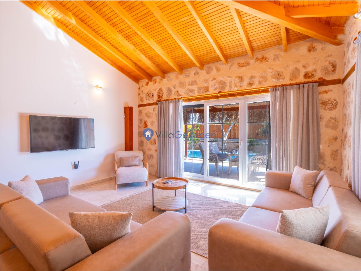 Kaş Bayındır mevkiinde bulunan 3 yatak odalı, 6 kişilik kiralık villa