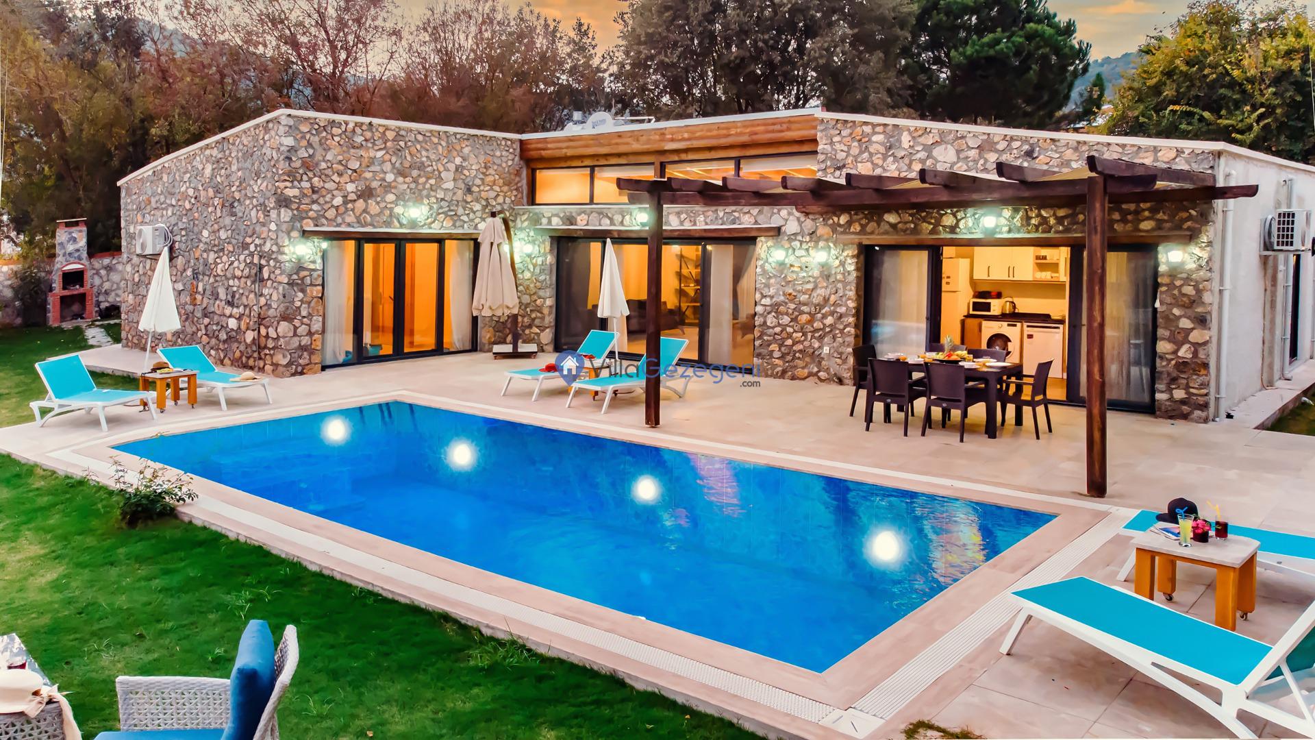 Muğla/Fethiye/Kayaköy bölgesinde yer alan 4 yatak odalı 8 kişi kapasiteli tatil villasıdır.