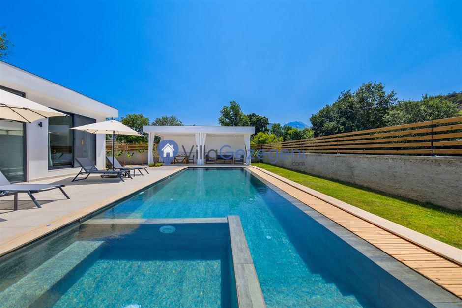 Villa İz Kayaköy, Fethiye’nin eşsiz doğasında özel havuzlu, jakuzili ve modern tasarımlı lüks tatil villası. Huzurlu bir tatil için hemen rezervasyon yapın! 🌿🏡💙