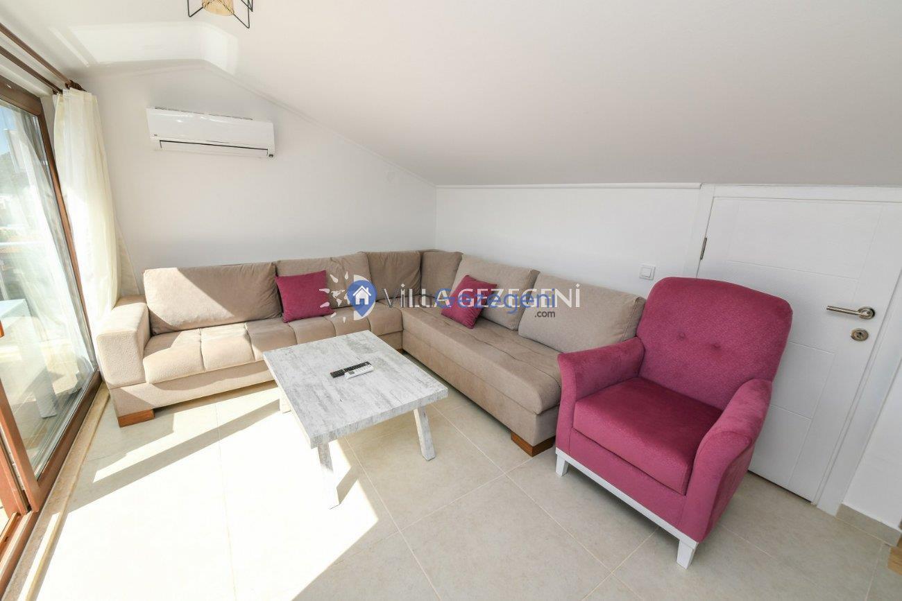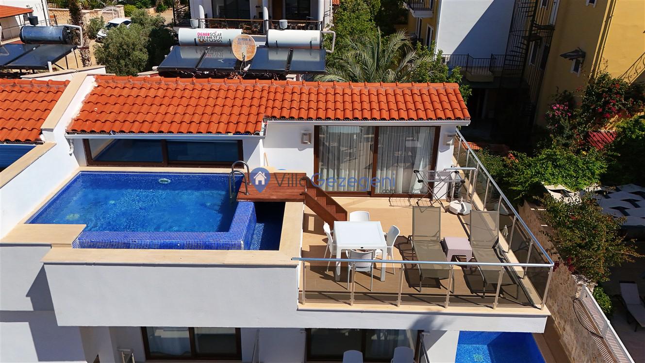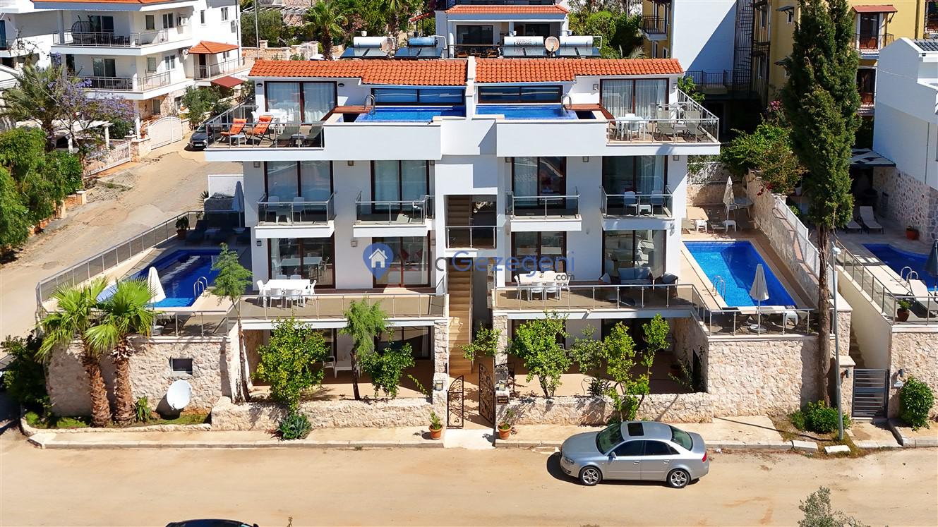 Kalkan şehir merkezine yakın konumda yer alan toplam 4 kişilik 2 yatak odalı havuzlu kiralık yazlık apart.