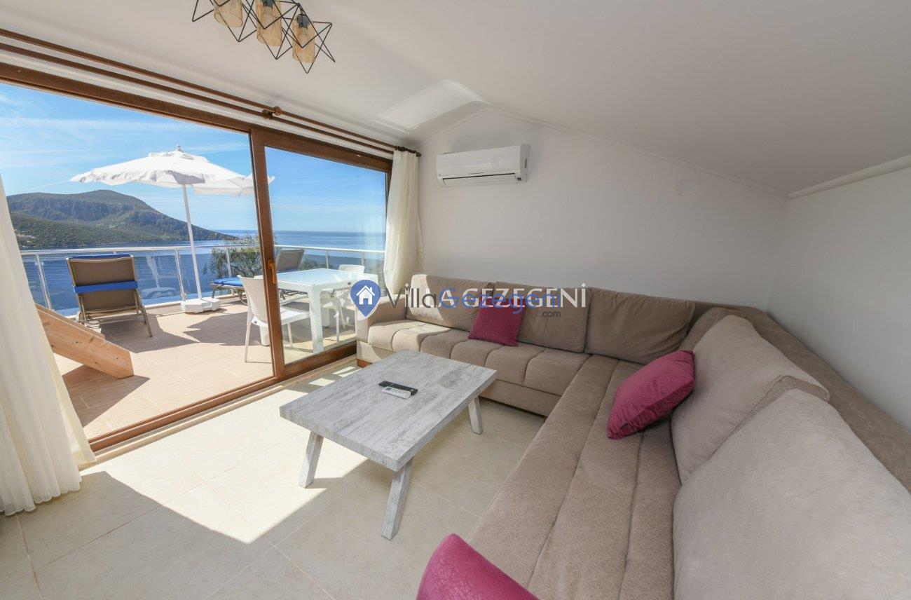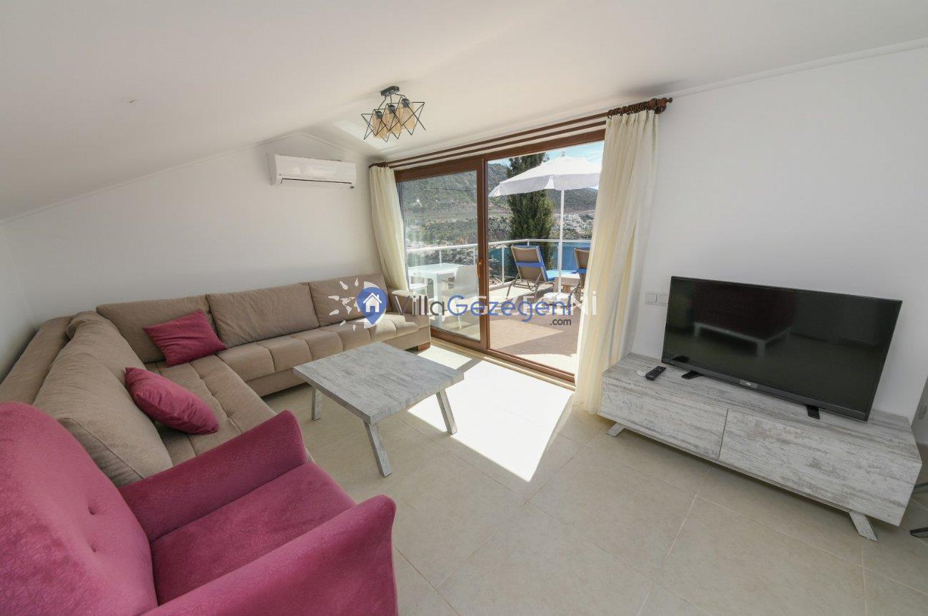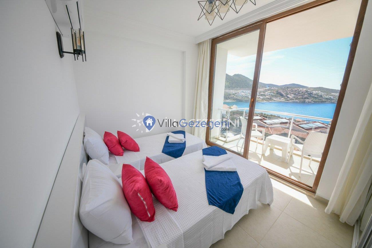 Suit Karmen, Kalkan Ortaalan'da 6 kişilik, markete ve restauranta yakın, deniz manzaralı, kiralık geniş aile ve arkadaş grupları için kiralık apart