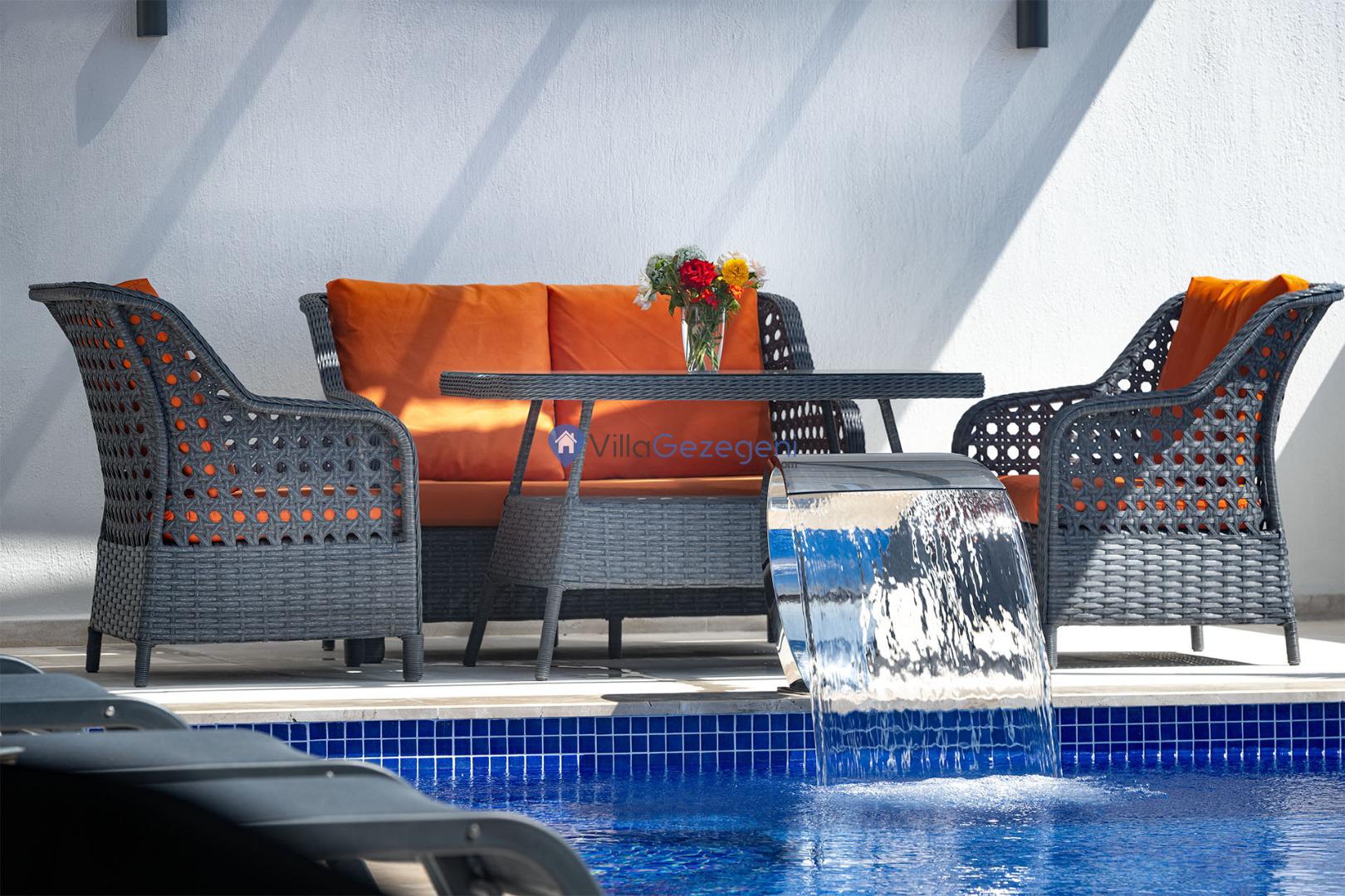 Villamızın genel konsept ve özelliklerinden tekrar bahsedecek olursak; villamızın 1 adet müstakil özel havuzu bulunmaktadır. Ortalama bir bahçeye sahip olan villamız rahatlığı ön planda tutan 2 adet yatak odası, 3 yatak, 2 banyo, hareket alanı geniş bir mutfak ve 4 kişinin geniş aralıklarla rahatlıkla oturabileceği koltuklara sahip salonu bulunmaktadır.