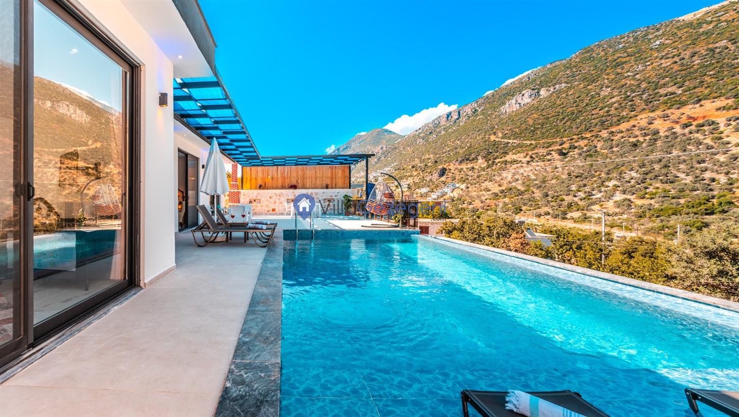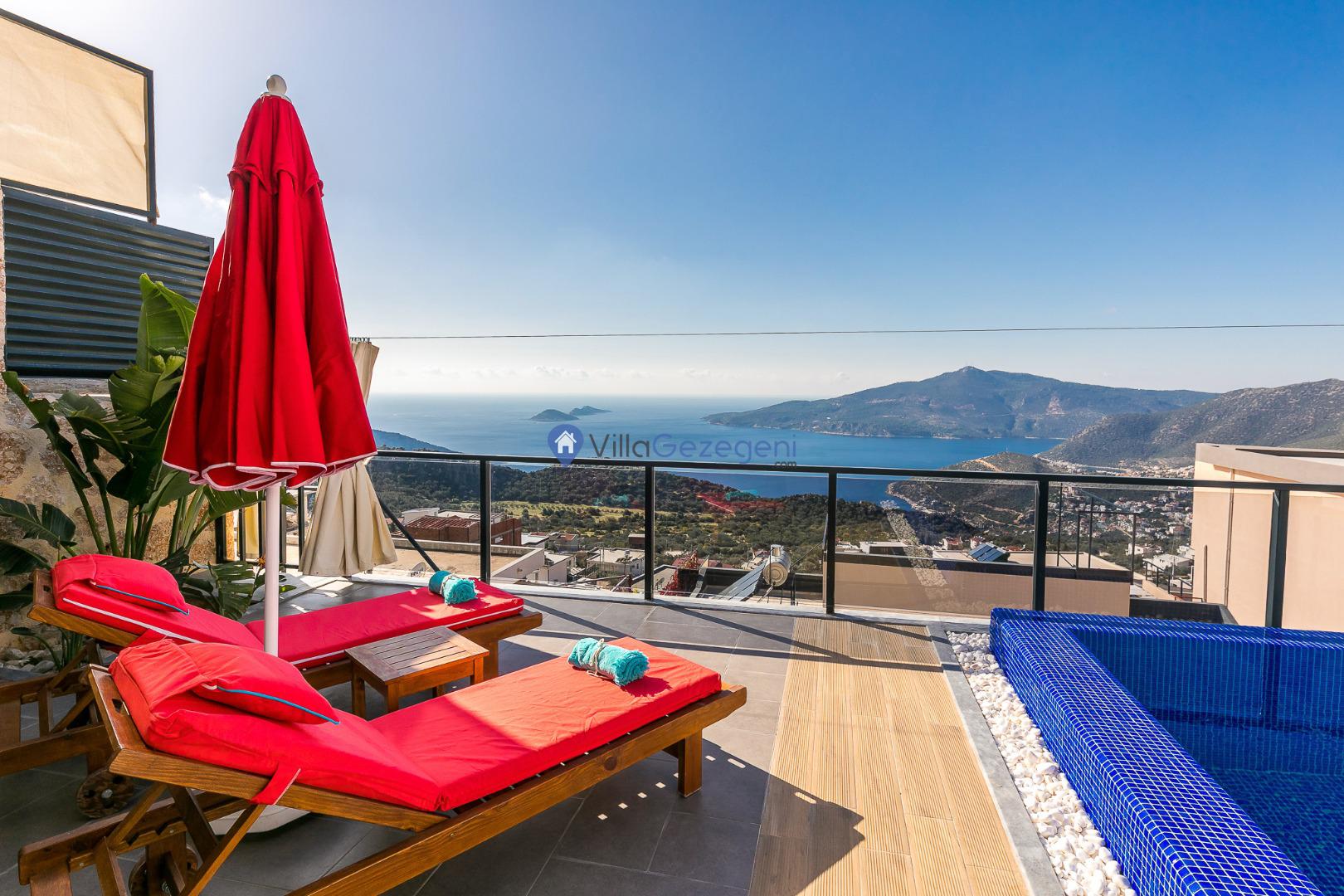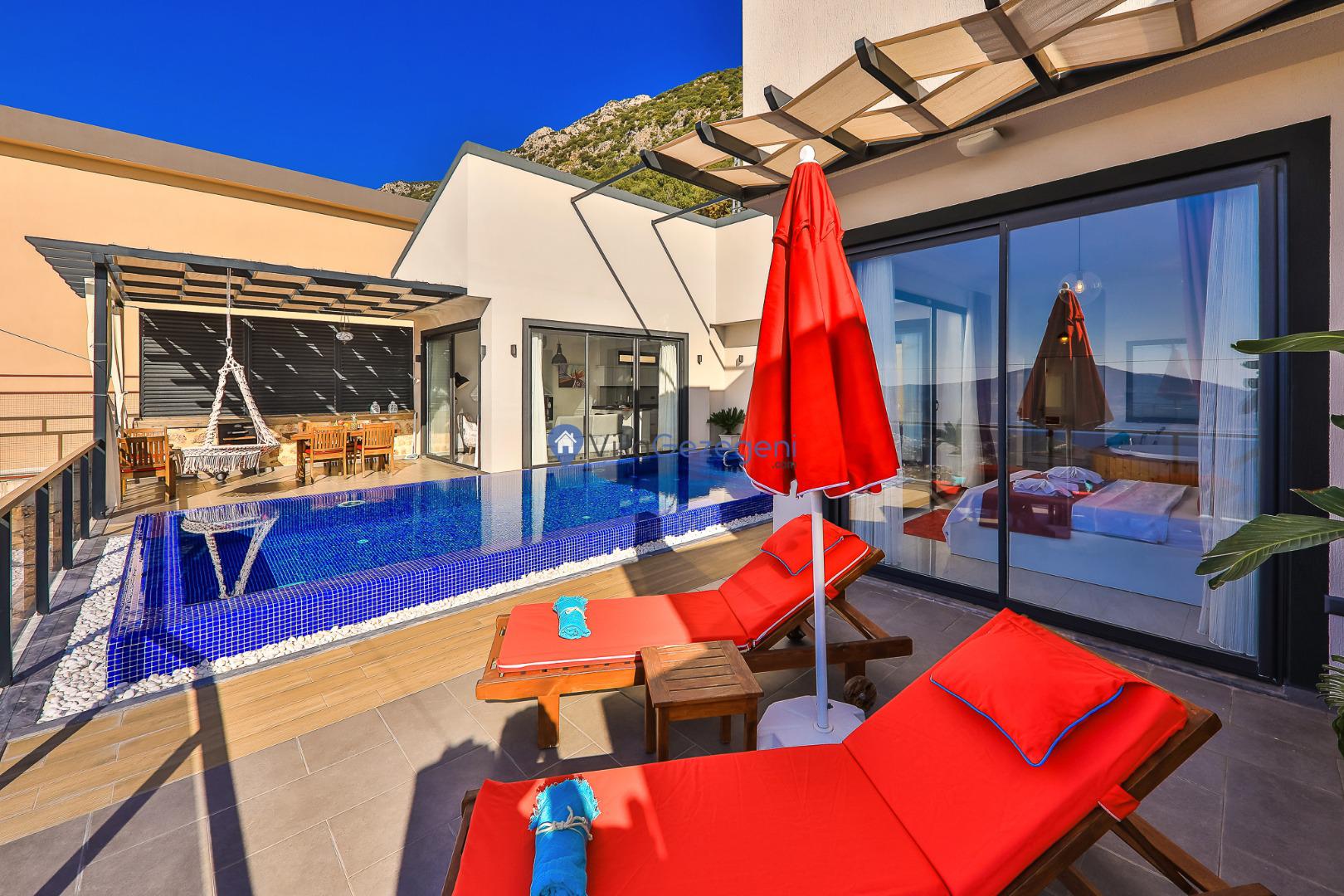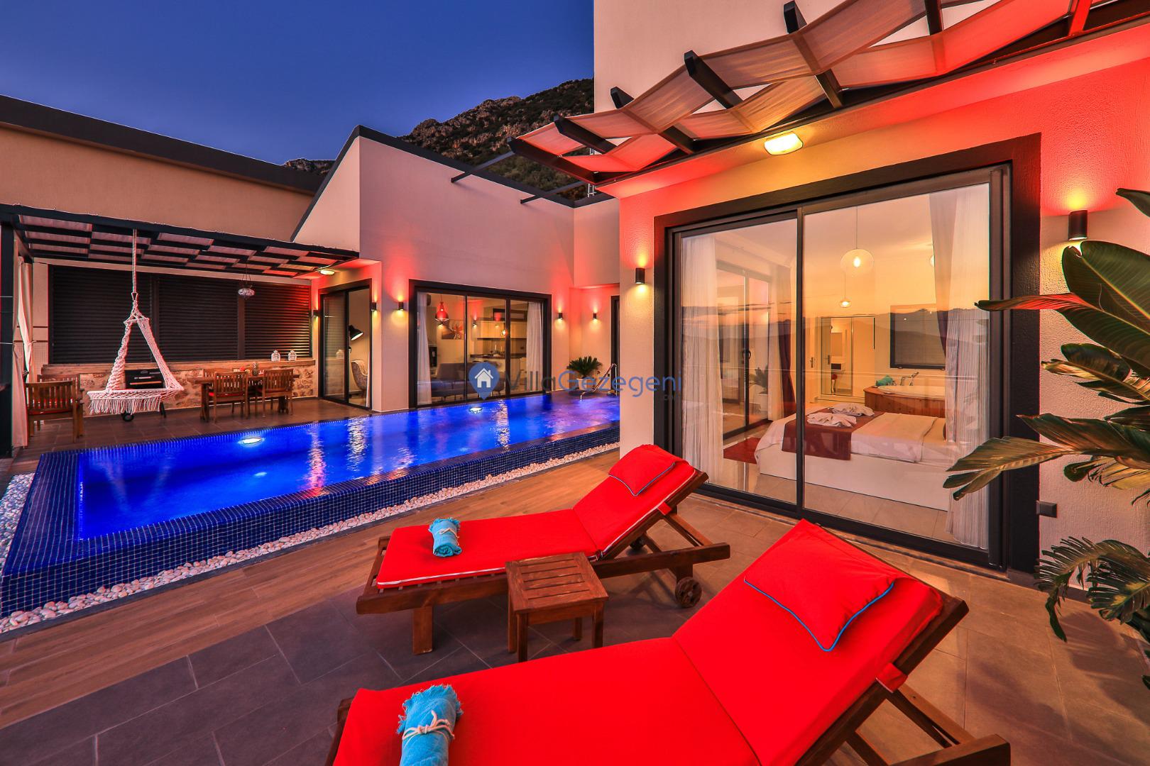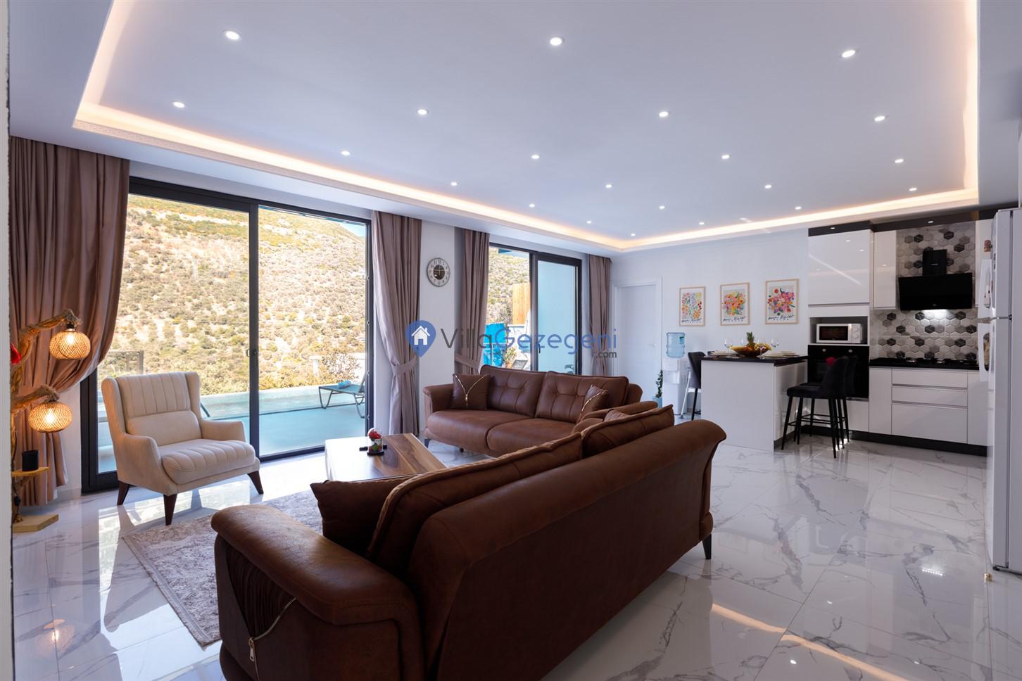 Kalkan Kördere mevkiinde deniz manzaralı muhafazakar aileler için ideal 2 yatak odalı yazlık kiralık villa