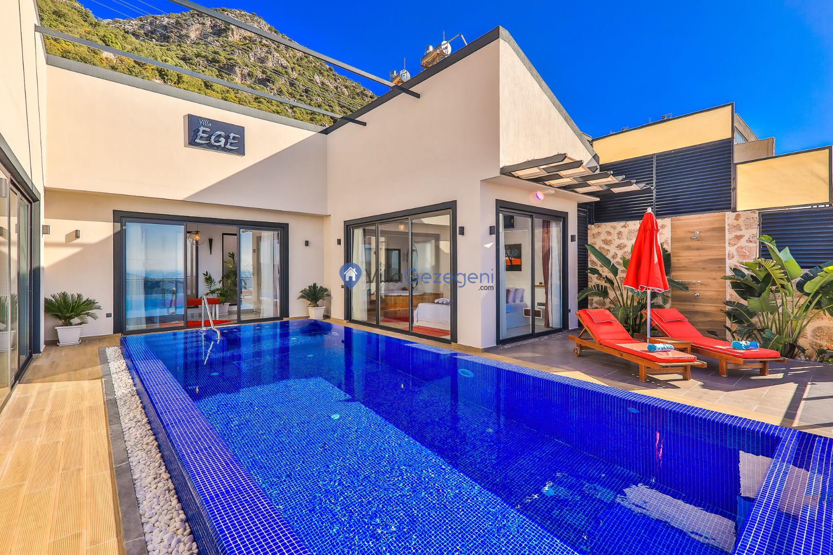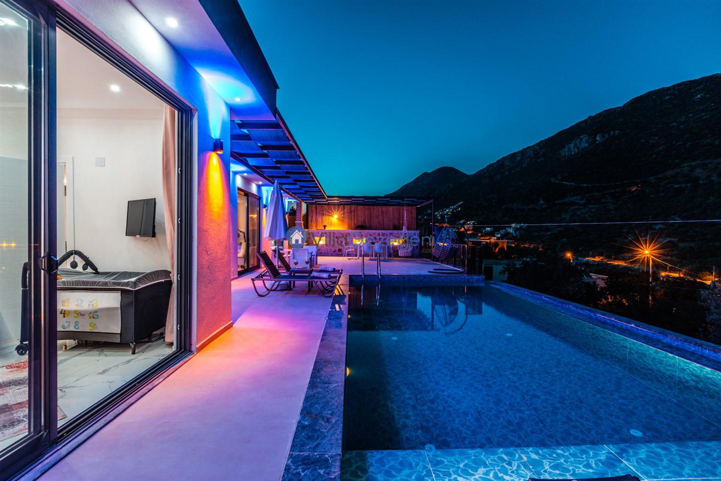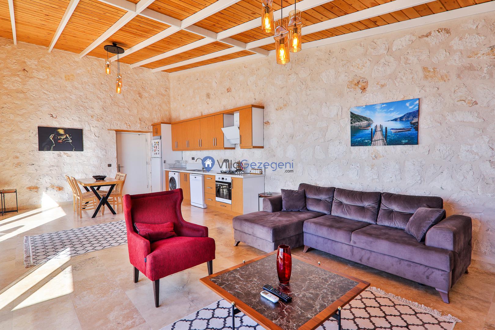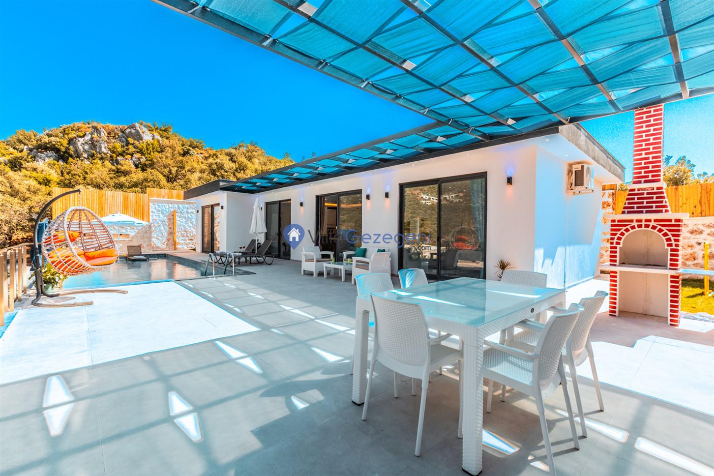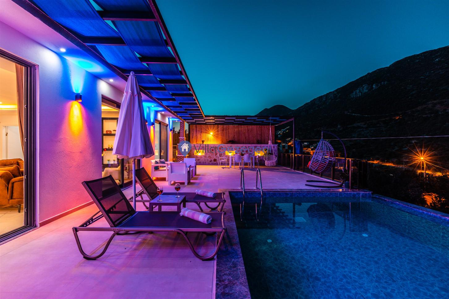Kalkan Kördere mevkiinde deniz manzaralı muhafazakar aileler için ideal 2 yatak odalı yazlık kiralık villa