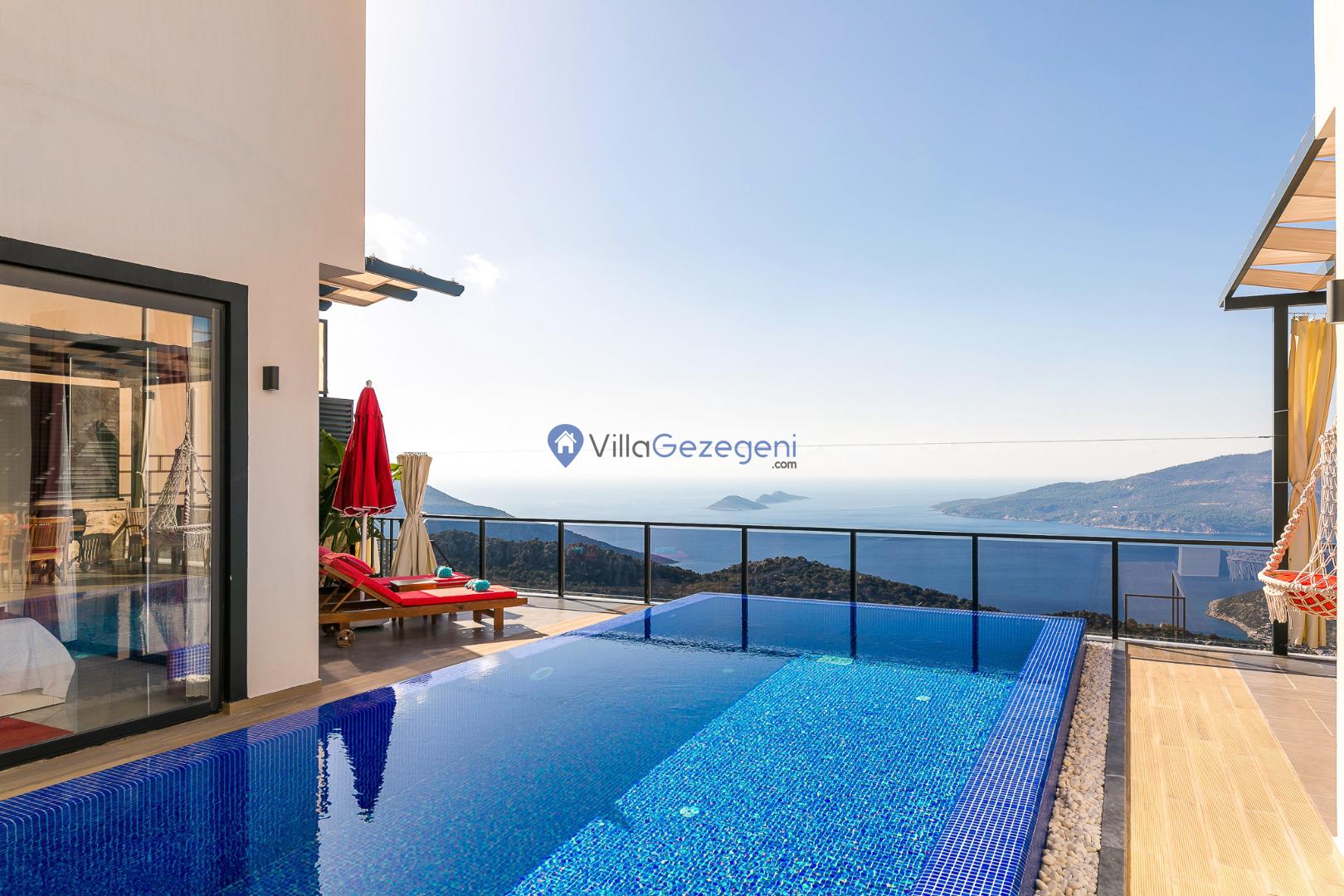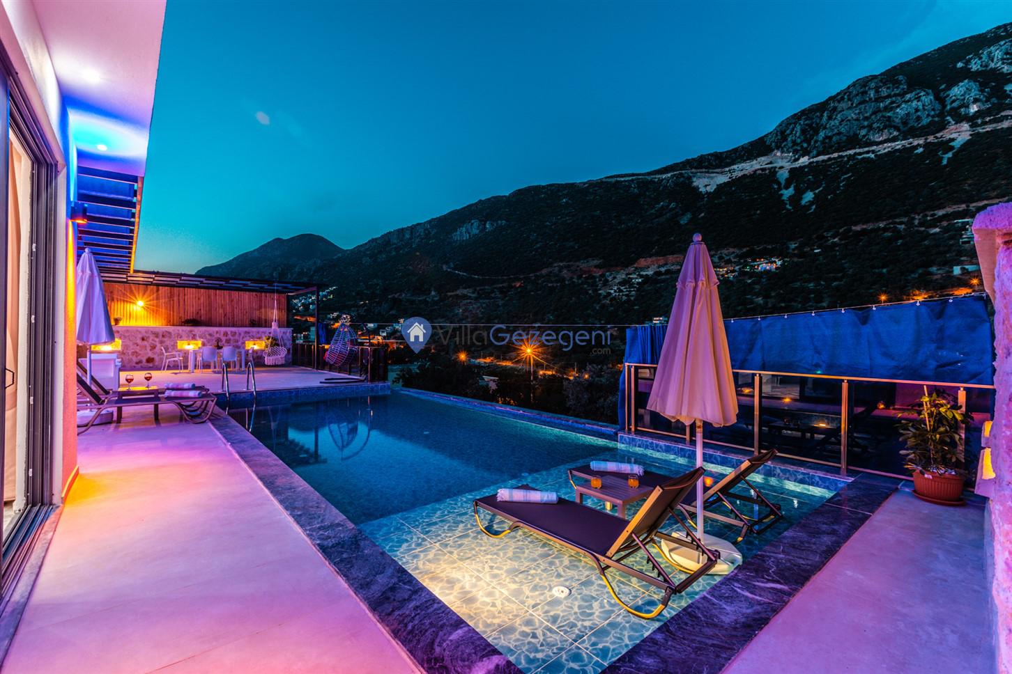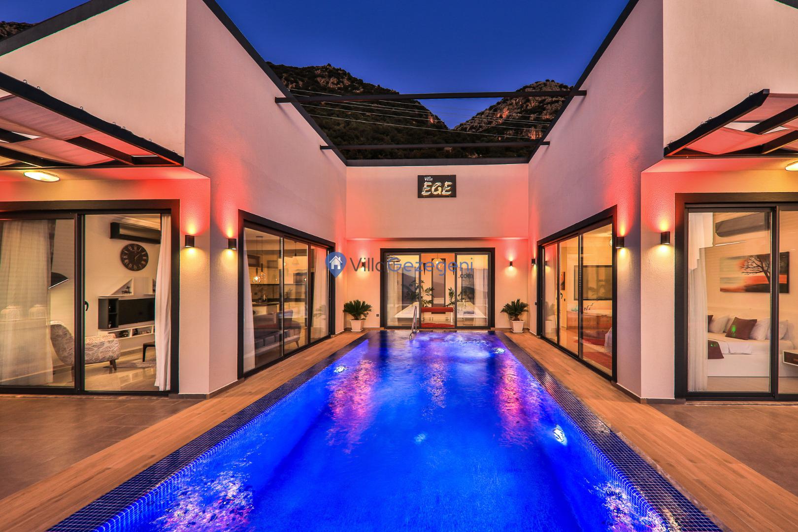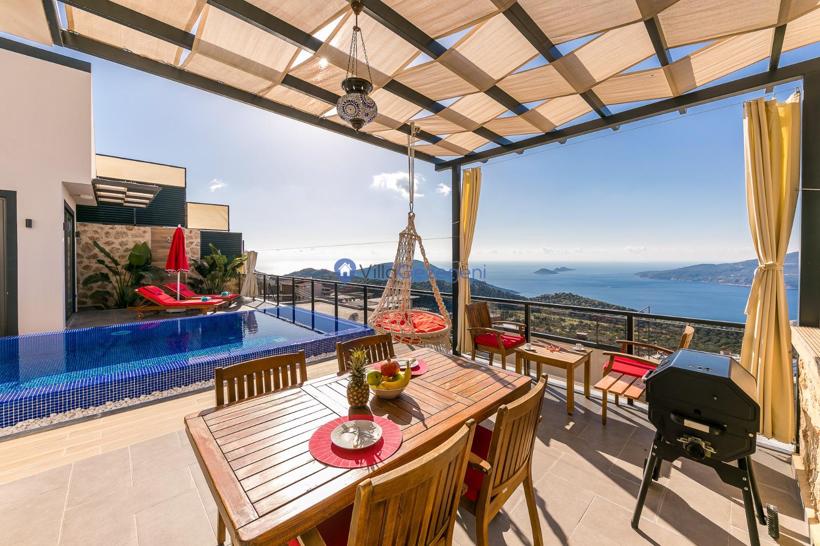 Kalkan Kördere mevkiinde deniz manzaralı muhafazakar aileler için ideal 2 yatak odalı yazlık kiralık villa