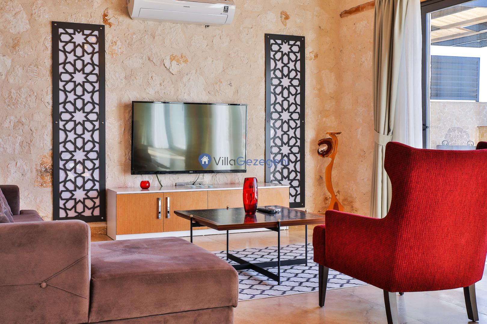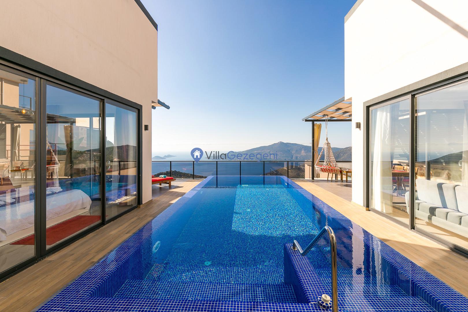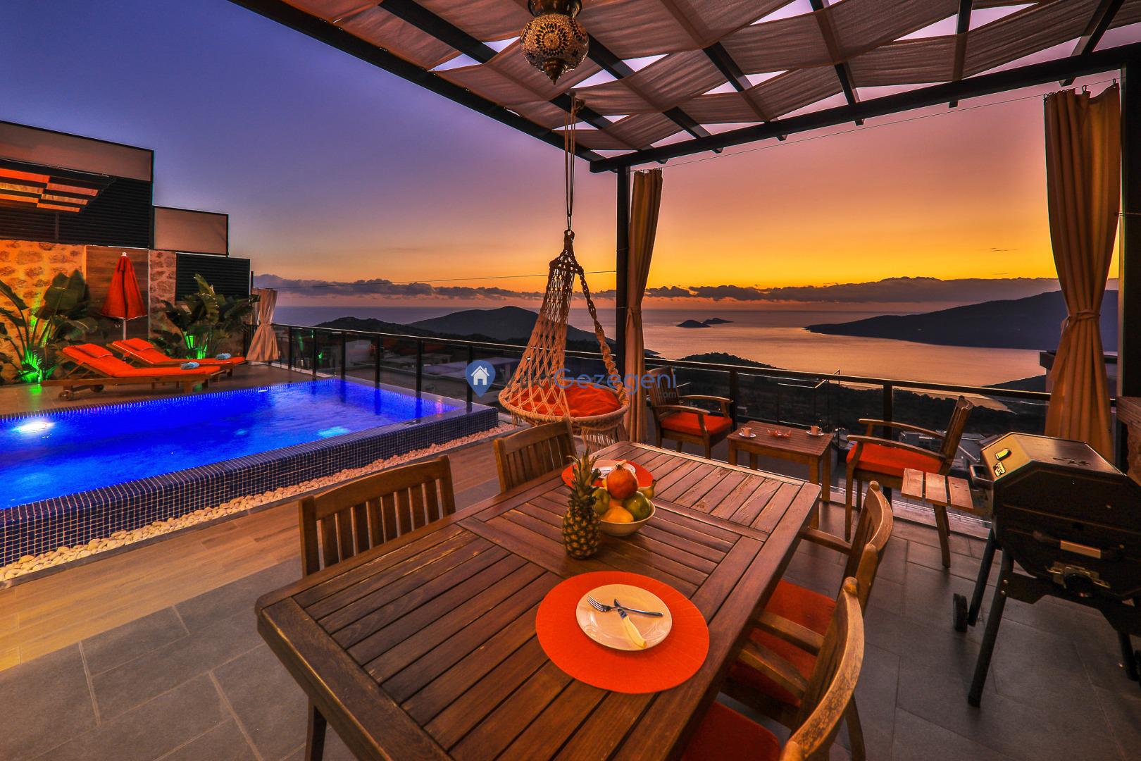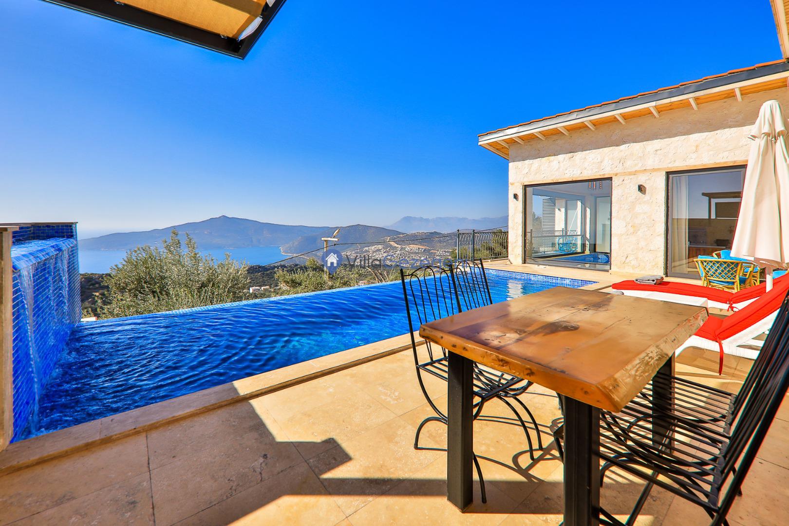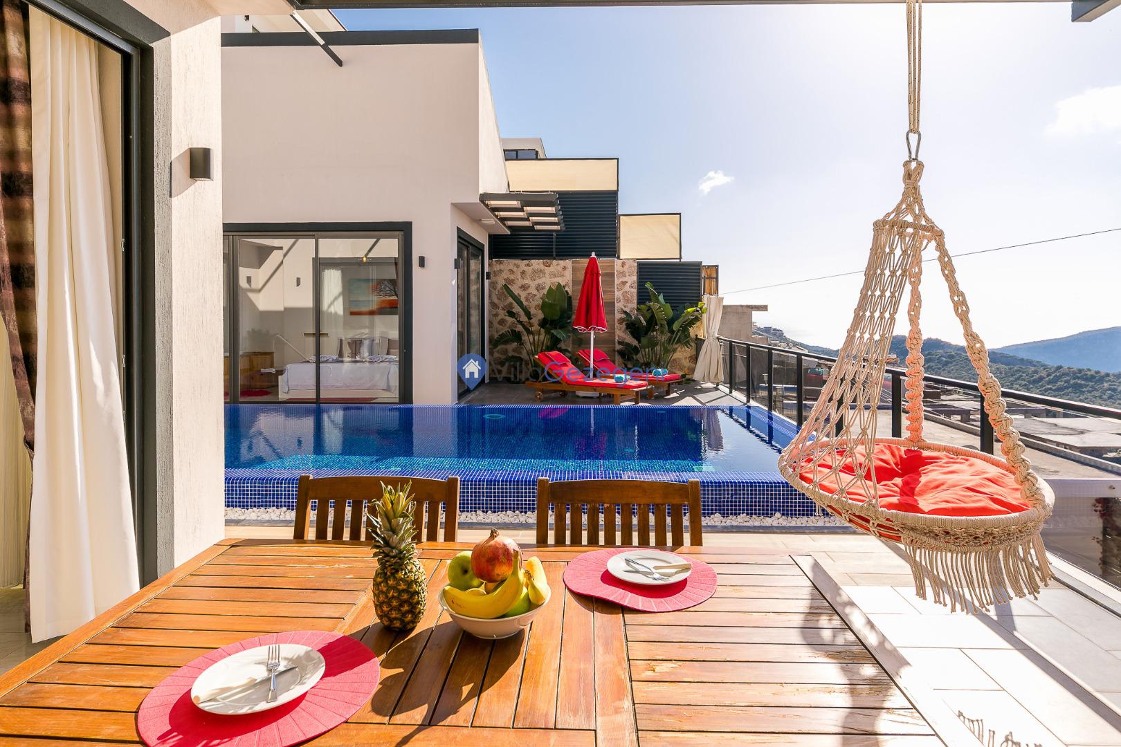 Kalkan Kördere mevkiinde deniz manzaralı muhafazakar aileler için ideal 2 yatak odalı yazlık kiralık villa