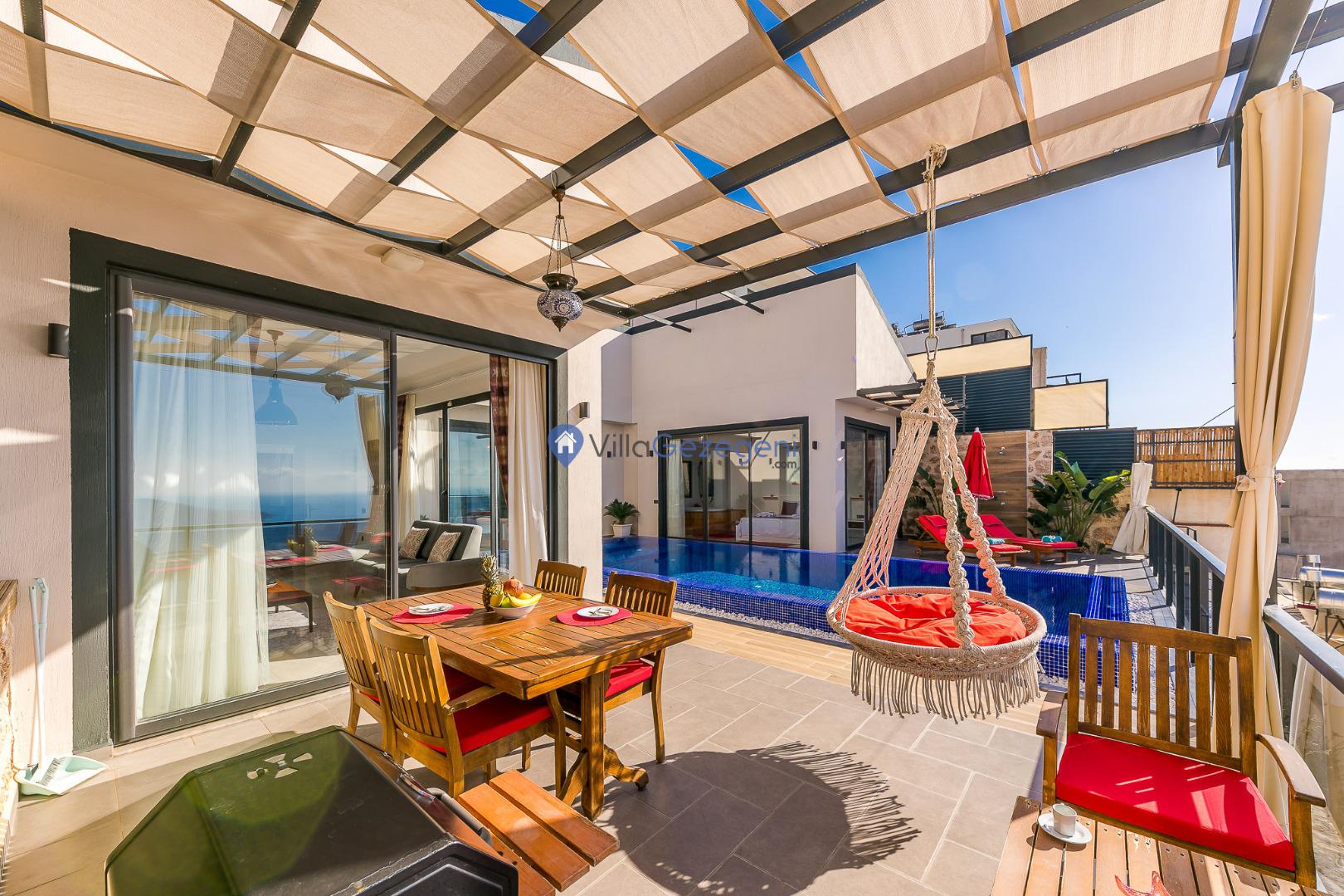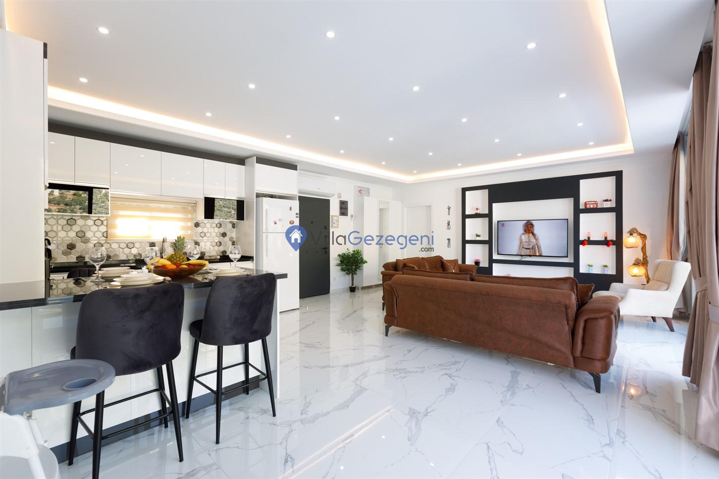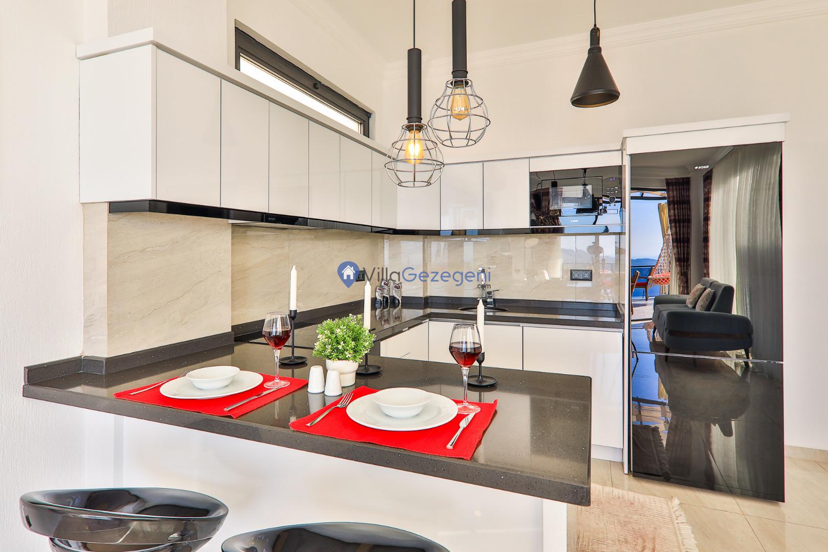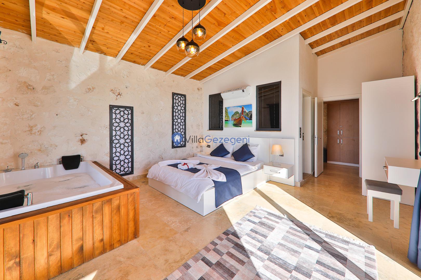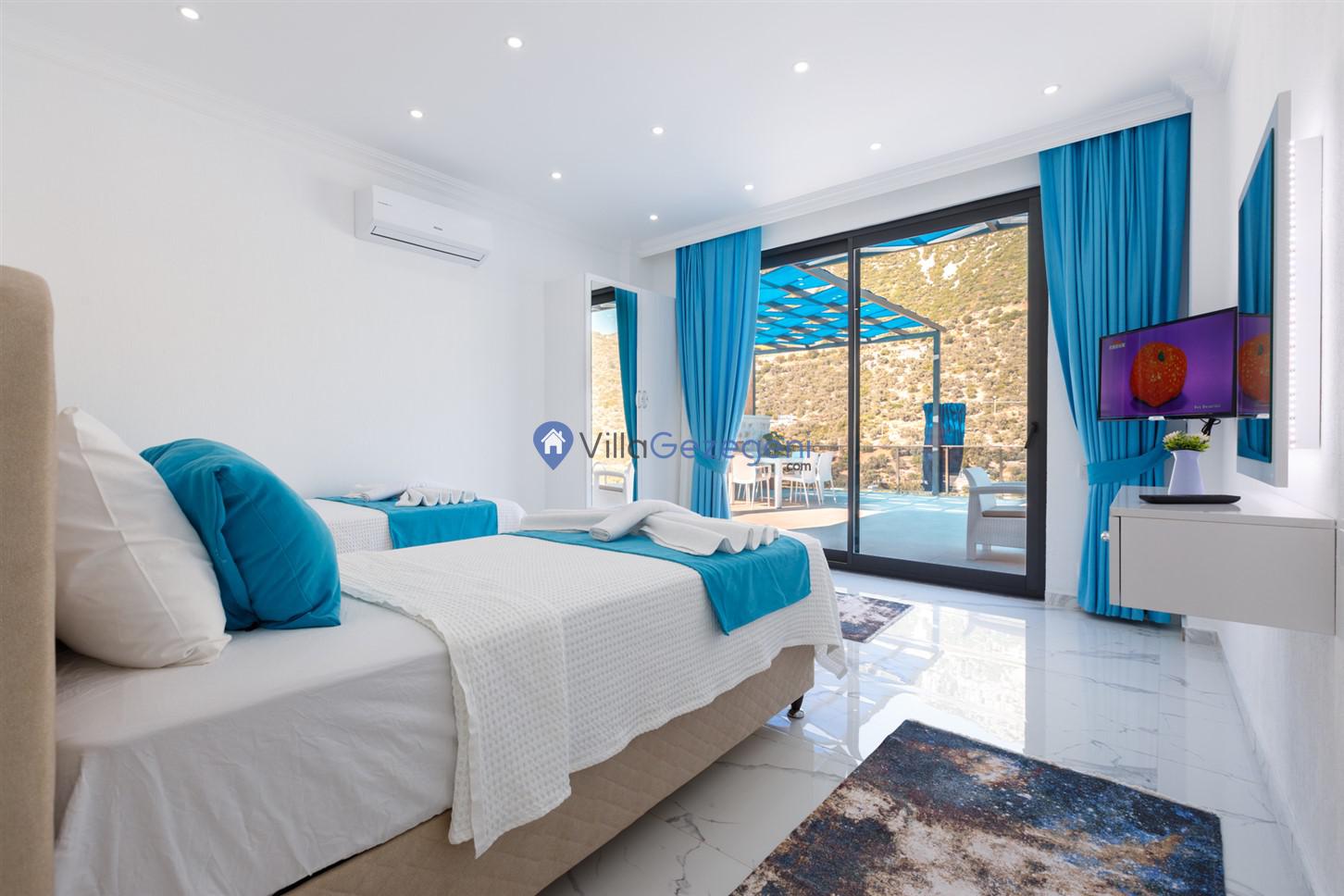 Kalkan Kördere mevkiinde deniz manzaralı muhafazakar aileler için ideal 2 yatak odalı yazlık kiralık villa