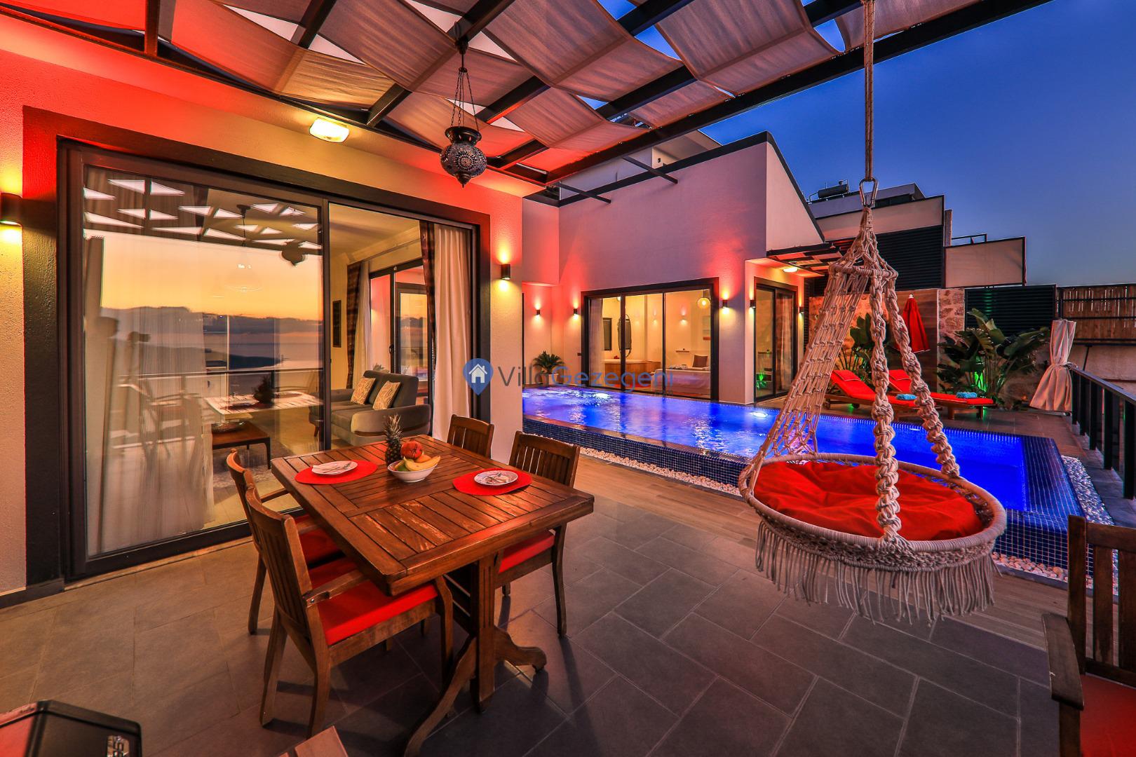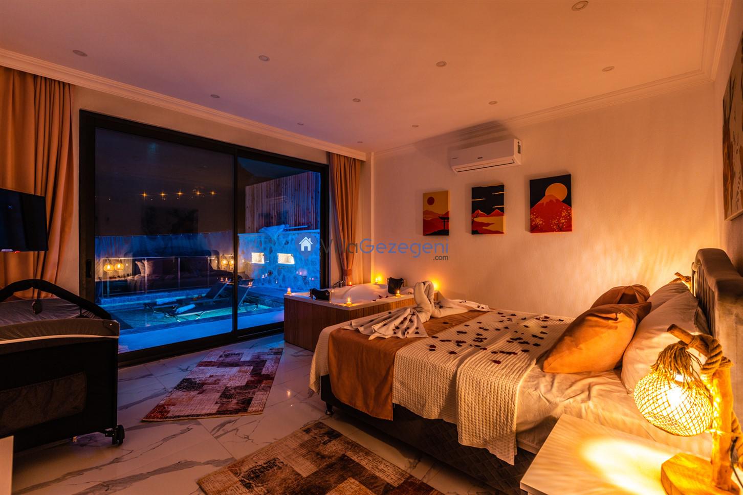 Hem doğa ile iç içe hem de özel bir atmosfer sunarak, balayı çiftlerinin keyifle vakit geçirebileceği bir ortam sağlar. İster deniz manzarasına karşı romantik akşamlar, ister huzurlu bir sabah kahvaltısı olsun, bu villa tam anlamıyla bir kaçış noktasıdır.Villanın deniz manzarası, her anı özel kılarak, tatilinize görsel bir zenginlik katacaktır. Geniş pencere ya da teraslardan denizin eşsiz güzelliğini izlemek oldukça huzur verici olacaktır.Dış havuz, yıl boyunca rahatça kullanılabilir. Özellikle soğuk havalarda bile ısınan suyla konforlu bir yüzme deneyimi sunar. Bu, yaz-kış tatil yapmayı sevenler için büyük bir avantajdır.Villanın merkezi konumu, yakın çevredeki popüler mekanlara kolayca ulaşmanıza olanak tanır. Yalnızca doğa ile iç içe olmakla kalmaz, aynı zamanda gezilecek yerlere de erişiminiz oldukça kolaydır.