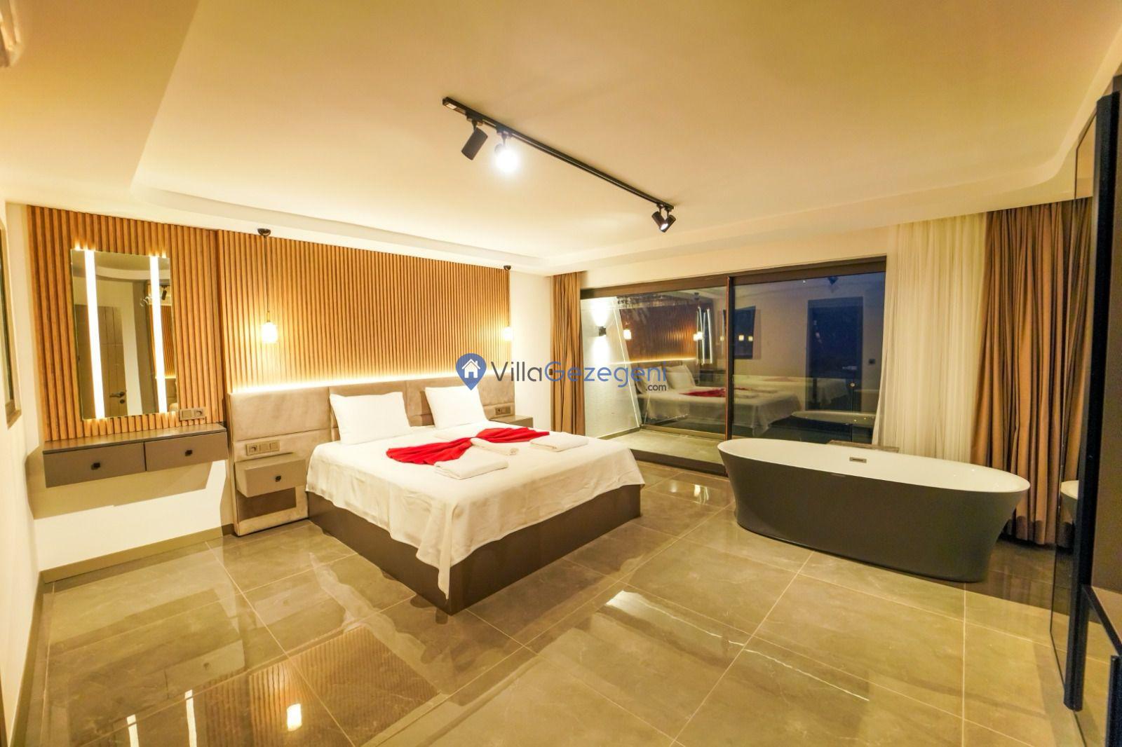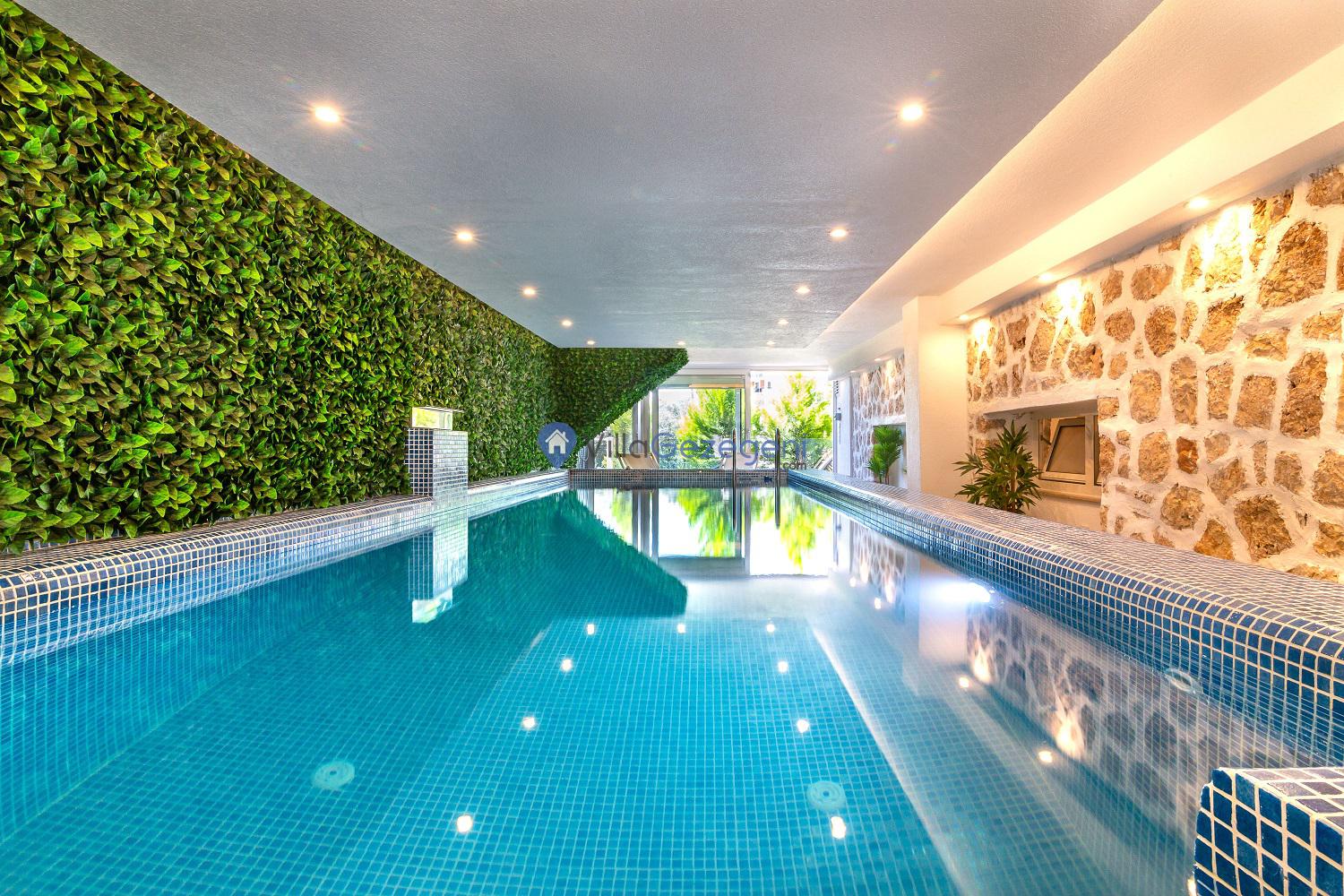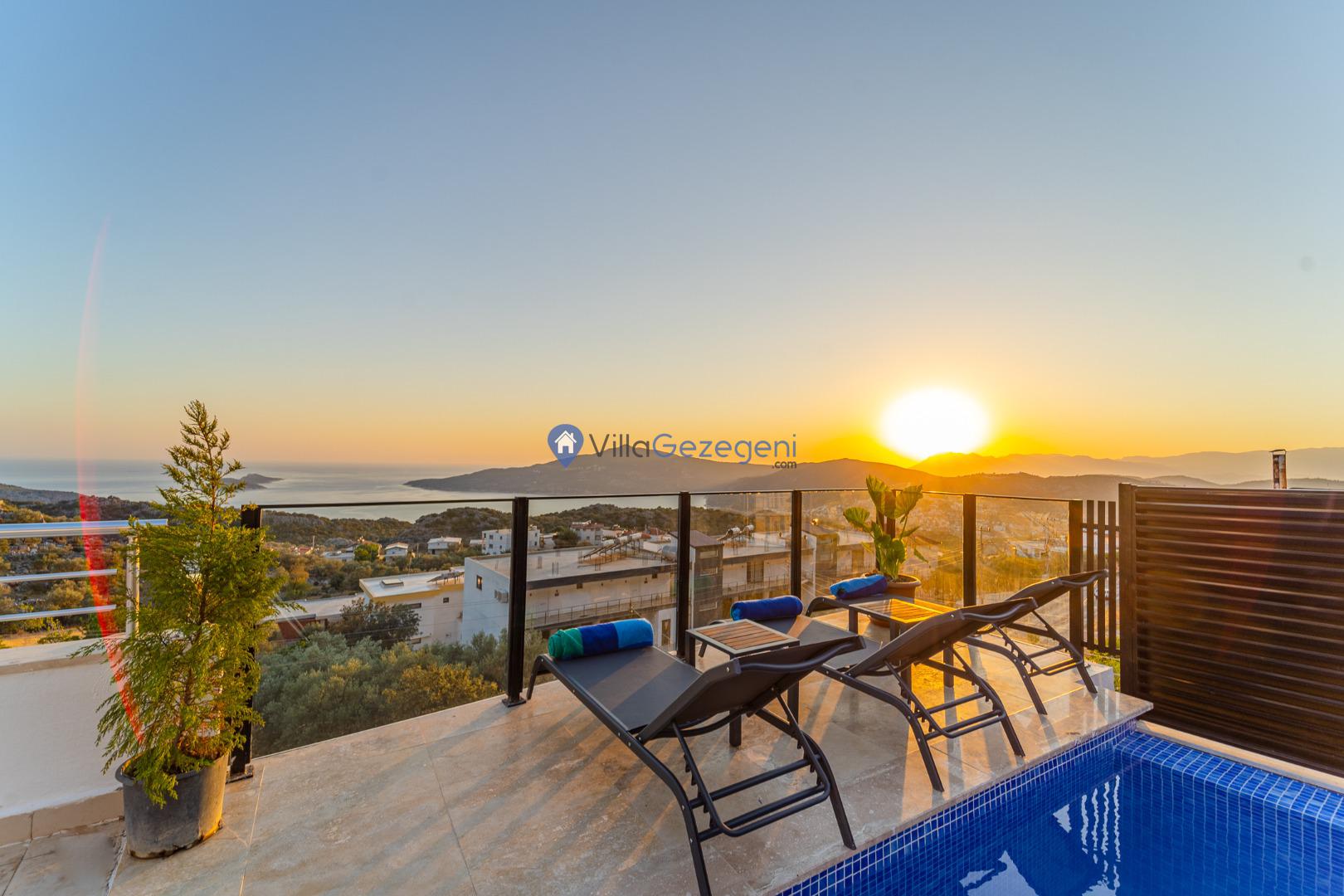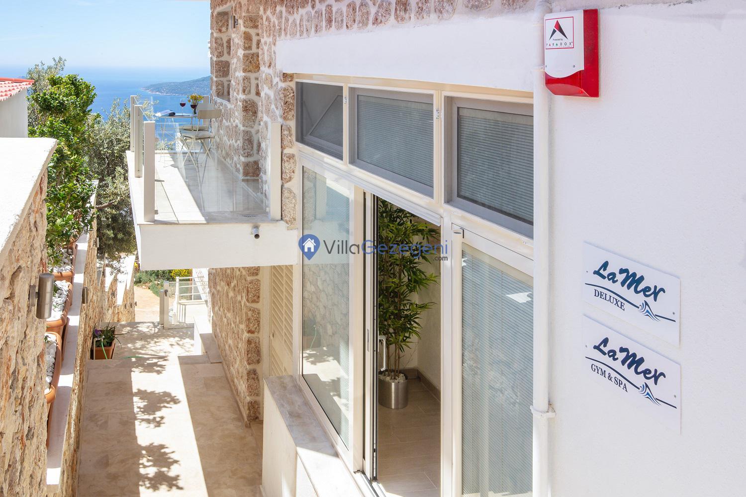 Kalkan/ Kördere mevkiide bulunan 3 yatak odalı 6 kişilik deniz manzaralı sıcak iç havuzlu tatil villasıdır.