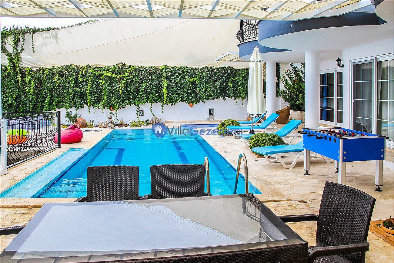 Villamızın genel konsept ve özelliklerinden tekrar bahsedecek olursak; villamızın 1 adet müstakil özel havuzu bulunmaktadır. Ortalama bir bahçeye sahip olan villamız rahatlığı ön planda tutan 2 adet yatak odası, 3 yatak, 2 banyo, hareket alanı geniş bir mutfak ve 4 kişinin geniş aralıklarla rahatlıkla oturabileceği koltuklara sahip salonu bulunmaktadır.
