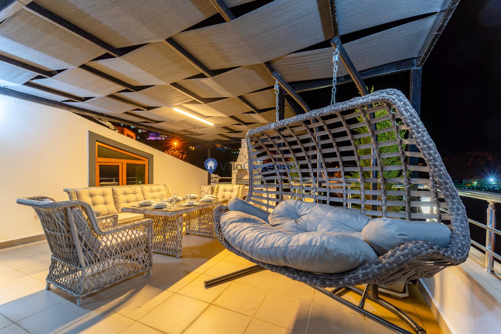 Yemek Masası ve bahçe mobilyaları kullanımınız için hazır bulunmaktadır sevdikleriniz ile beraber yemekler yiyip sohbetin dibine vurabilirsiniz. Villanın bahçesindeki salıncak ile keyifli vakitler geçirebilirsiniz.