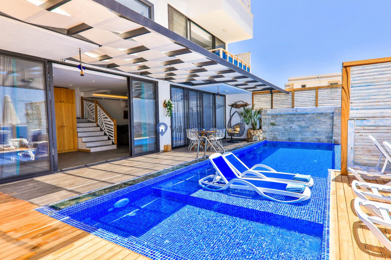 Villa Burcum, tek yatak odalı, markete yakın, havuzu korunaklı, jakuzili, dışarıdan görünmeyen muhafazakar özellikli kiralık balayı villası.