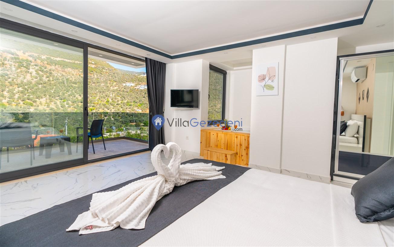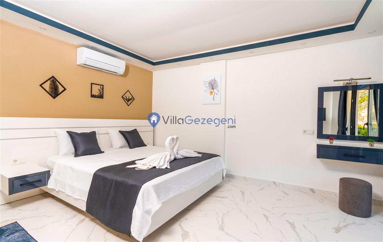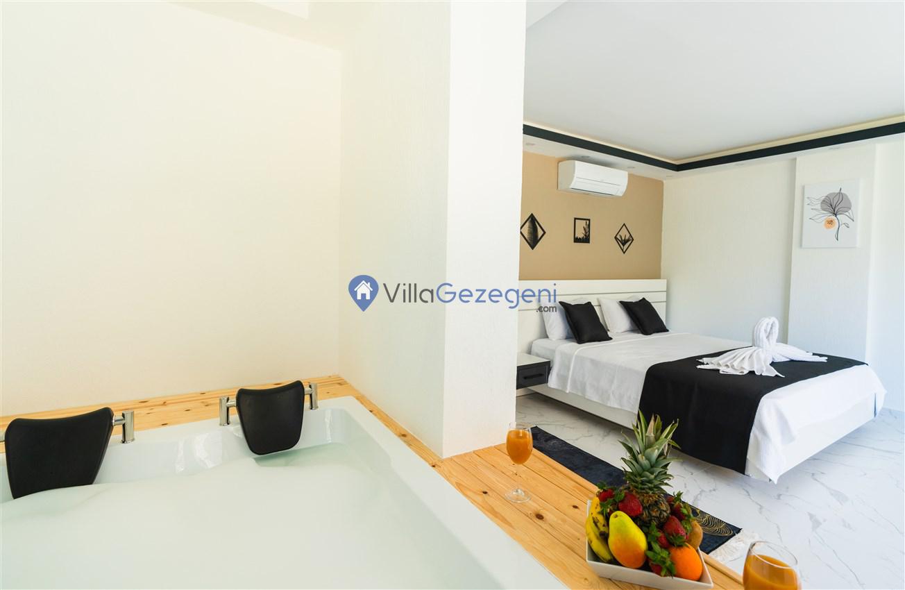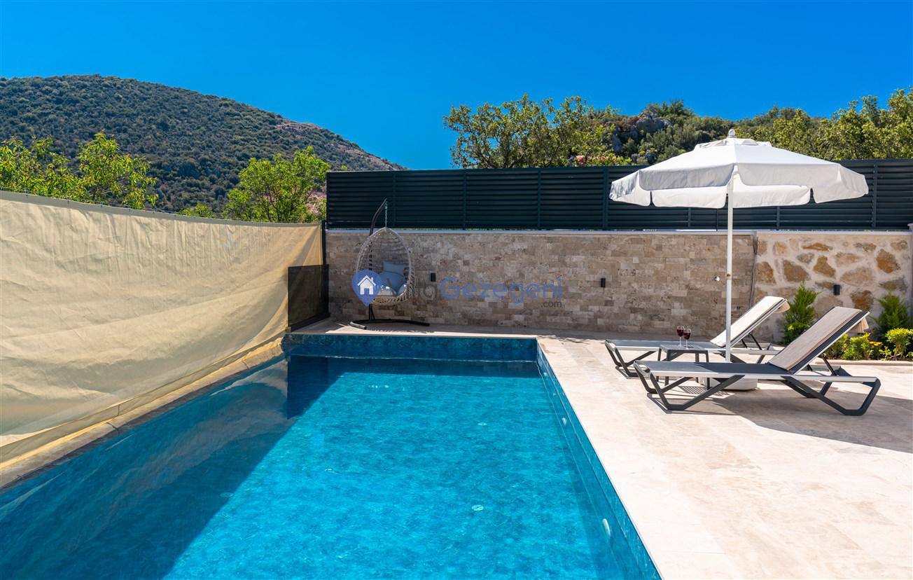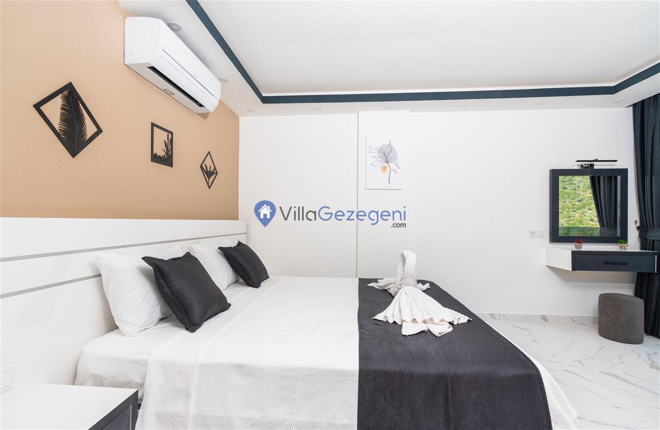 Kaş/Kalkan/Kördere Bölgesinde yer alan tek yatak odalı 2 kişi kapasiteli deniz manzaralı balayı villası.