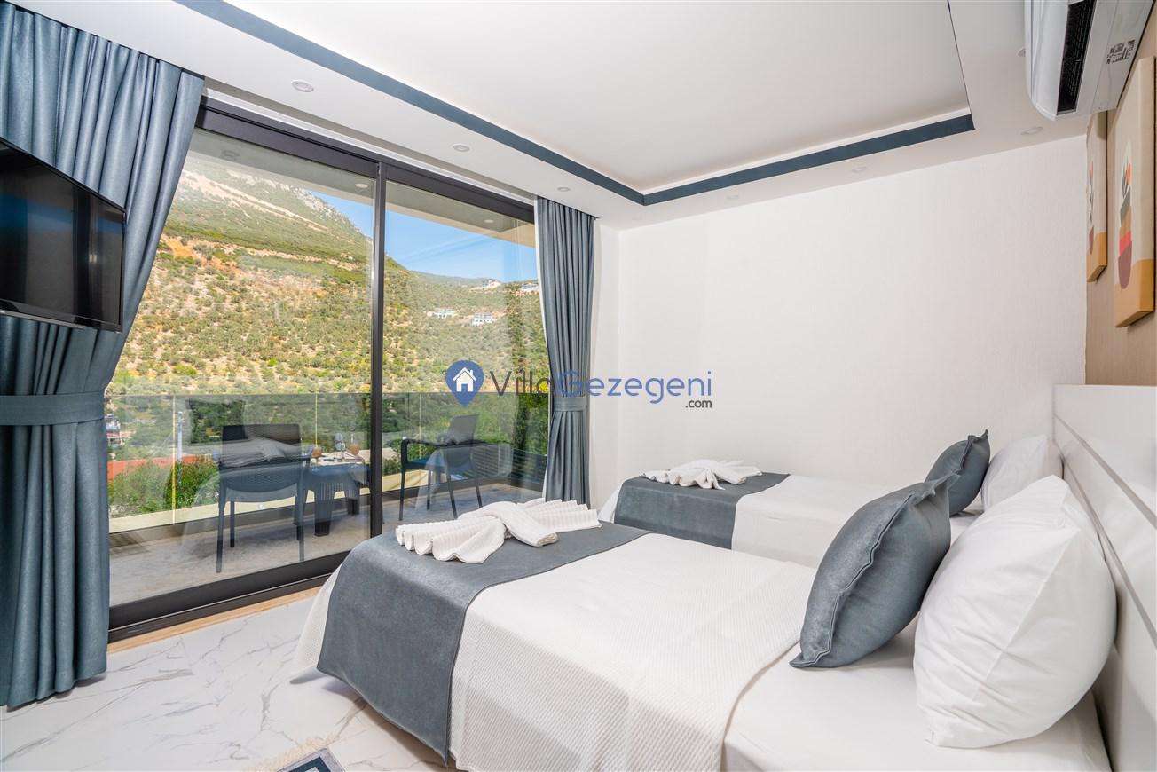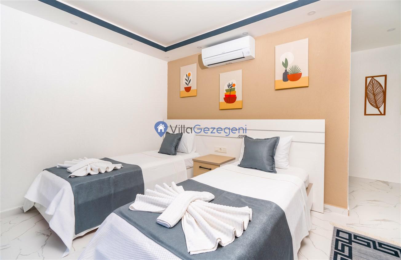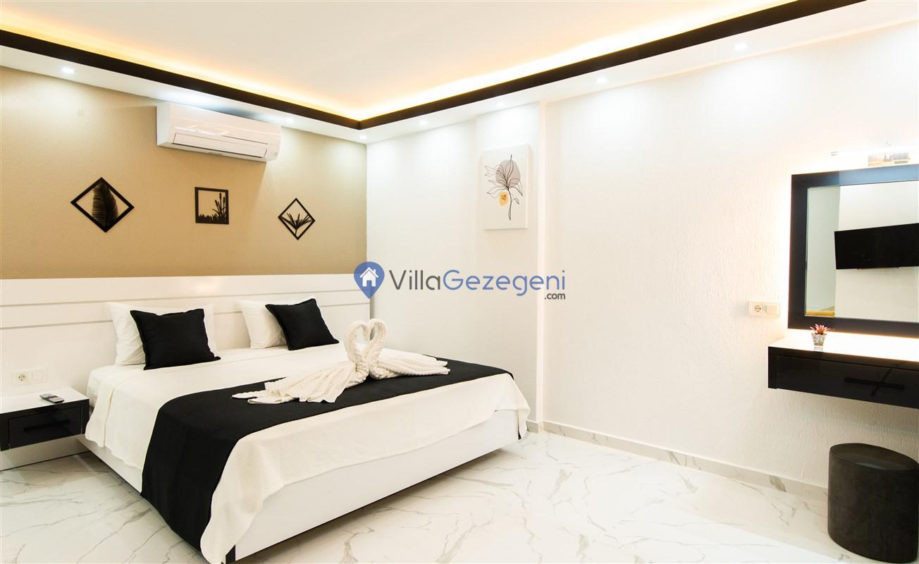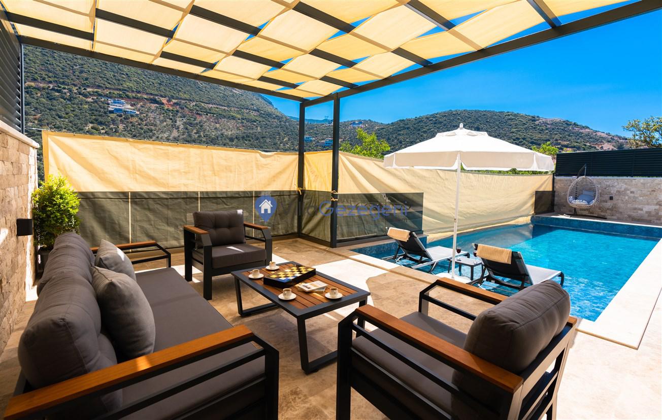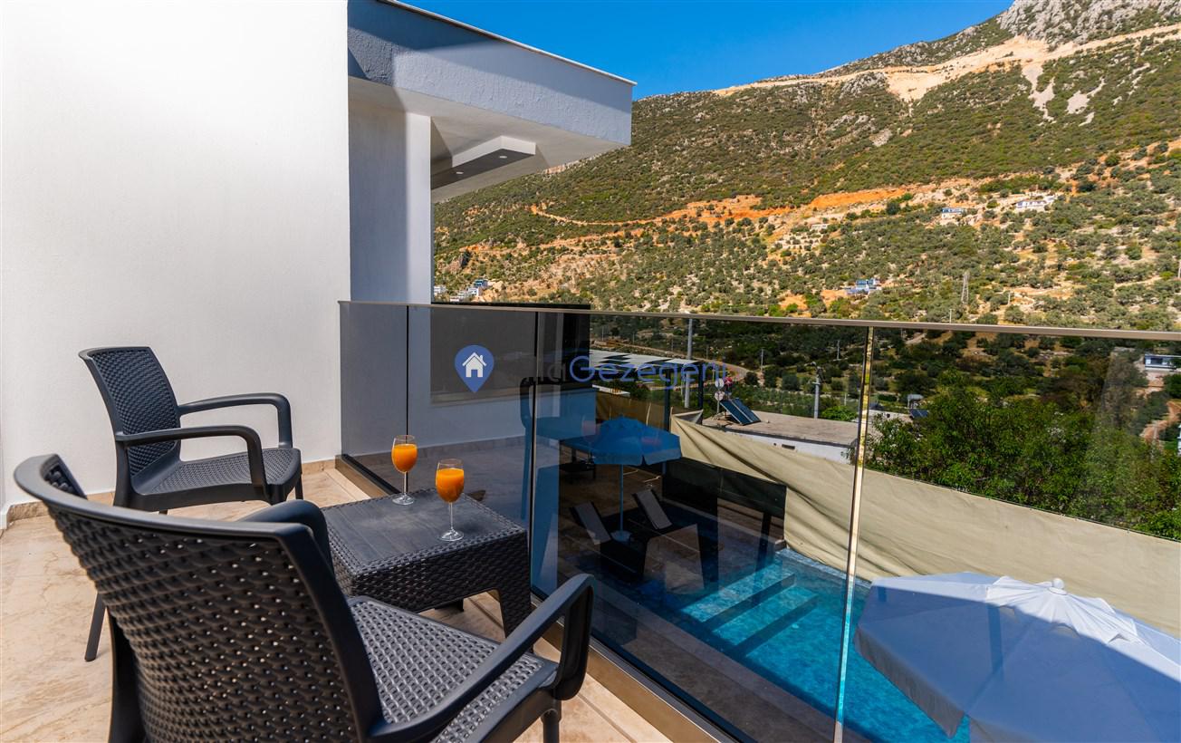 Kaş/Kalkan/Kördere Bölgesinde yer alan tek yatak odalı 2 kişi kapasiteli deniz manzaralı balayı villası.