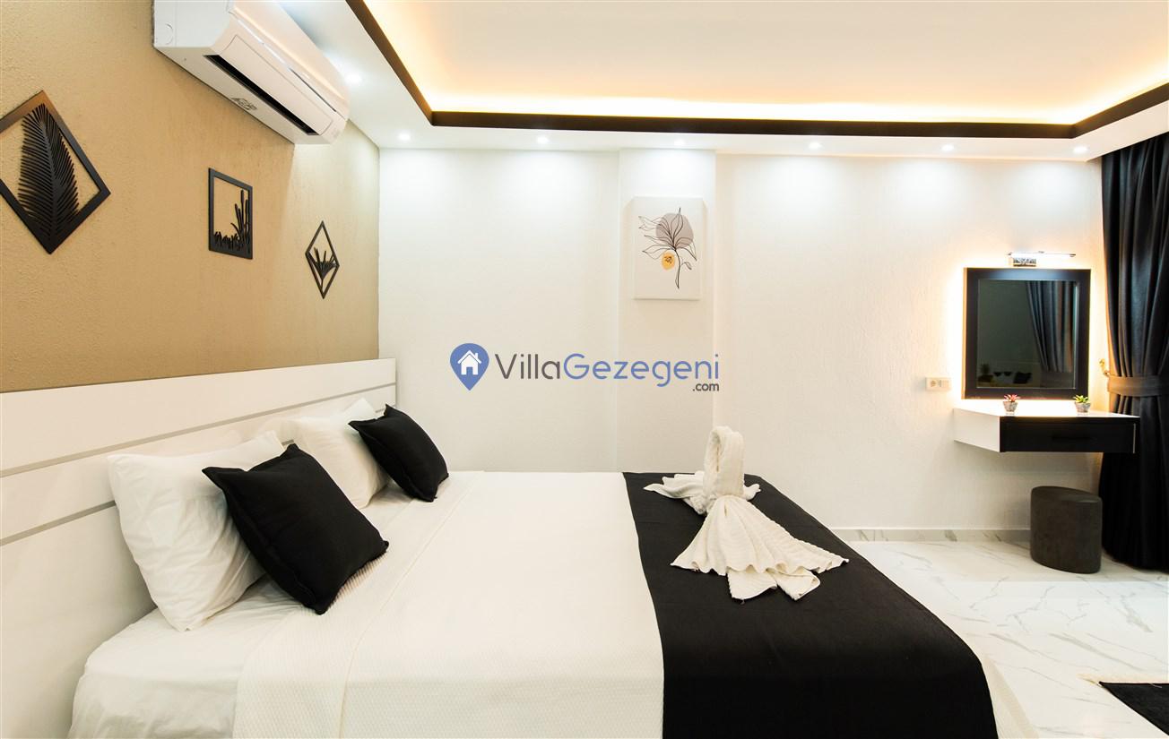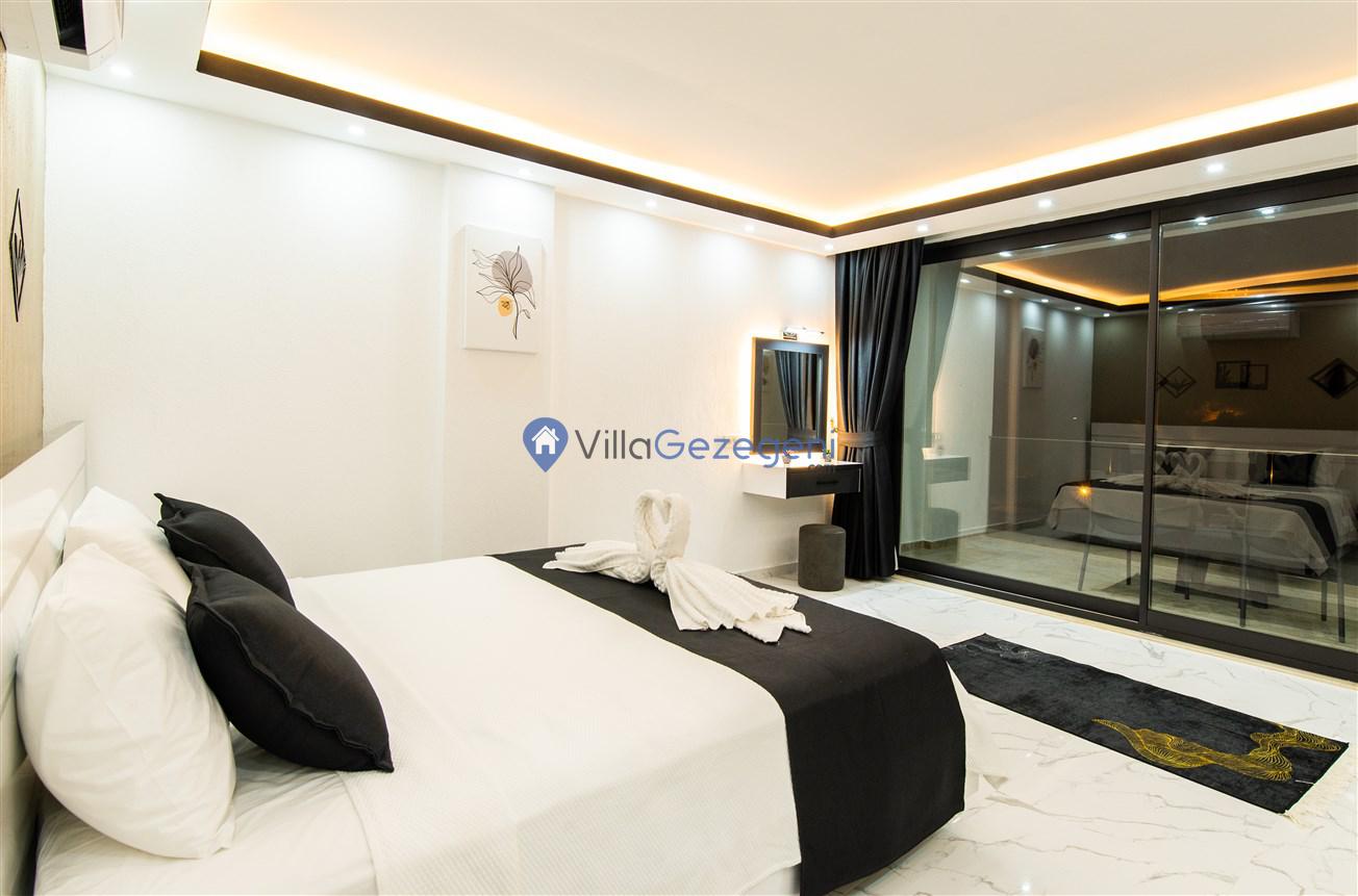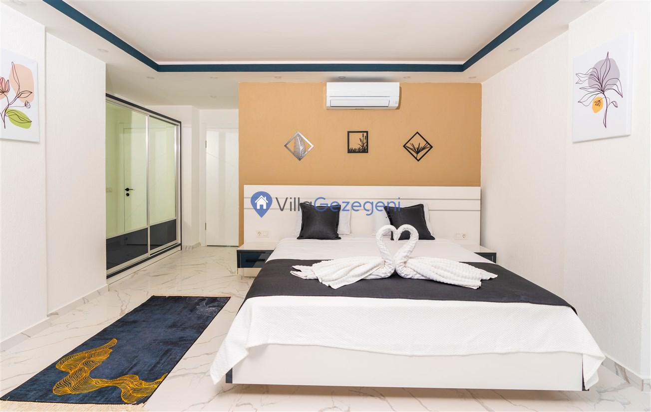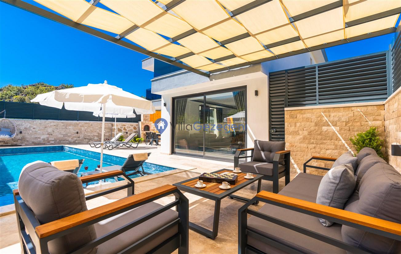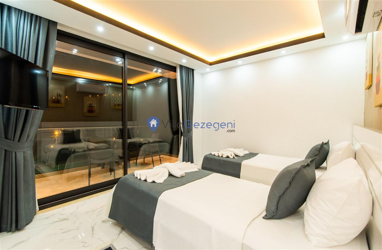 Kaş/Kalkan/Kördere Bölgesinde yer alan tek yatak odalı 2 kişi kapasiteli deniz manzaralı balayı villası.