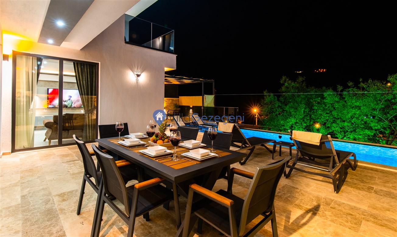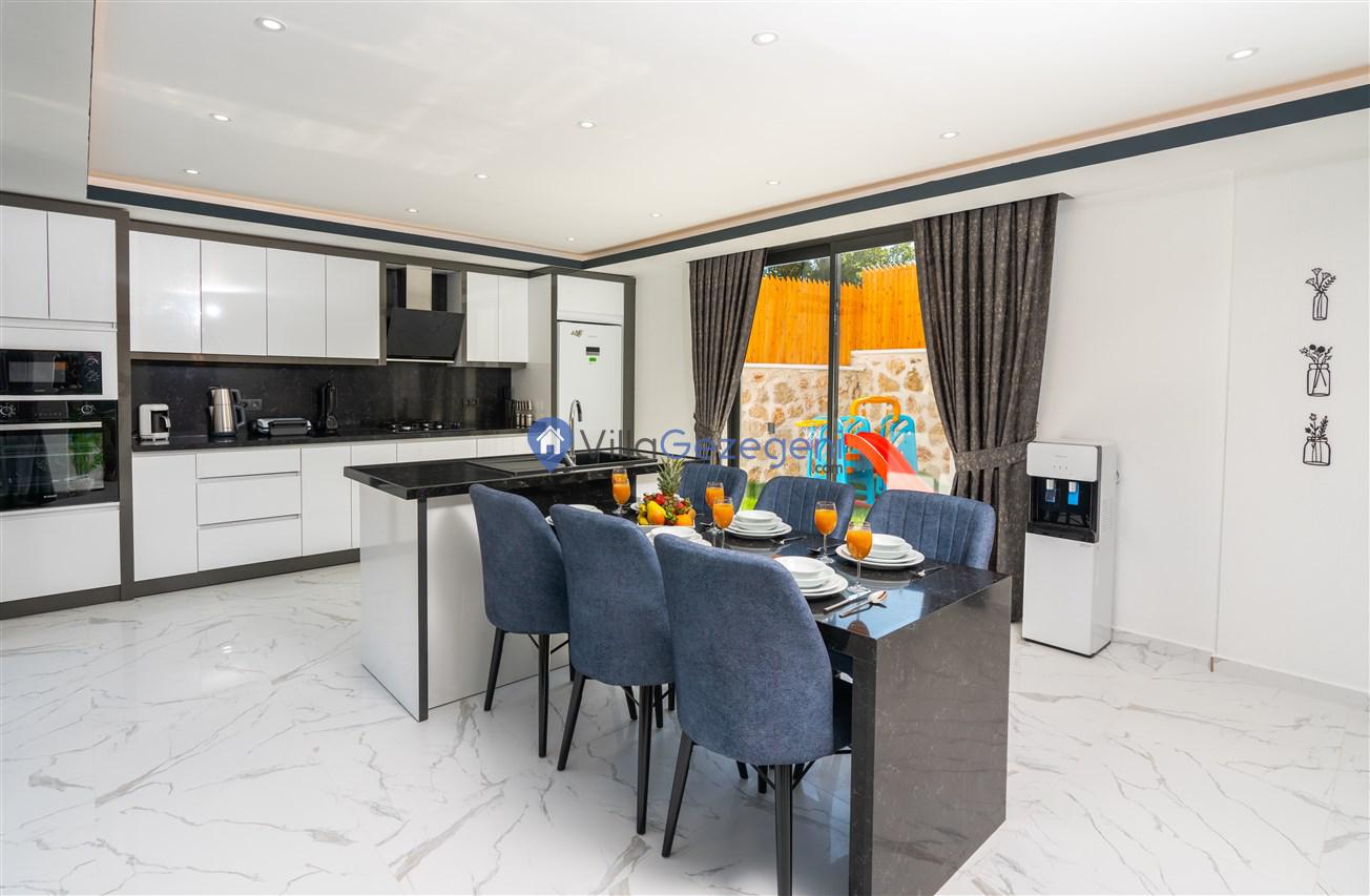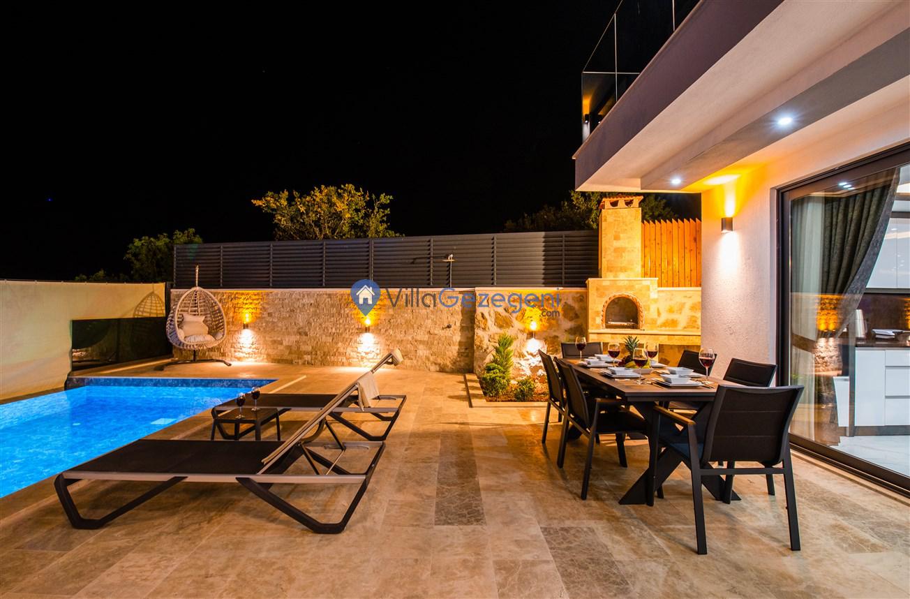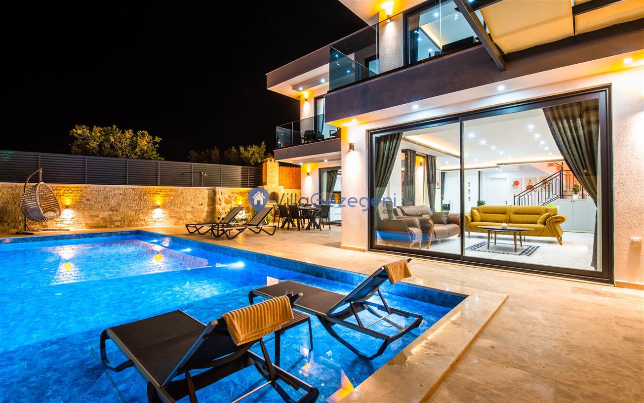 Villamızın genel konsept ve özelliklerinden tekrar bahsedecek olursak; villamızın 1 adet müstakil özel havuzu bulunmaktadır. Geniş bir bahçeye sahip olan villamız rahatlığı ön planda tutan 3 adet yatak odası, 4 yatak, 3 banyo, hareket alanı geniş bir mutfak ve 6 kişinin geniş aralıklarla rahatlıkla oturabileceği koltuklara sahip salonu bulunmaktadır.