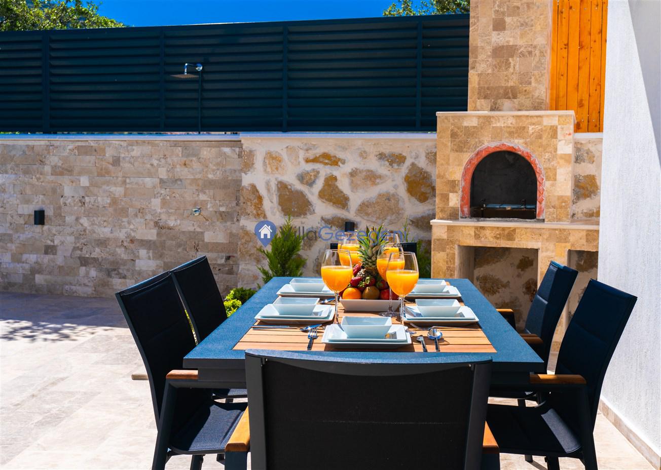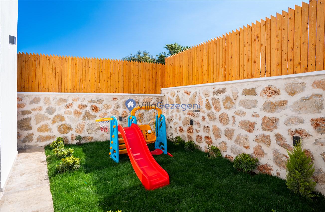 Yemek Masası ve bahçe mobilyaları kullanımınız için hazır bulunmaktadır. Bahçemizde bulunan salıncak ile sevdikleriniz ile keyifli vakitler geçirebilirsiniz. Ayrıca, villanın çocuk parkı, minik misafirler için eğlenceli ve güvende vakit geçirebilecekleri bir alan sunmaktadır.