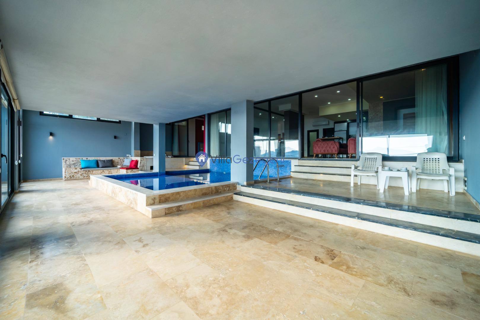 Kalkan Kördere mevkiisinde merkeze yakın konumlanmış olan 4 yatak odalı 8 kişilik korunaklı havuzlu villa
