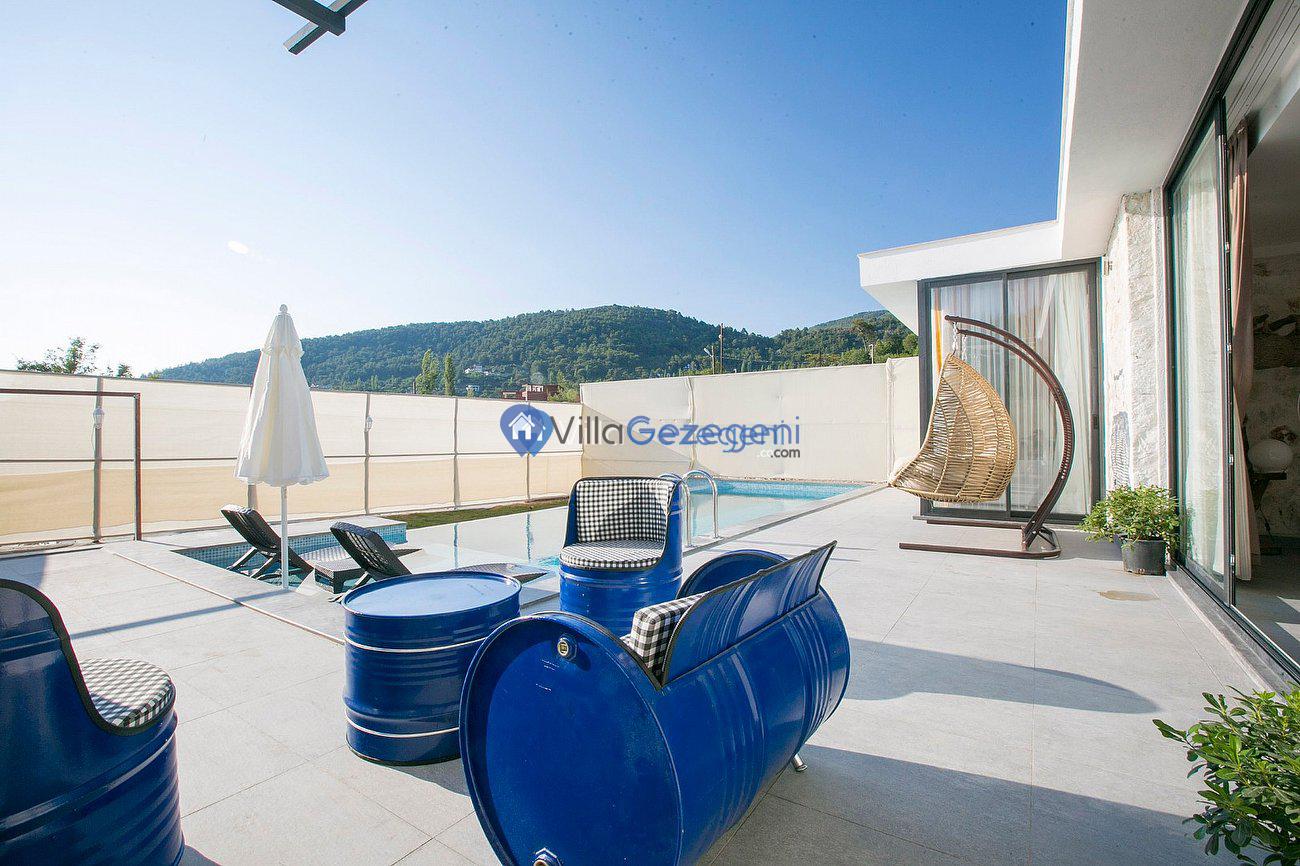 Villamızın genel konsept ve özelliklerinden tekrar bahsedecek olursak; villamızın 1 adet müstakil özel havuzu bulunmaktadır. Ortalama bir bahçeye sahip olan villamız rahatlığı ön planda tutan 2 adet yatak odası, 3 yatak, 2 banyo, hareket alanı geniş bir mutfak ve 4 kişinin geniş aralıklarla rahatlıkla oturabileceği koltuklara sahip salonu bulunmaktadır.