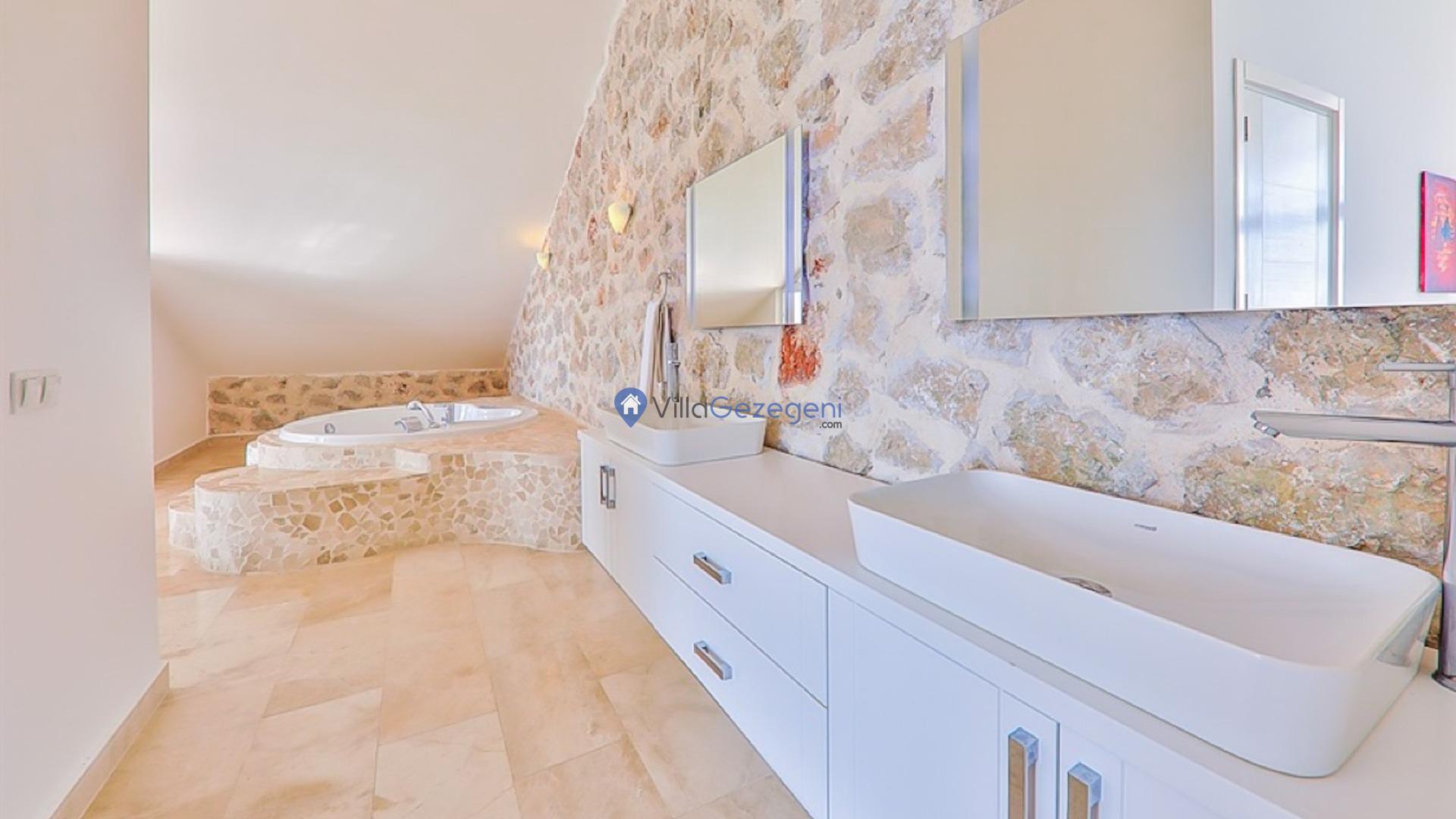 Taş mimarisi ve zarif, lüks iç tasarımıyla dikkat çeken Villa Hira 1, iki katlı bir yapıya sahiptir. Üst kattaki ebeveyn odasında özel bir jakuzi bulunmakta, böylece tatilinize ekstra bir konfor ve romantizm katmaktadır. Çocuklu aileler için de düşünülmüş olan villada, küçük misafirler için çocuk havuzu ve oyun alanı yer almaktadır, böylece çocuklar güvenle ve keyifle zaman geçirebilir.