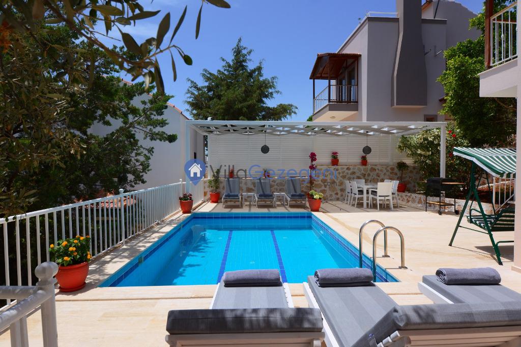 Villamızın genel konsept ve özelliklerinden tekrar bahsedecek olursak; villamızın 1 adet müstakil özel havuzu bulunmaktadır. Ortalama bir bahçeye sahip olan villamız rahatlığı ön planda tutan 2 adet yatak odası,3 yatak,2 banyo, hareket alanı geniş bir mutfak ve 4 kişinin geniş aralıklarla rahatlıkla oturabileceği koltuklara sahip salonu bulunmaktadır.