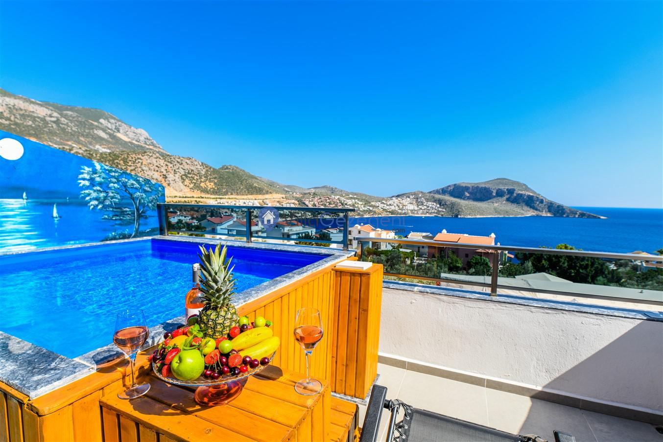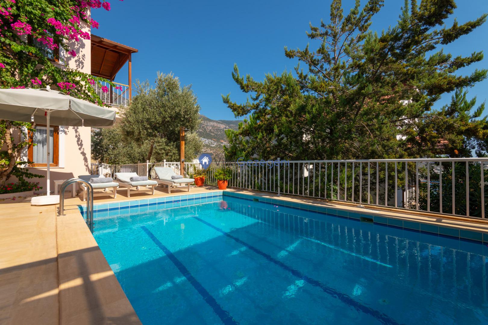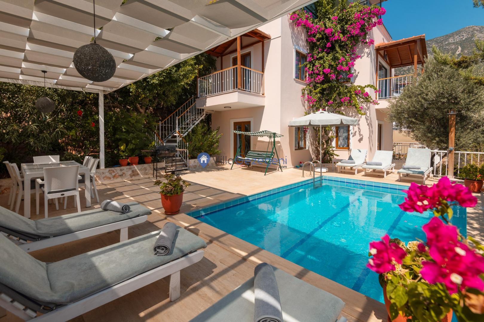 Villa Otantik, Kalkan Ortaalan'da 11 kişilik, deniz manzaralı, doğa içerisinde, merkeze yakın konumda, kalabalık gruplar için uygun kiralık villa.