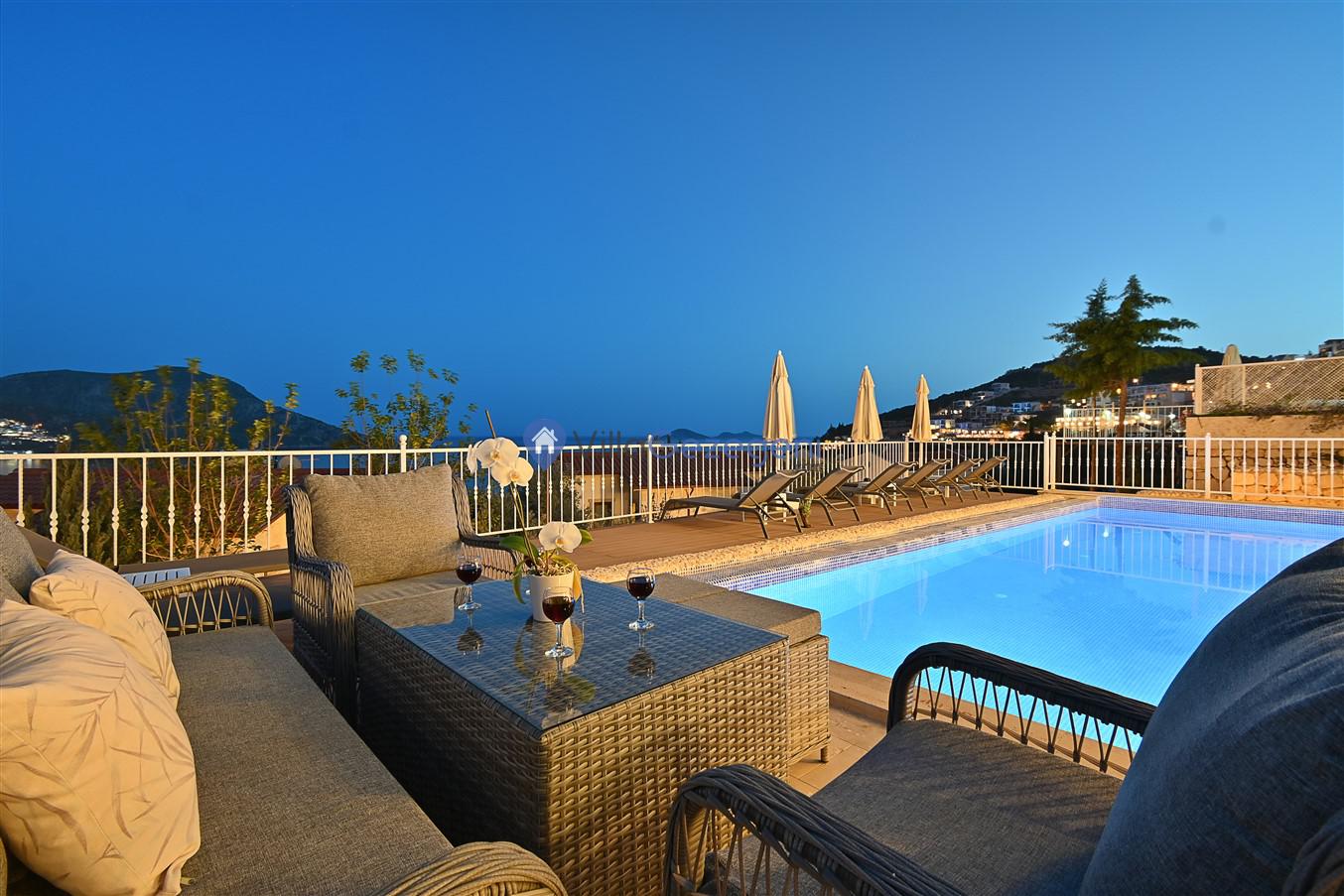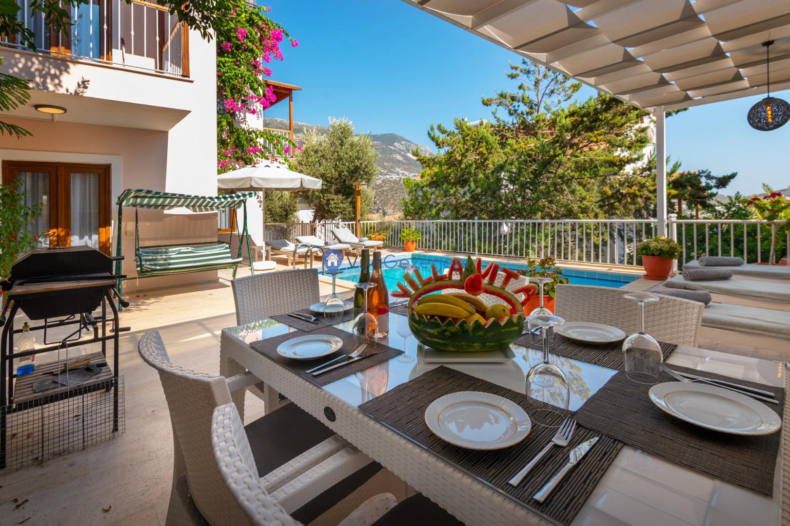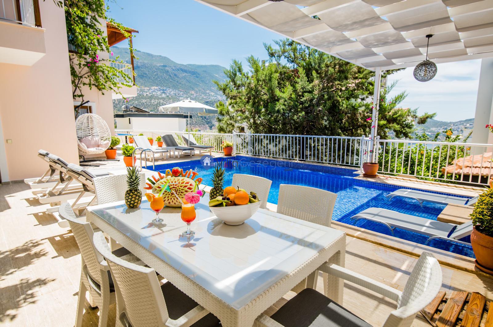 Villa Otantik, Kalkan Ortaalan'da 11 kişilik, deniz manzaralı, doğa içerisinde, merkeze yakın konumda, kalabalık gruplar için uygun kiralık villa.
