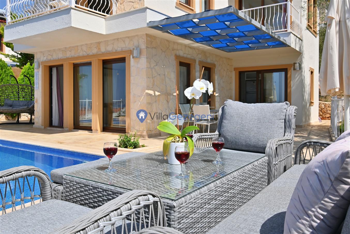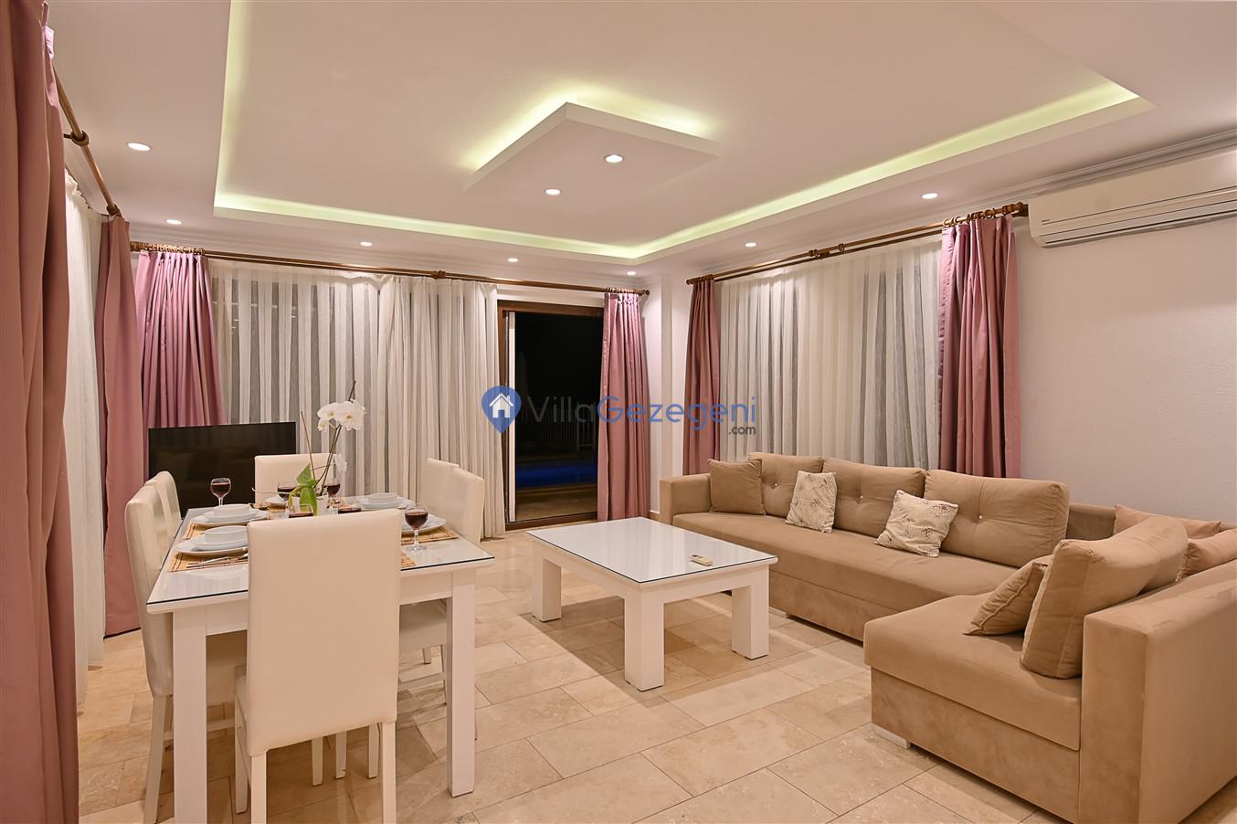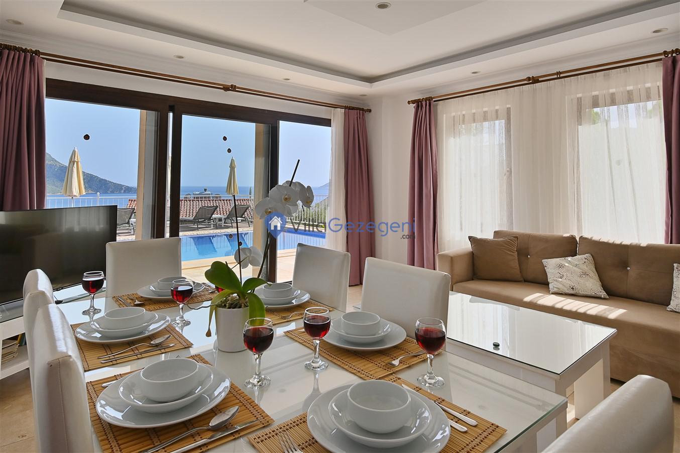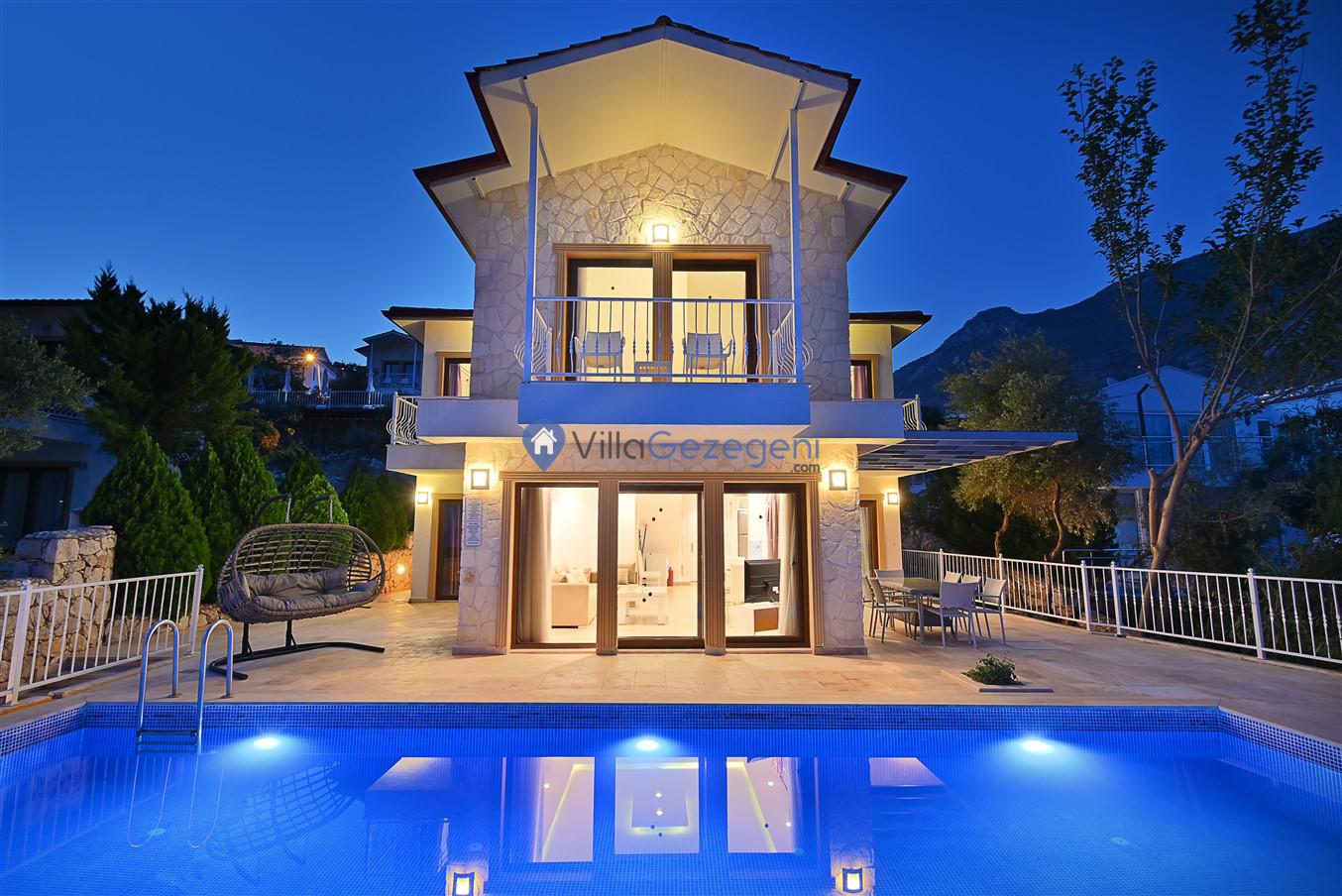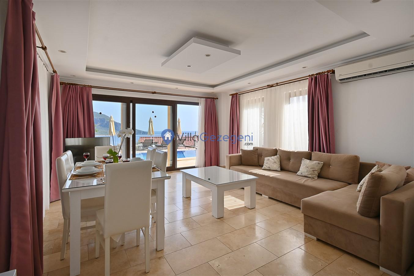 Antalya/Kaş/Kalkan/Ortaalan bölgesinde yer alan 3 yatak odalı 5 kişi kapasiteli tatil villasıdır.