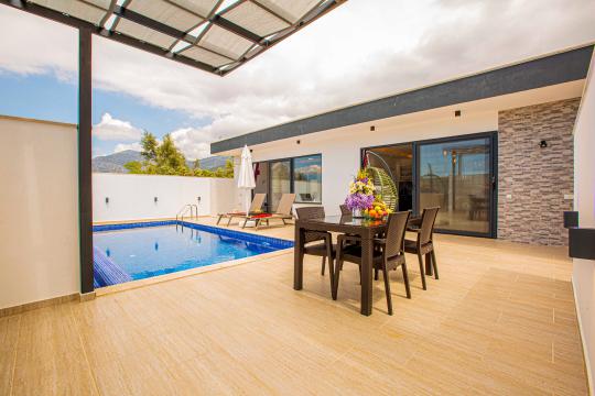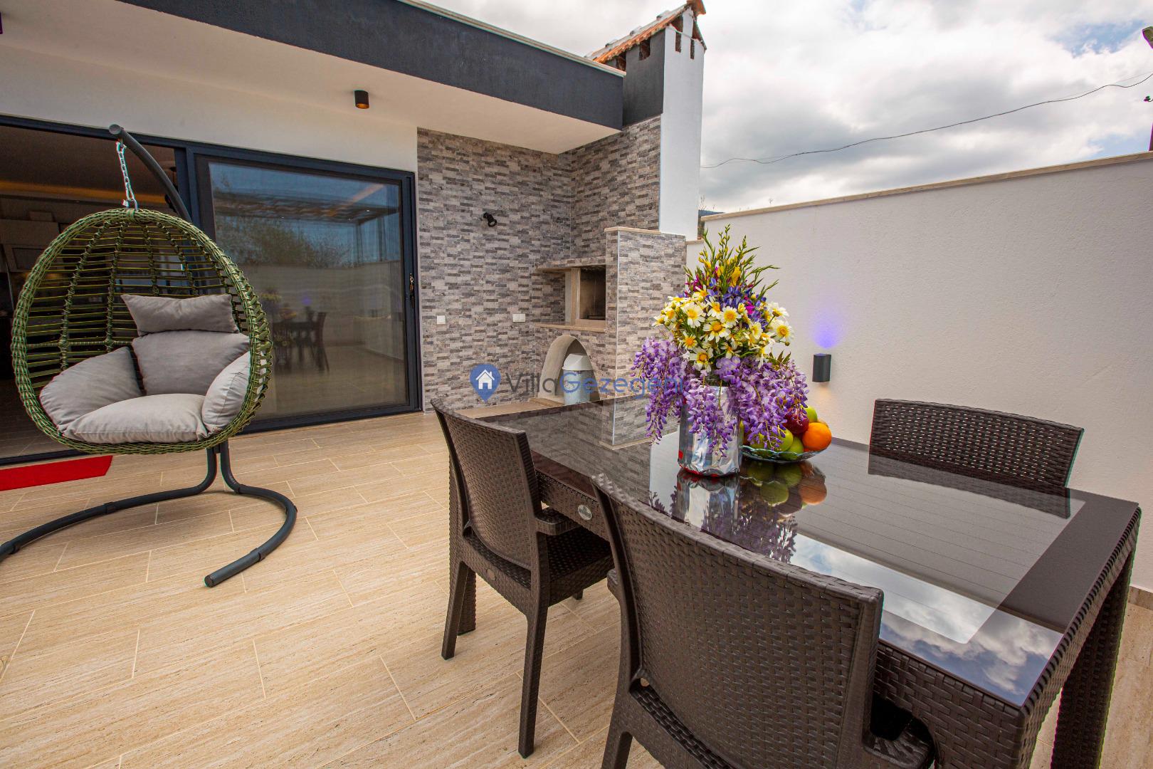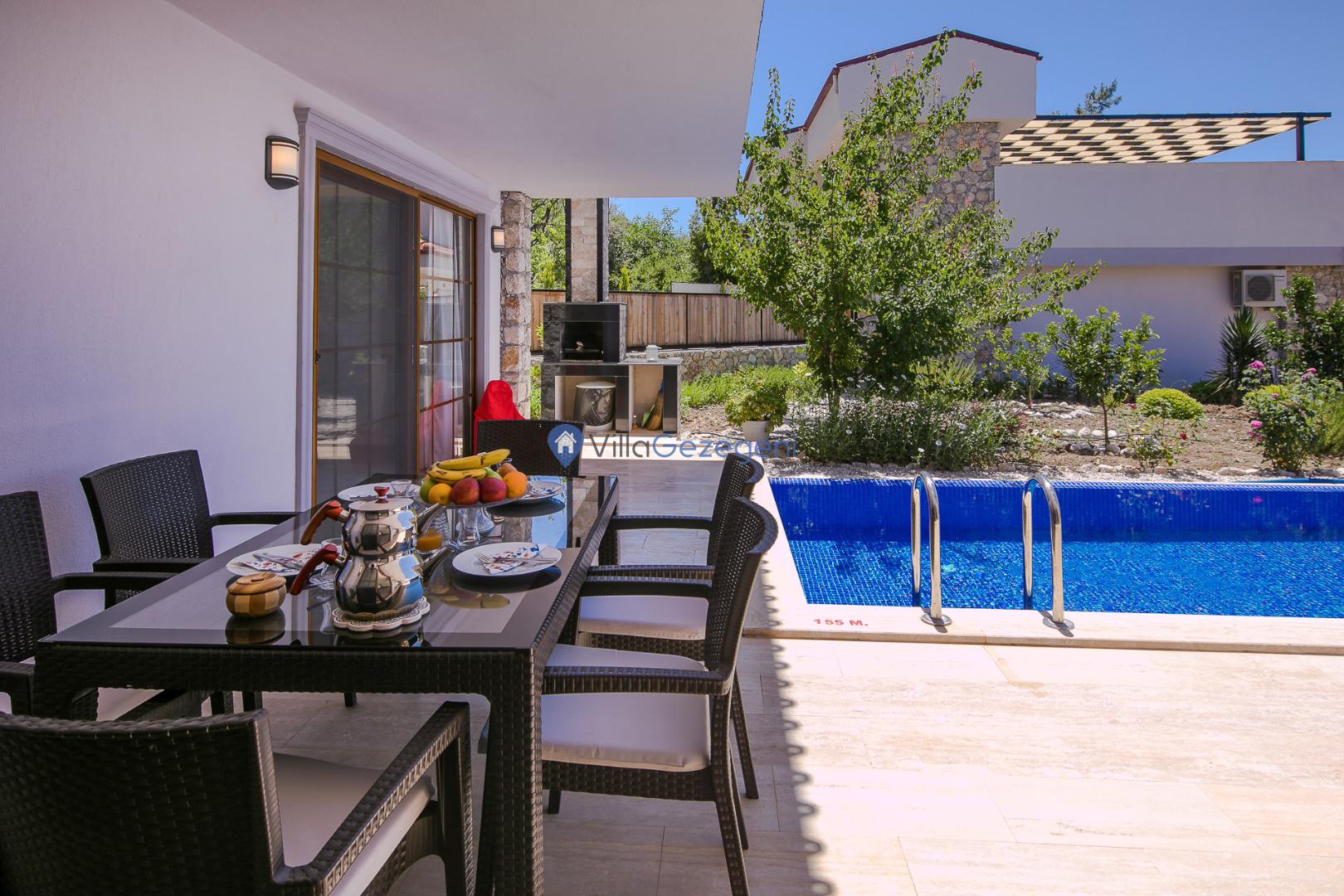 Yemek masası ve rahat bahçe mobilyaları, villamızın bahçesinde sizin için hazırlandı. Bu eşsiz ortamda sevdiklerinizle unutulmaz anlar yaşama fırsatını yakalayabilirsiniz.