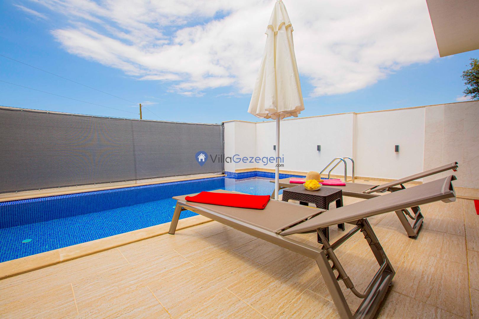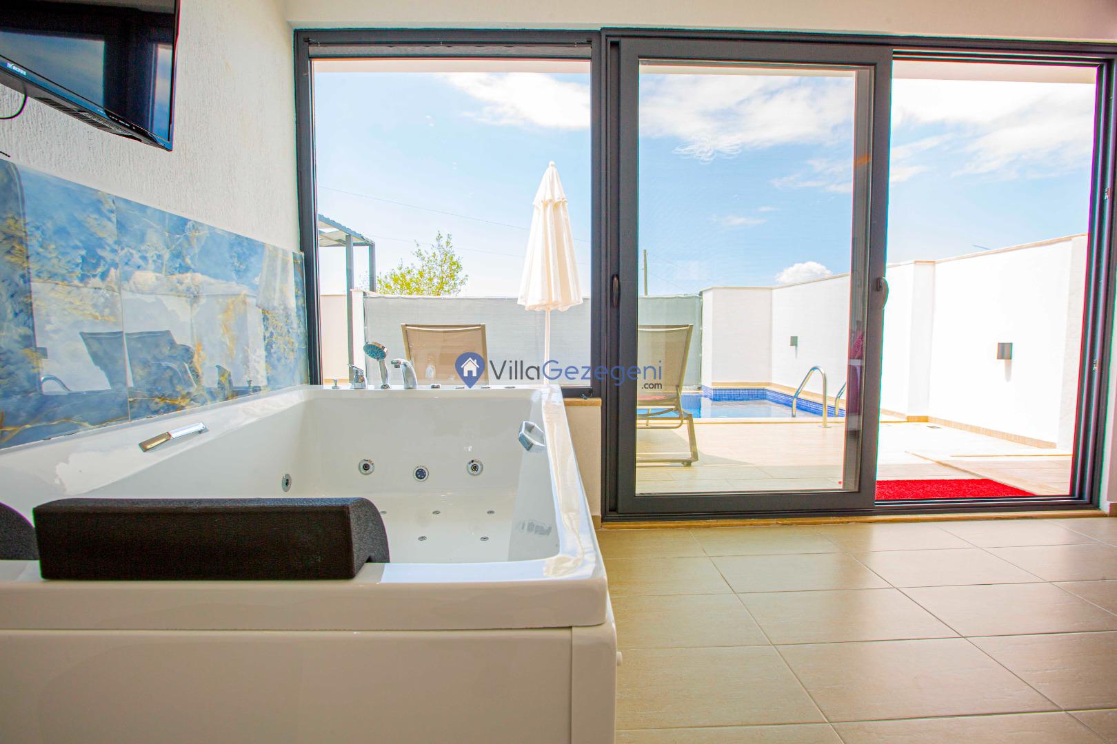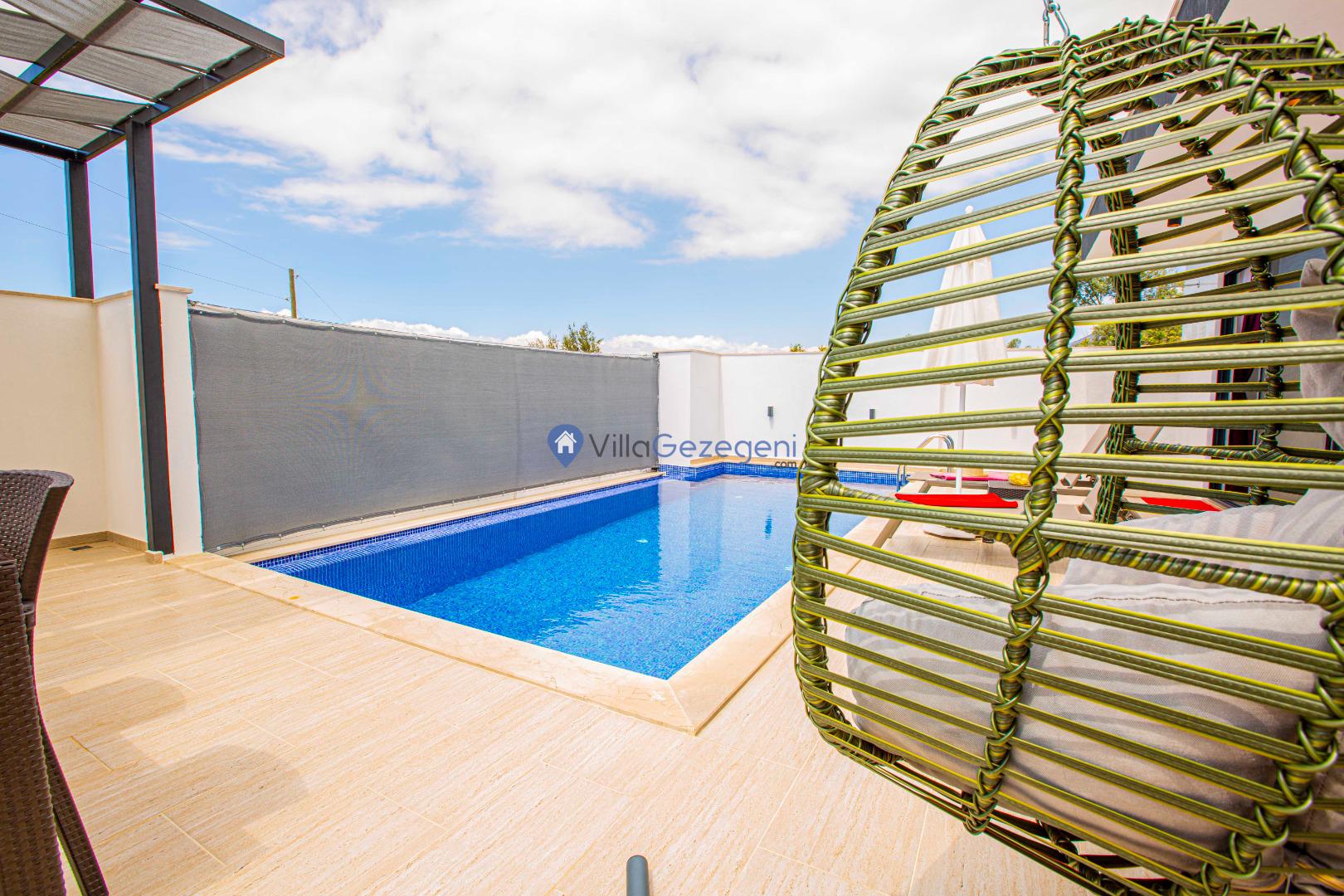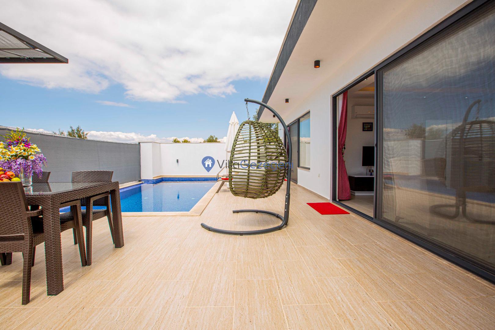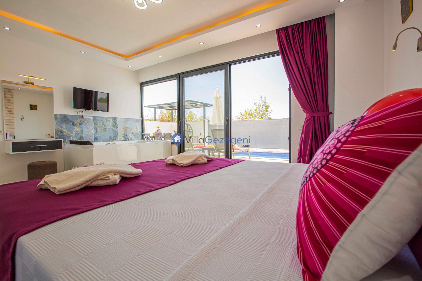Villa Nil Exclusive; 2 yatak odalı, lüks, deniz manzaralı, havuzu korunaklı, jakuzili, doğa içerisinde muhafazakar kiralık aile ve balayı villası.