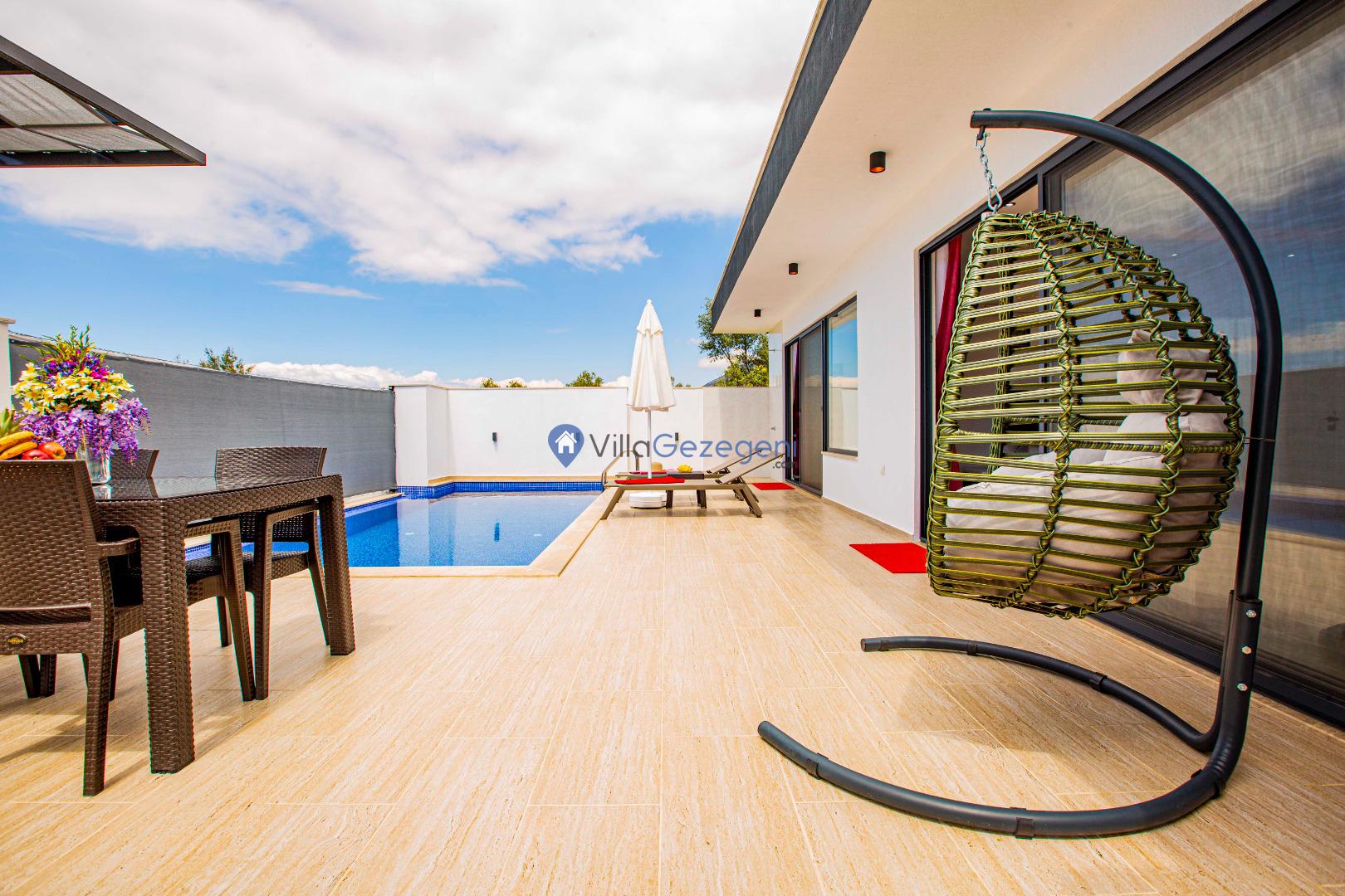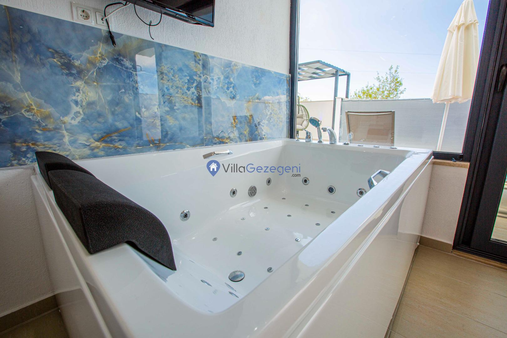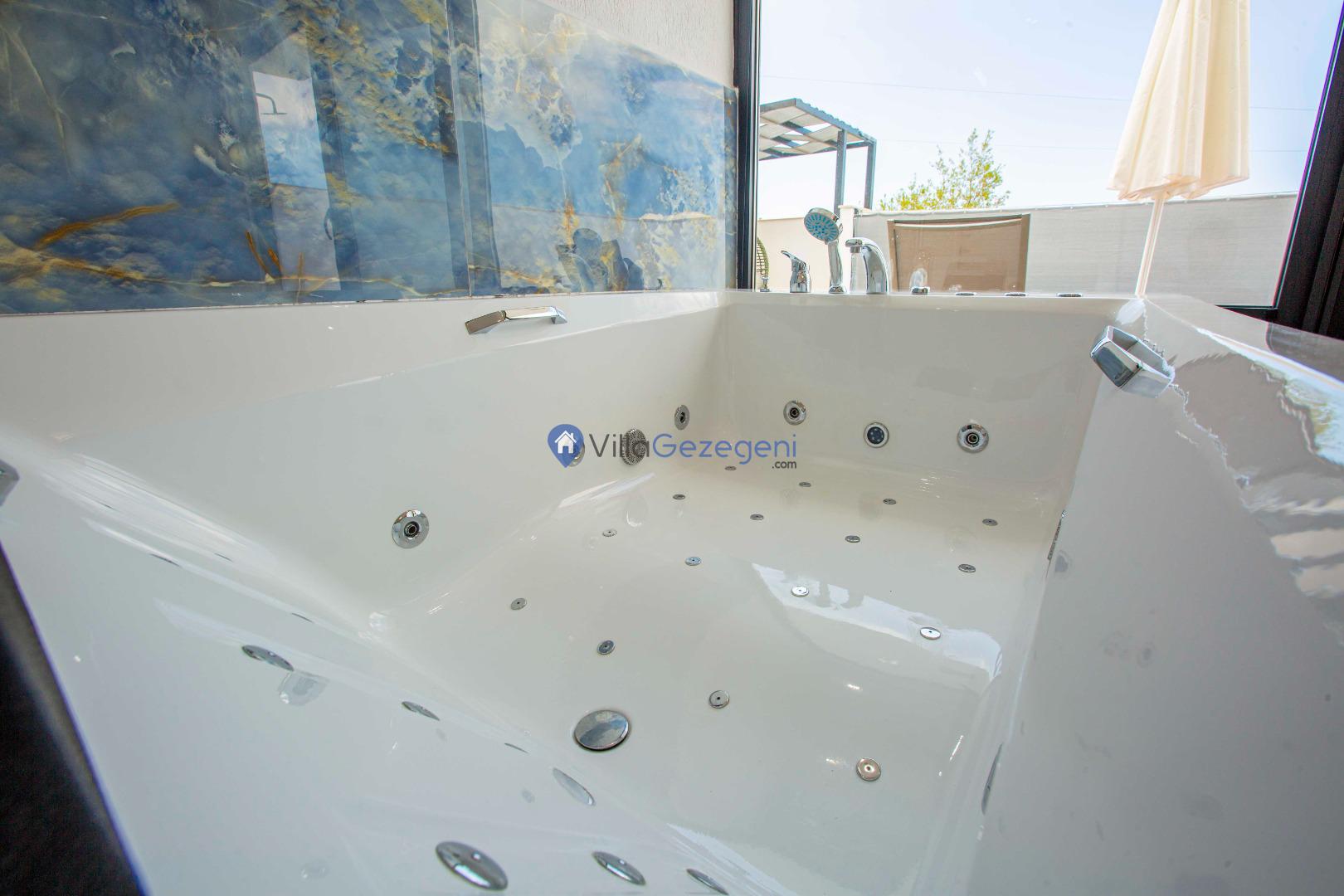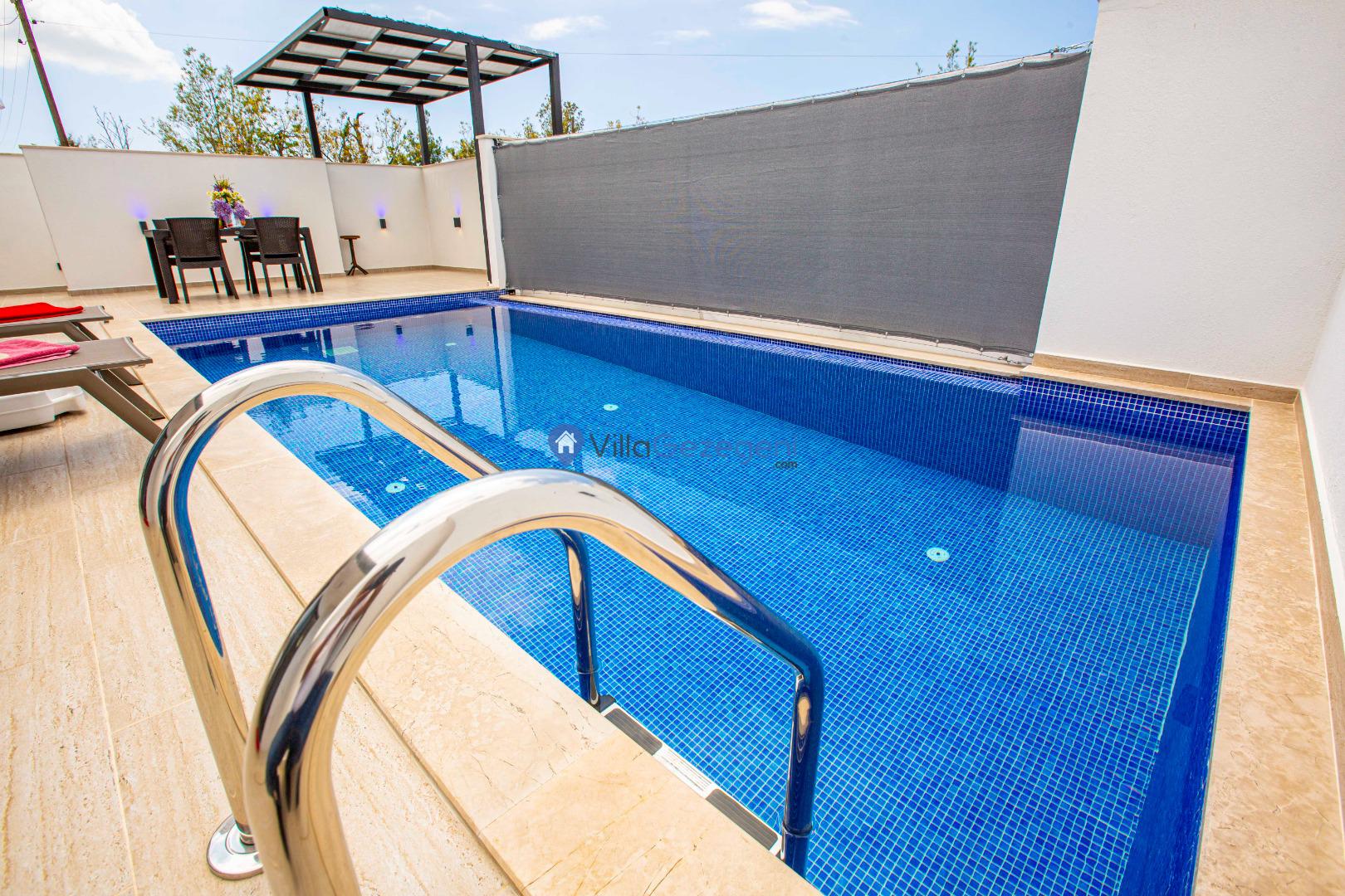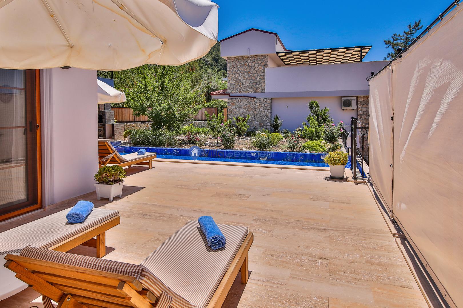 Villa Nil Exclusive; 2 yatak odalı, lüks, deniz manzaralı, havuzu korunaklı, jakuzili, doğa içerisinde muhafazakar kiralık aile ve balayı villası.