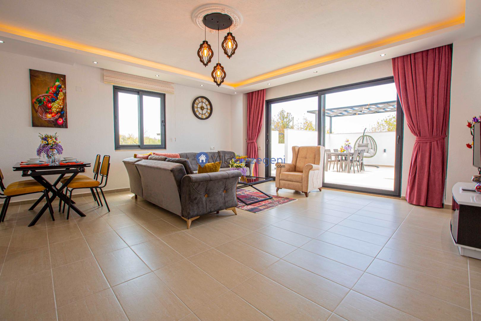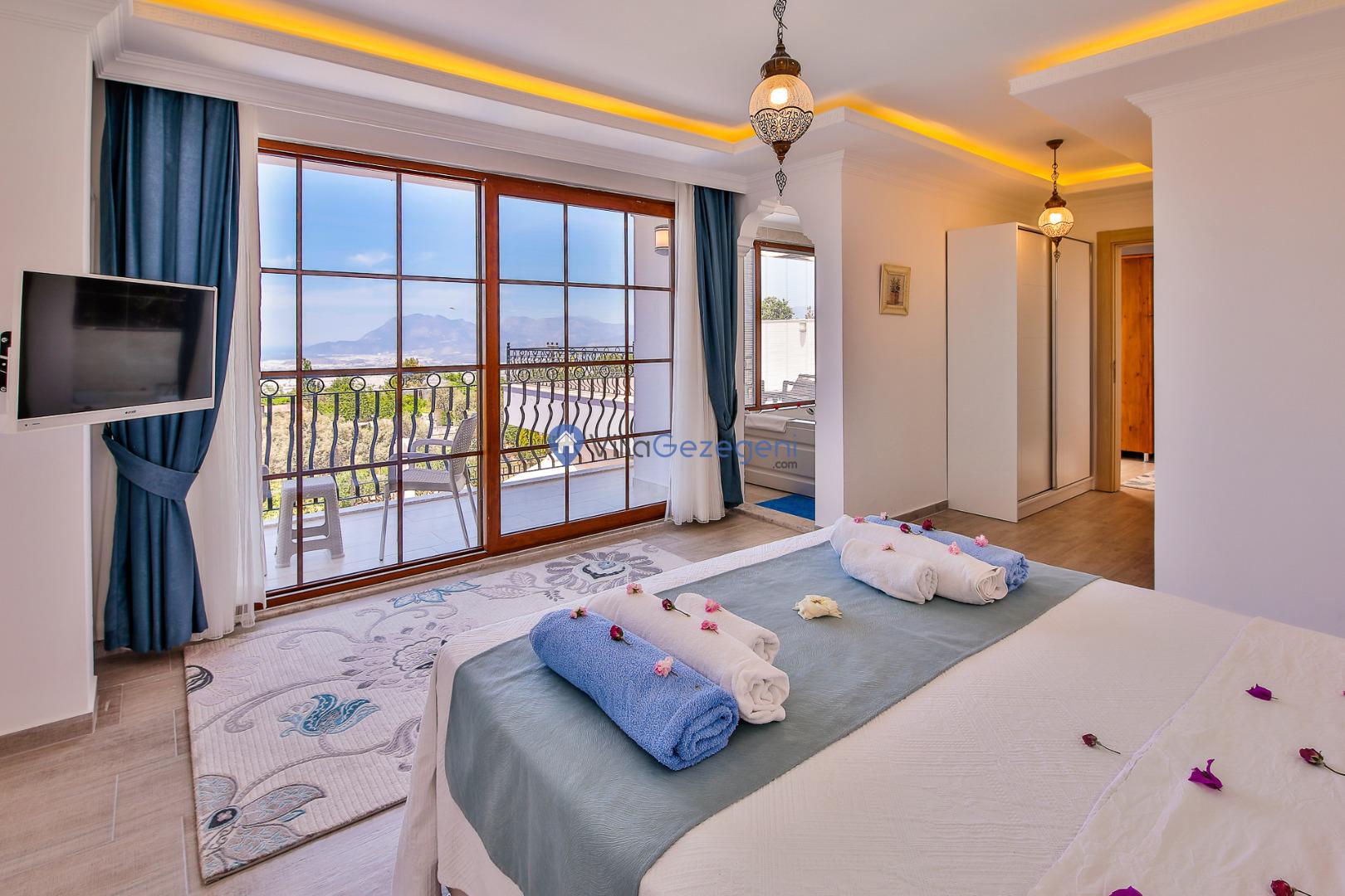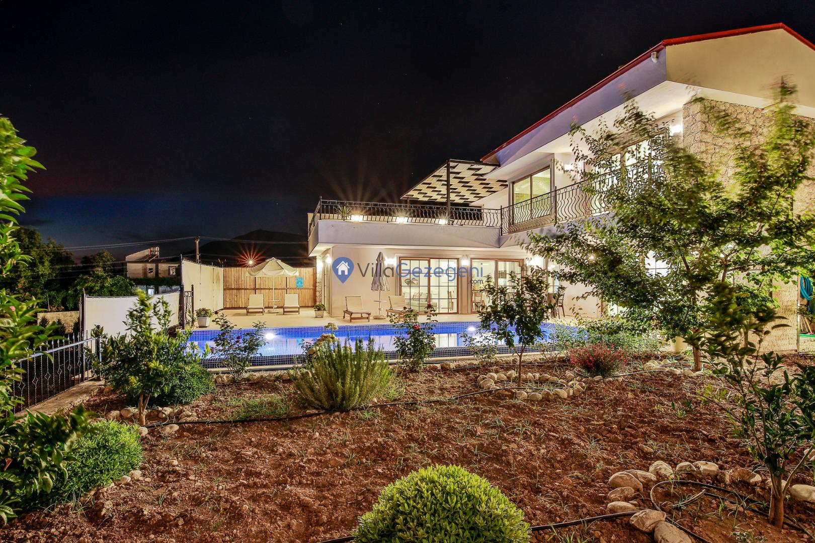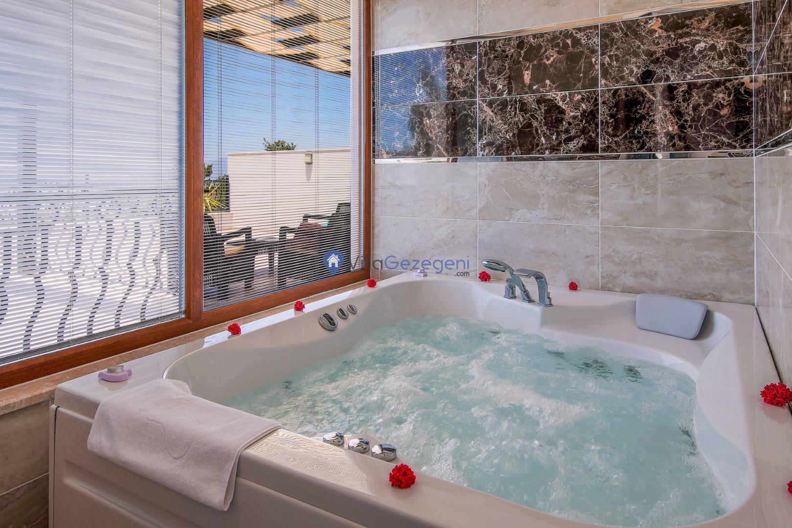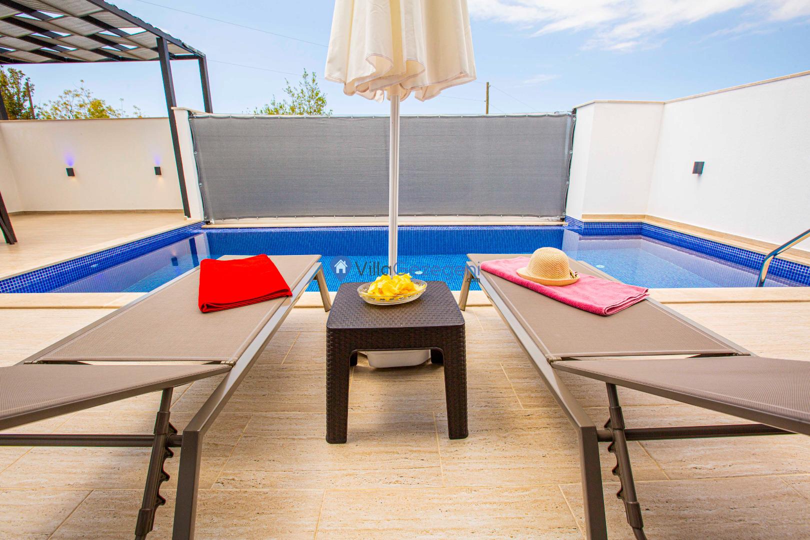 Villa Nil Exclusive; 2 yatak odalı, lüks, deniz manzaralı, havuzu korunaklı, jakuzili, doğa içerisinde muhafazakar kiralık aile ve balayı villası.