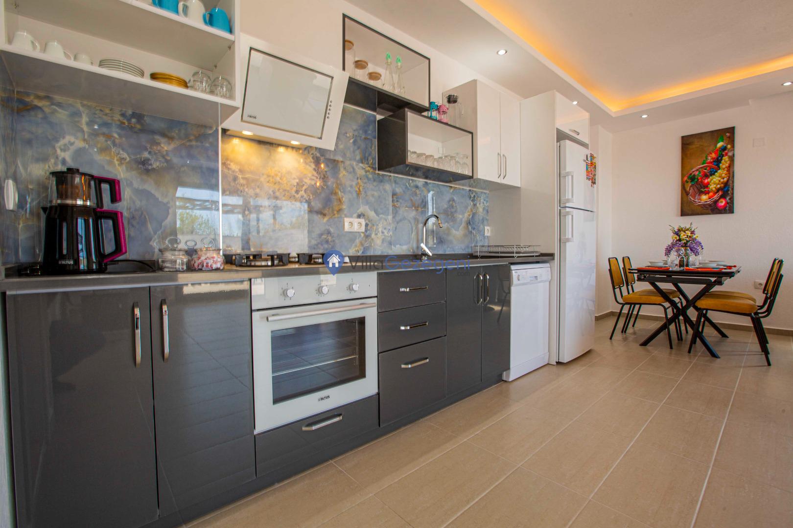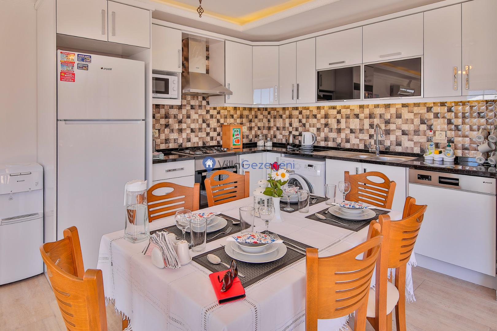 Villamız günlük hayatta sık kullanılan; Mikrodalga fırın, ankastre fırın, buzdolabı, çamaşır makinası, bulaşık makinesi, elektrikli su ısıtıcı kettle, ankastre 4’lü ocak,2 kişilik yemek takımı, kaşık ve çatal takımı, tencere ve tava takımı, bardaklar yer almaktadır. İhtiyacınız durumunda villamızda bulunmayan malzemeler hakkında bizle iletişime geçebilir ve yardım isteyebilirsiniz.