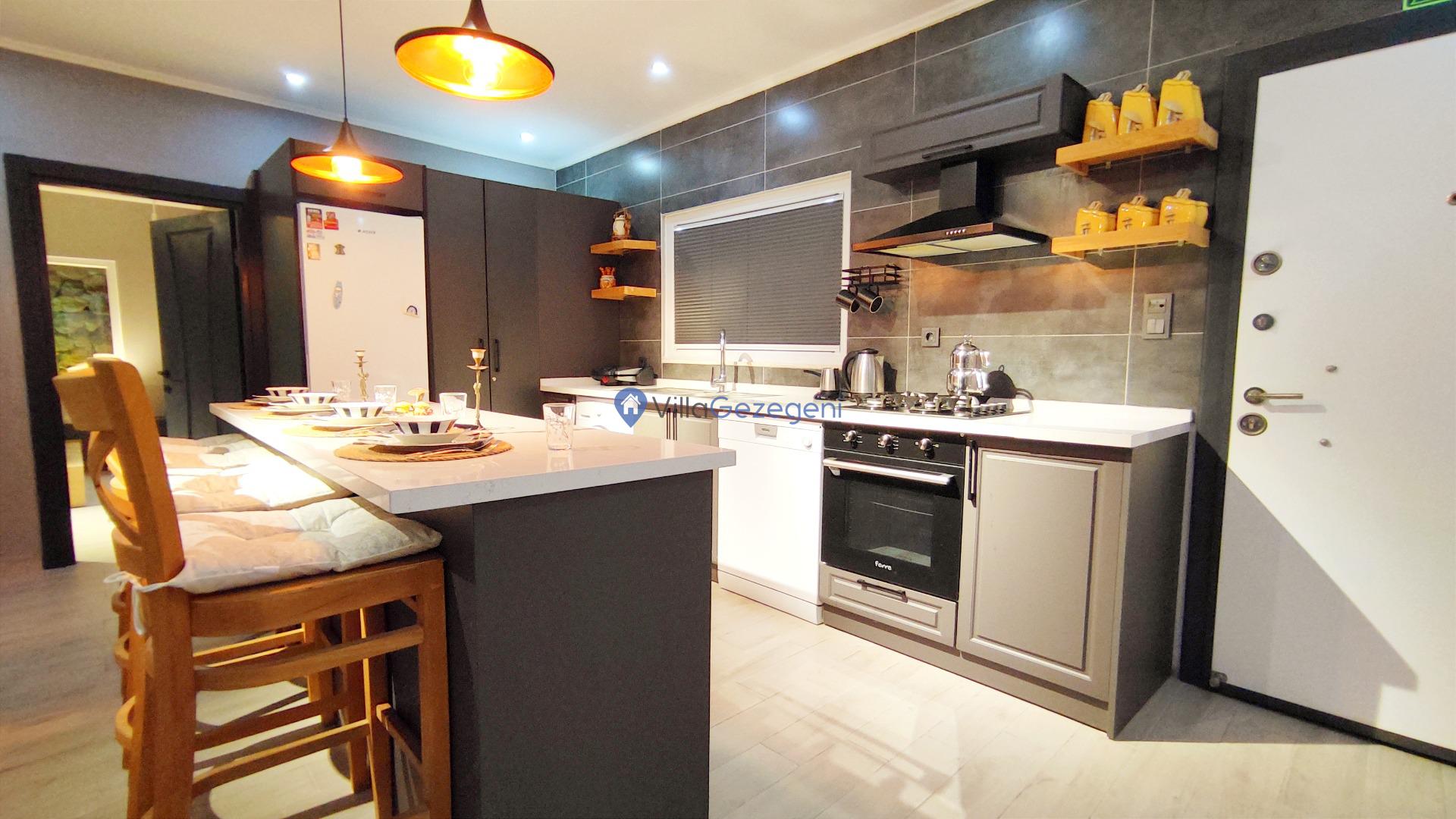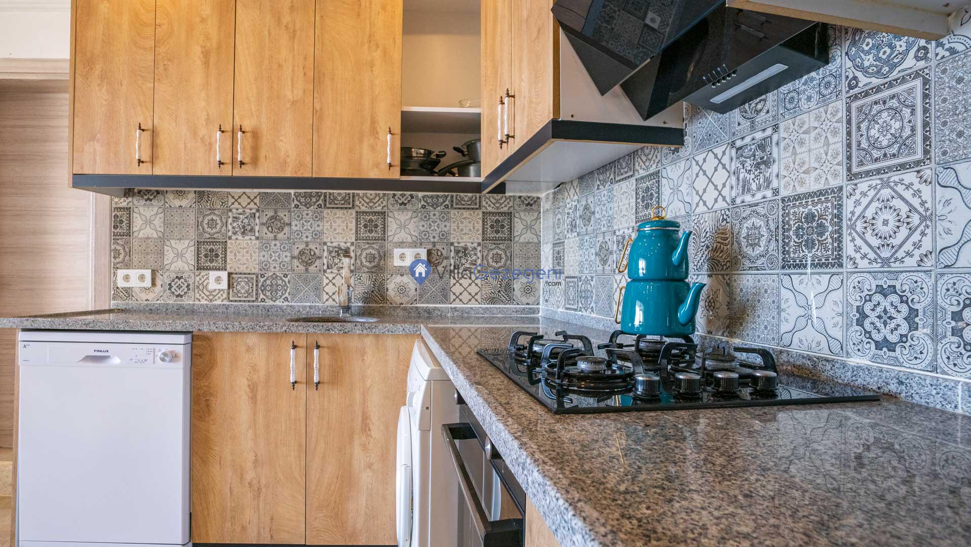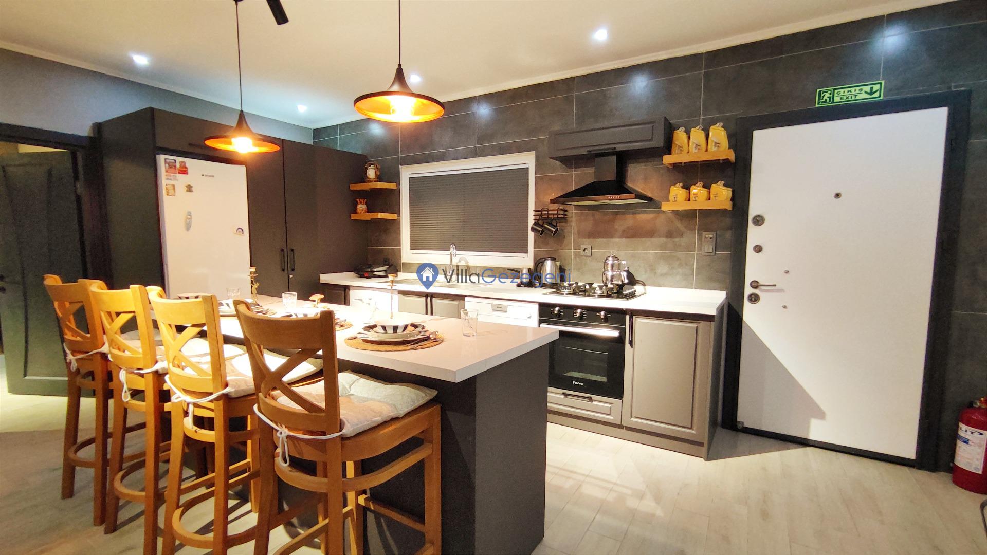 Villamız günlük hayatta sık kullanılan; Mikrodalga fırın, ankastre fırın, buzdolabı, çamaşır makinası, bulaşık makinesi, elektrikli su ısıtıcı kettle, ankastre 4’lü ocak, 10 kişilik yemek takımı, kaşık ve çatal takımı, tencere ve tava takımı, bardaklar yer almaktadır. İhtiyacınız durumunda villamızda bulunmayan malzemeler hakkında bizle iletişime geçebilir ve yardım isteyebilirsiniz.