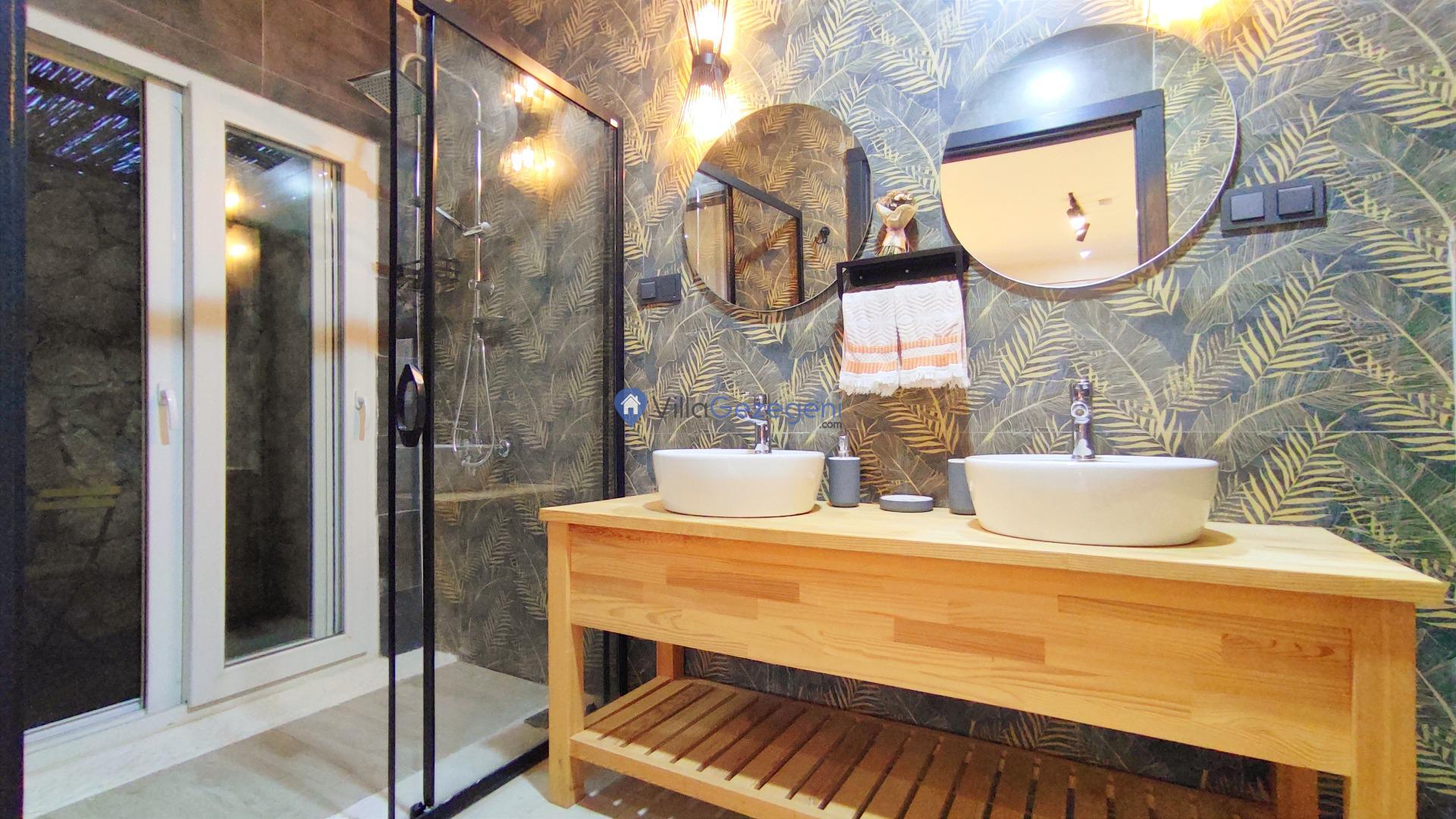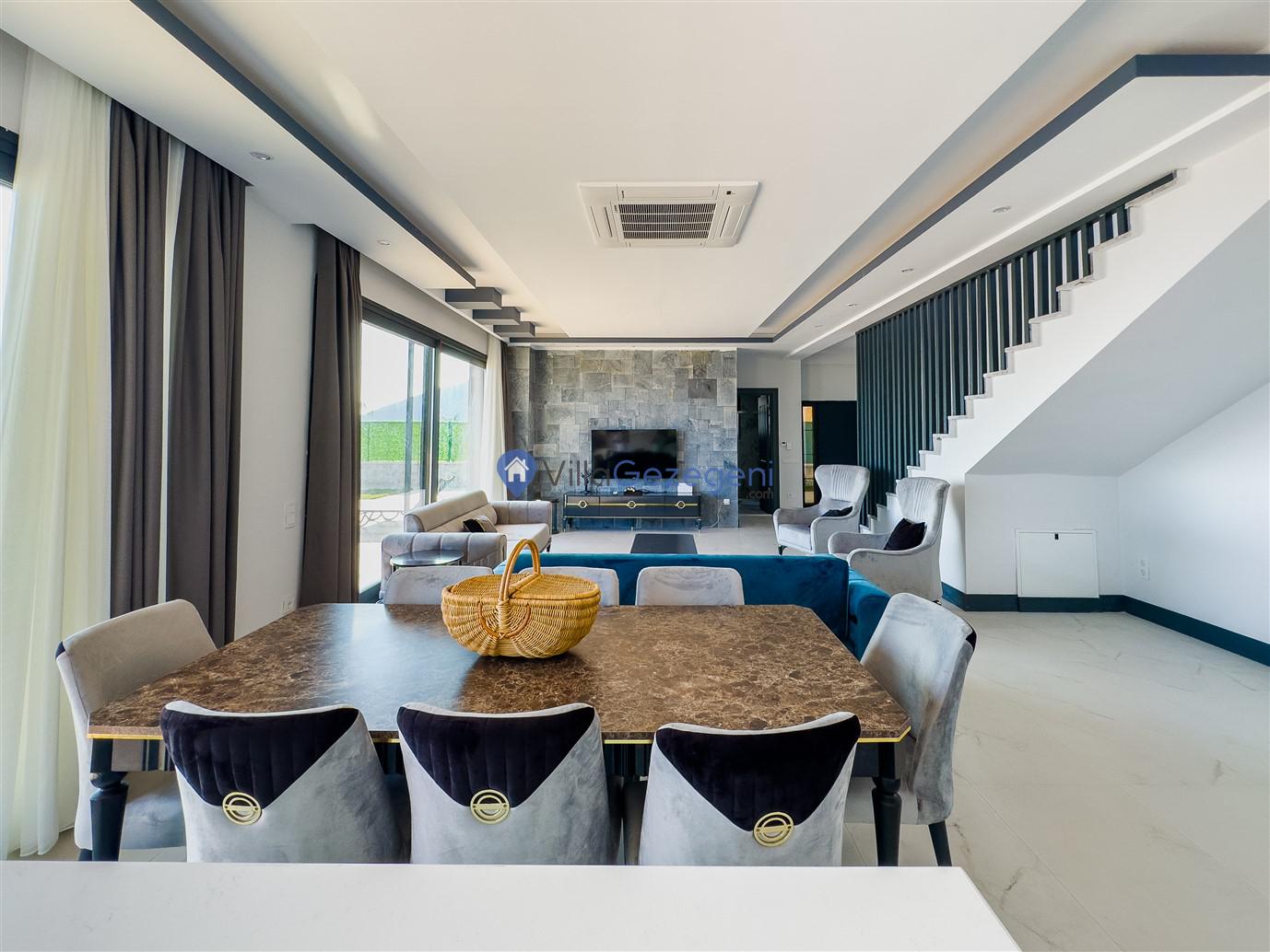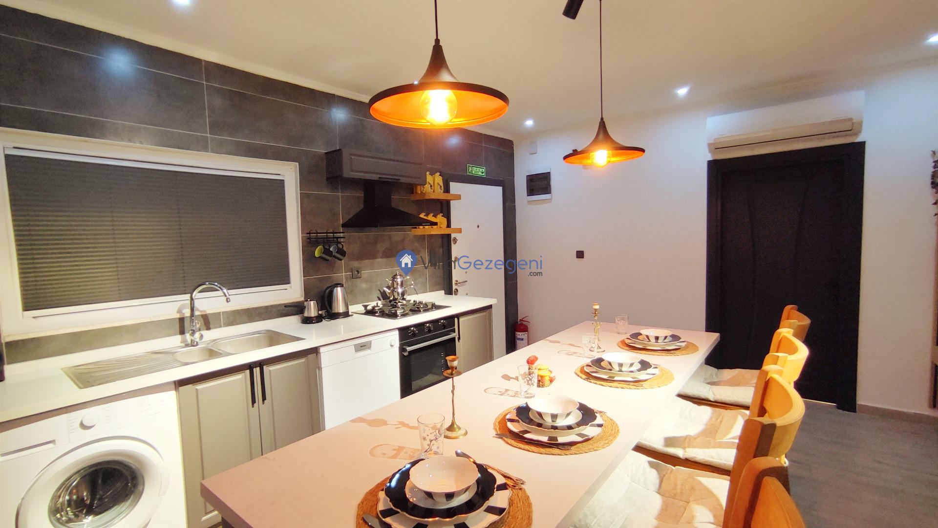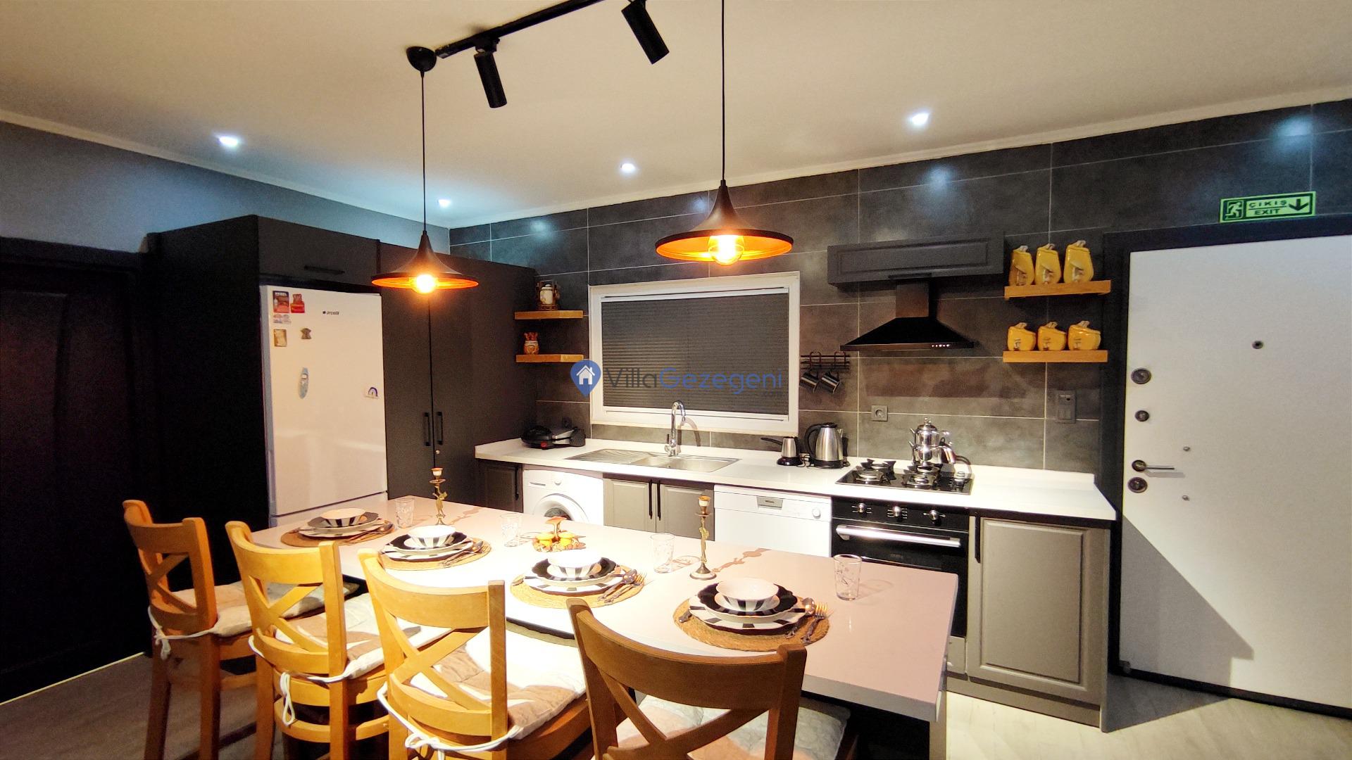 Yemek Masası ve bahçe mobilyaları kullanımınız için hazır bulunmaktadır. Gün batımına karşı unutulmaz bir tatilin kapılarını misafirlerine aralayan villamız modern örnekler arasında son dönemlerde geniş arkadaş grupları veya aileler tarafından her yaz dönemi yoğun olarak rağbet görmeye devam etmektedir.